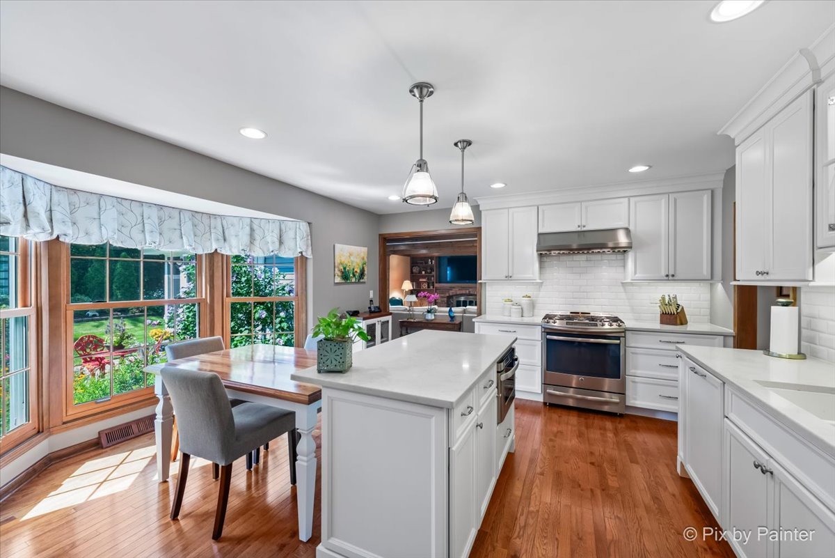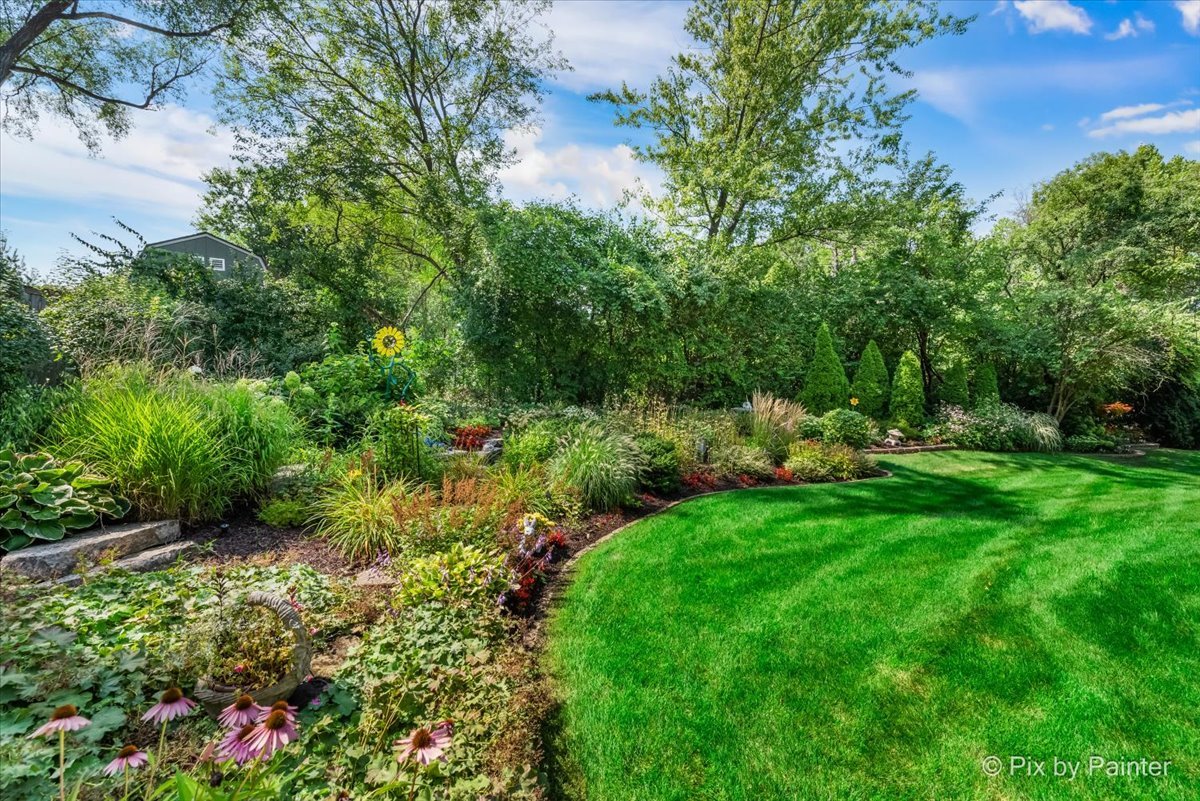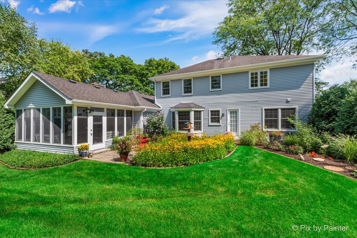 Welcome to 356 Birchbrook. Nestled atop a sprawling, meticulously landscaped lot, this home boasts a symphony of serene outdoor splendor. As you approach, you will be captivated by the stately brick front, with dentil molding and charming brick paver steps that wind their way to the front door. Step inside where tradition merges seamlessly with modern comforts. The welcoming foyer is flanked by a sunlit living room to your left and an elegant formal dining room to your right. The heart of this home beats in the updated kitchen, with pristine white cabinetry, timeless quartz countertops, white subway backsplash, and stainless-steel appliances that harmonize to create a culinary masterpiece. The warmth of a brick fireplace, flanked by built in bookcases, graces a cozy family room with a beamed ceiling and a lighted ceiling fan, inviting you to unwind and create lasting memories. Beyond its sliding glass doors is an expansive three-season room with a beamed cathedral ceiling with a lighted ceiling fan, an aggregate floor, and a door leading to the stone patio. This room is bathed in sunlight and overlooks the lush and colorful backyard gardens brimming with perennials. Here, nature takes center stage, beckoning you to lose yourself in its beauty. The first floor culminates in an updated powder room and laundry room. The laundry room serves both form and function boasting ample cabinetry for organization, a built-in desk/workspace, a coat or broom closet, and a wall of windows that bathes the space in natural light and a perfect place for the plants you love. Upstairs, the expansive primary bedroom is a true haven to relax after a hectic day. Step into the luxury primary bathroom with a dual sink vanity and a dedicated makeup area providing ample space for your daily rituals. The spacious shower with invigorating body sprays and niches for your bathing essentials, offers an indulgent escape. The walk-in closet is thoughtfully outfitted with an organizational system. This level further unfolds with three generously proportioned bedrooms each with a large double door closet and gleaming hardwood floors. The hall bath with a dual sink vanity and ample cabinetry provides space and comfort for family and guests alike. Venturing downstairs, the basement is a realm of boundless possibilities. A recreation room is ready to host countless hours of leisure and entertainment possibilities. It is a large versatile room awaiting your creative vision. This space can be used as a home office, hobby enclave, play haven, space for exercise or a media/TV space. The unfinished area features a spacious storage area, ideal for stowing away life’s treasures. A workshop space invites your craftsmanship and creative endeavors. And for those cherished off-season items of clothing, a walk-in cedar closet stands ready. Outside the 3-season room onto the stone patio, a charming red bistro table and chairs await, inviting you to savor leisurely moments. Bird watchers delight as the bird feeders and baths attract many beautiful birds to watch! This home, where every detail has been thoughtfully curated, invites you to come and experience the harmonious blend of indoor comfort and outdoor delight that define this remarkable home. Your Sanctuary Awaits!!