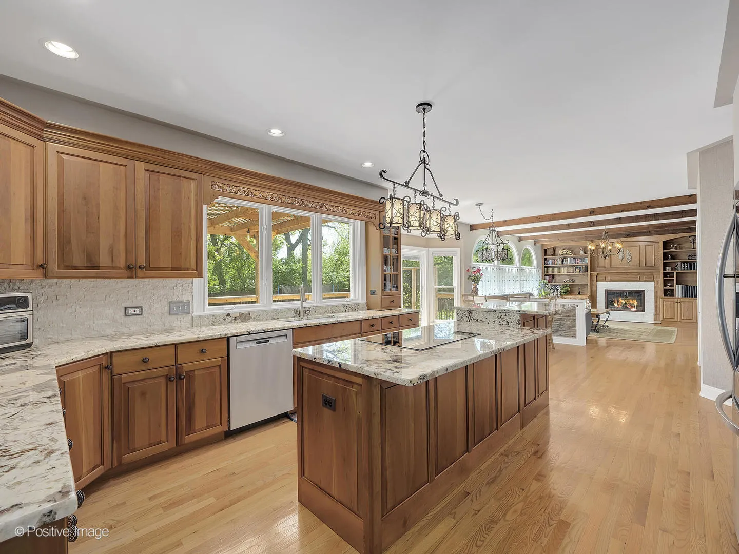 This stunning Willow Creek beauty is the winning combination of meticulous condition, extensive updating, and a beautiful neighborhood! Truly a spectacular specimen of gorgeous finishes, trim work, natural stone, and custom paint! Owners have lovingly updated every inch of this home, including all new hardwood floors throughout, iron stairway balusters, incredible granite & stone backsplashes. The kitchen is huge and has a fabulous island, newer refrigerator, and cooktop & enormous breakfast room with access to newer deck and lush backyard. The family room boasts beamed ceiling, built-in bookcases & gorgeous fireplace with stone surround. The dining room has a butler pantry and coffered ceiling. The beautiful primary suite features a newly remodeled bath with double sinks, granite counters, marble, custom flooring, separate shower, and jetted tub. Extra-large hall bath is also newly redone with double vanities, custom tilework & skylight. The basement is finished and provides another great entertainment area or place for kids and entertaining to your heart’s content. Room for all your vehicles in the 3-car garage. Gorgeous yard with beautiful landscaping! This home is pristine and gleams with pride of ownership – Move-in ready! It’s perfect!