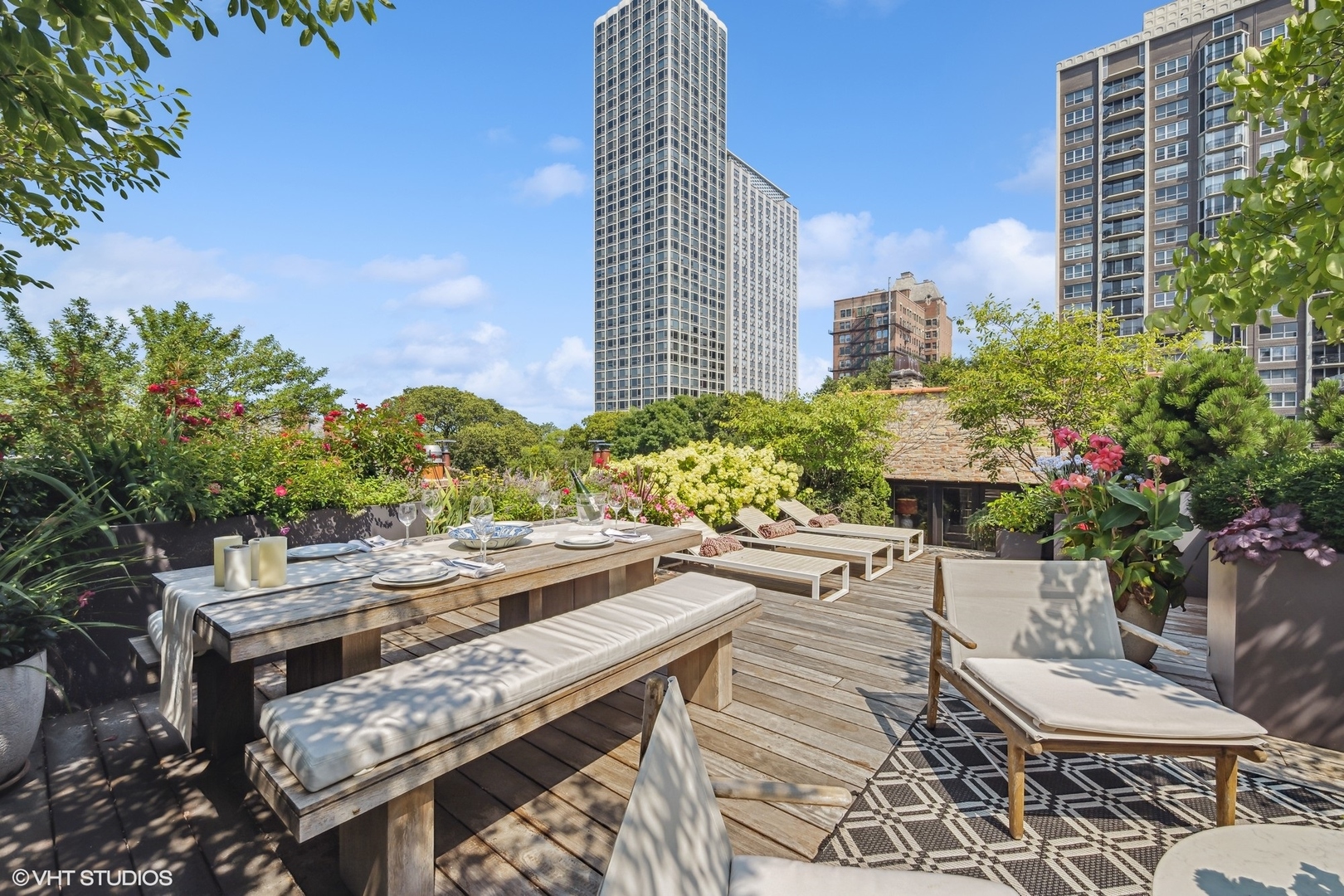 Exquisite and historic, 1521 N. State Parkway is a rare, prized property on one of Chicago’s most coveted blocks known for its magnificent residences. Built in 1894 this George Maher home stands apart for its Beaux-Art style, limestone facade, masterfully landscaped rooftop terrace as well as its one-of-a-kind iron front door. Designed for luxurious living and the highest caliber entertaining, this five story, six bedroom residence was recently gut renovated by Hewitt Horn giving the home a clean, contemporary flare that sprawls over 9,700 square feet and features incredible outdoor spaces. A storied home that has played host to luminaries from all industries, this once-in-a-lifetime offering awaits the most discerning buyer. Entering the home through the stately doors, you are greeted by a regal, formal gallery surrounded by custom-paneling that sets the tone for the rest of this majestic home. The expansive main level is graced with rift and quarter sawn parquet flooring, soaring 12′ ceilings and white walls that are a canvas for your art collection. The main living room and sitting area are focused on gracious living and the marble fireplace serves as a focal point as you enjoy the view from the floor to ceiling French doors overlooking State Parkway. Off this room is the formal dining room that is also perfect for the homeowner who lives to entertain. A chef’s dream best describes the fabulous eat-in kitchen with its large center island, gorgeous marble countertops and top-of-the-line appliances – French doors off the kitchen leads you out to a quaint terrace. The sweeping grand staircase ushers you up to the second floor where you will find three ensuite bedrooms all with exceptional millwork and sumptuous details. The west bedroom is set as a library with a marble fireplace surrounded by built-in cabinetry and ornate crown moldings. This Versailles-inspired room features several windows with tree top views. The third floor features a jaw dropping primary suite with vaulted ceilings and graced by a meticulously detailed fireplace. An ensuite bathroom clad in white marble boasts a double sink, oversized soaking tub, separate steam shower, and separate water closet. Not to be missed, the primary closet is a dream. Across the floor, a bold office swathed in wallcoverings sits next to an oversized lounge/den space. The top floor is your entertaining level – You are greeted to this sunny fourth level by a skylight and a spacious, warm family room with stone fireplace and French doors that lead you to one of Chicago’s best terraces. This beautifully landscaped terrace offers a built-in grill, outdoor fireplace, lighting, irrigation, and the perfect city views – this outdoor space is truly a showstopper. On this level you will also find a small kitchen making entertaining a breeze, a generous bedroom and full bathroom. The lower level is just as appealing with a large game room, a 2nd laundry room, ensuite bedroom and extra storage. This incredible home offers a 1 car garage and a gated 1 parking pad. Perfectly poised in the Gold Coast, the block of North State Parkway is home to some of the most beautiful homes in Chicago. With the park and lake at your doorstep, and world-class restaurants, and chic Oak Street shopping nearby, this is iconic Gold Coast living at its peak. 1521 N. State Parkway represents a life of luxury and is ready for you to move right in and enjoy. 2 YEAR LEASE MINIMUM