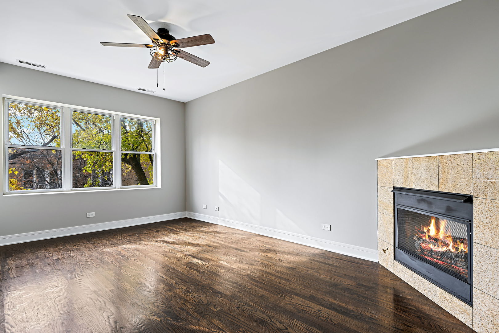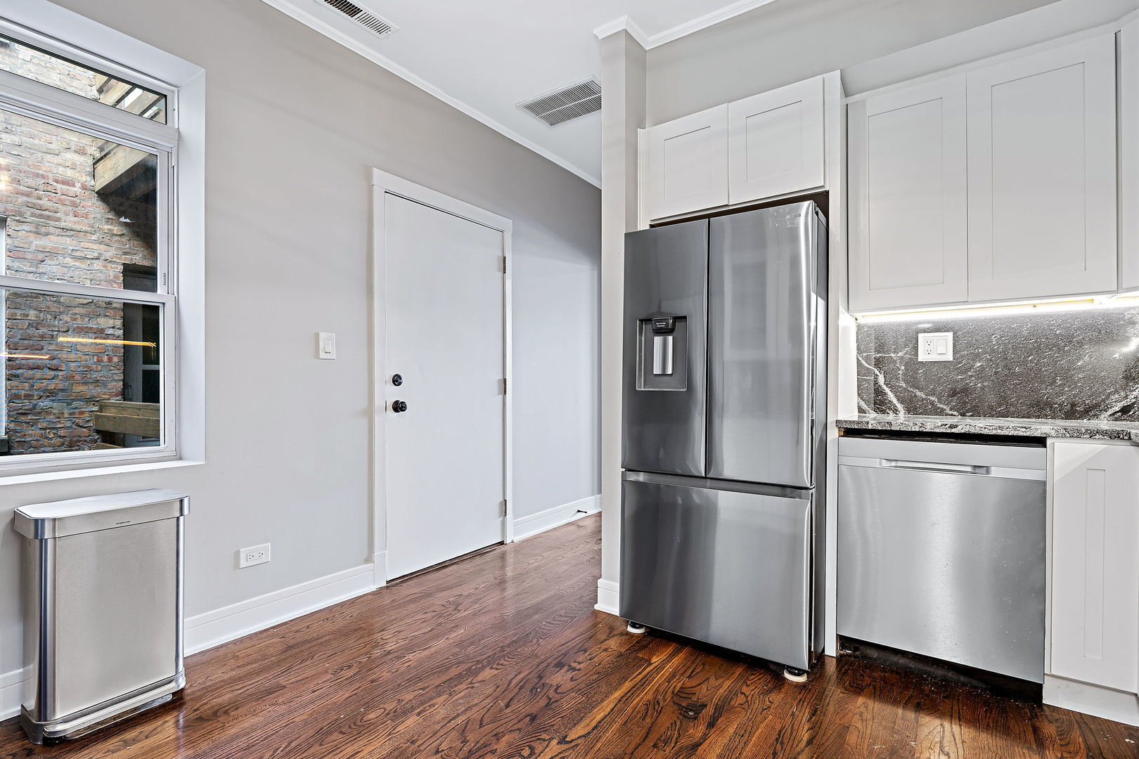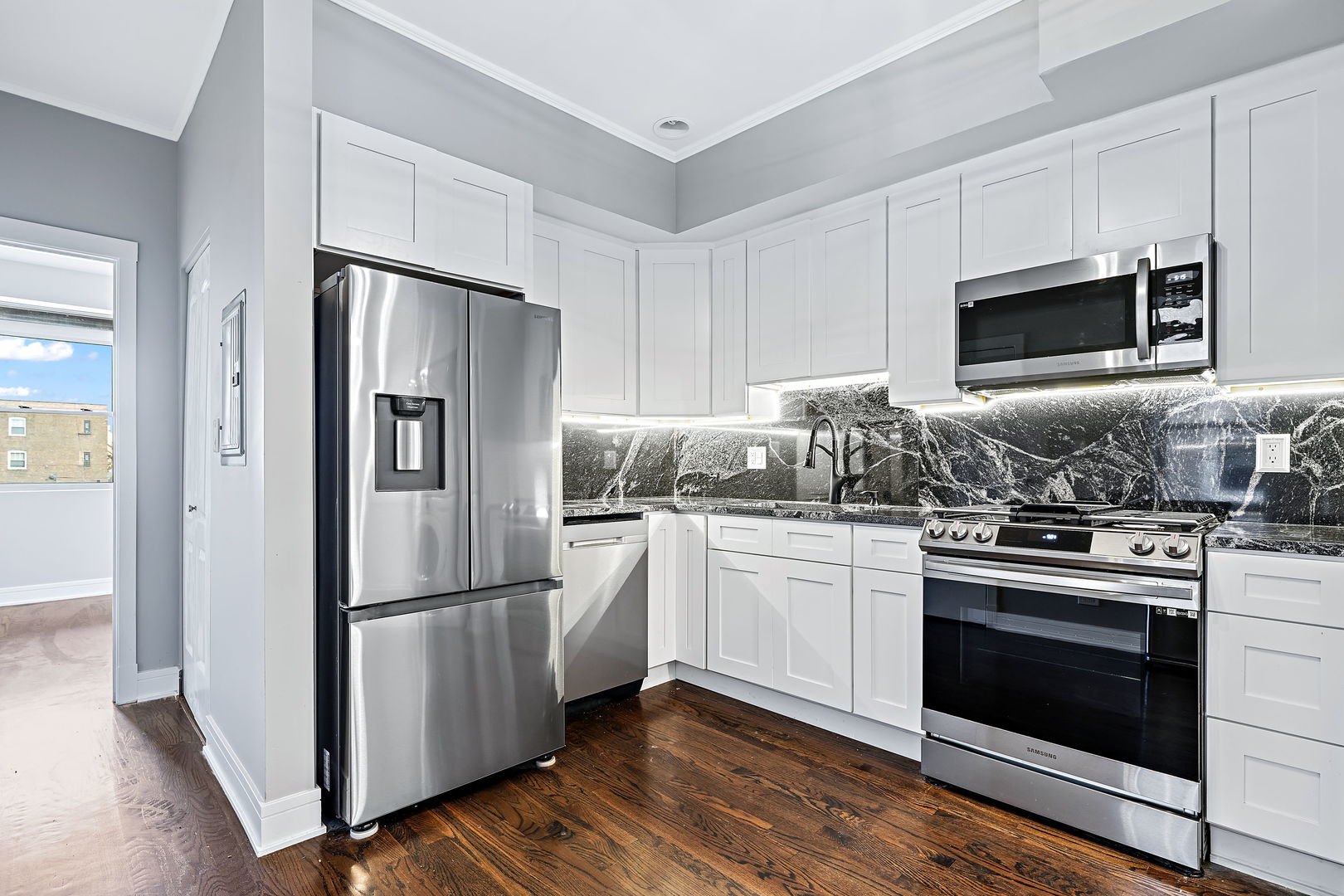 Brand new (Finished In October) High-end renovation! This 2 bed, 2 bath condo features an eat-in kitchen – All new HVAC system from Carrier, Samsung SS appliances, granite countertops with matching granite backsplash, stackable LG washer and dryer, new custom soft close cabinets, engineered and designed with space and elegance in mind – All new tamper proof receptacles and upgraded switches, All new custom tiled bathrooms with in ceiling sound for a stimulating shower or bath, along with Nutone fans, mood lighting and LED defogging mirrors and medicine cabinets – Stunning focal walls in both bathrooms, Fireplace, all new designer modern trims and finishes throughout – Best to be seen in person, no doubt! All the creature comforts. There’s nothing this home is lacking outside of your personal touches – Make this beautiful condo your own. This unit also includes your own storage locker in the basement and bicycle storage. Large wrap around deck for your outdoor hosting and grilling, refinished hardwood floors throughout, beautiful view out the front to tall trees and sunlight galore! Ample street parking. Designer spared no expense here! SUPER pet friendly – rentals OK! – Walking distance to Horner park, farmers market and many nearby parks, great restaurants in the Montrose, Irving and Kedzie corridors, supermarkets, shops, riverwalk, nature trail, and easy access to public transit and highway.