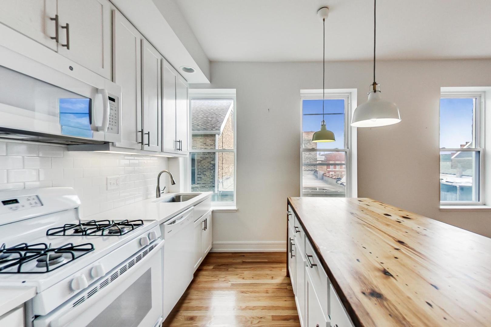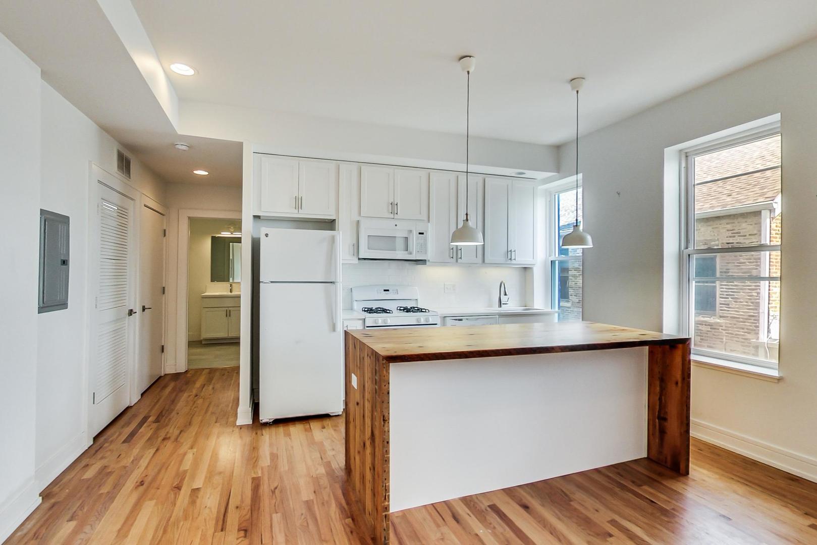 Welcome home to this stunning fourth floor 2 bed 2 bath unit in the heart of Pilsen with views of downtown. Eastern exposure floods the unit with natural light. This unit features wood floors, central heat and a/c, and in-unit washer/dryer. Modern kitchen with quartz countertops and large kitchen island. Easy access to all that Pilsen has, shops nightlife, and restaurants. Conveniently located next to expressways, UIC, and Rush Medical District. NO move-in fee or Security Deposit. $50/m pet rent. Available Now!