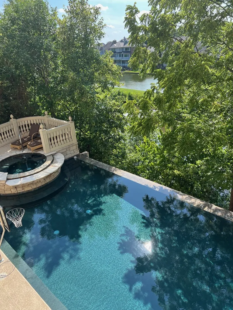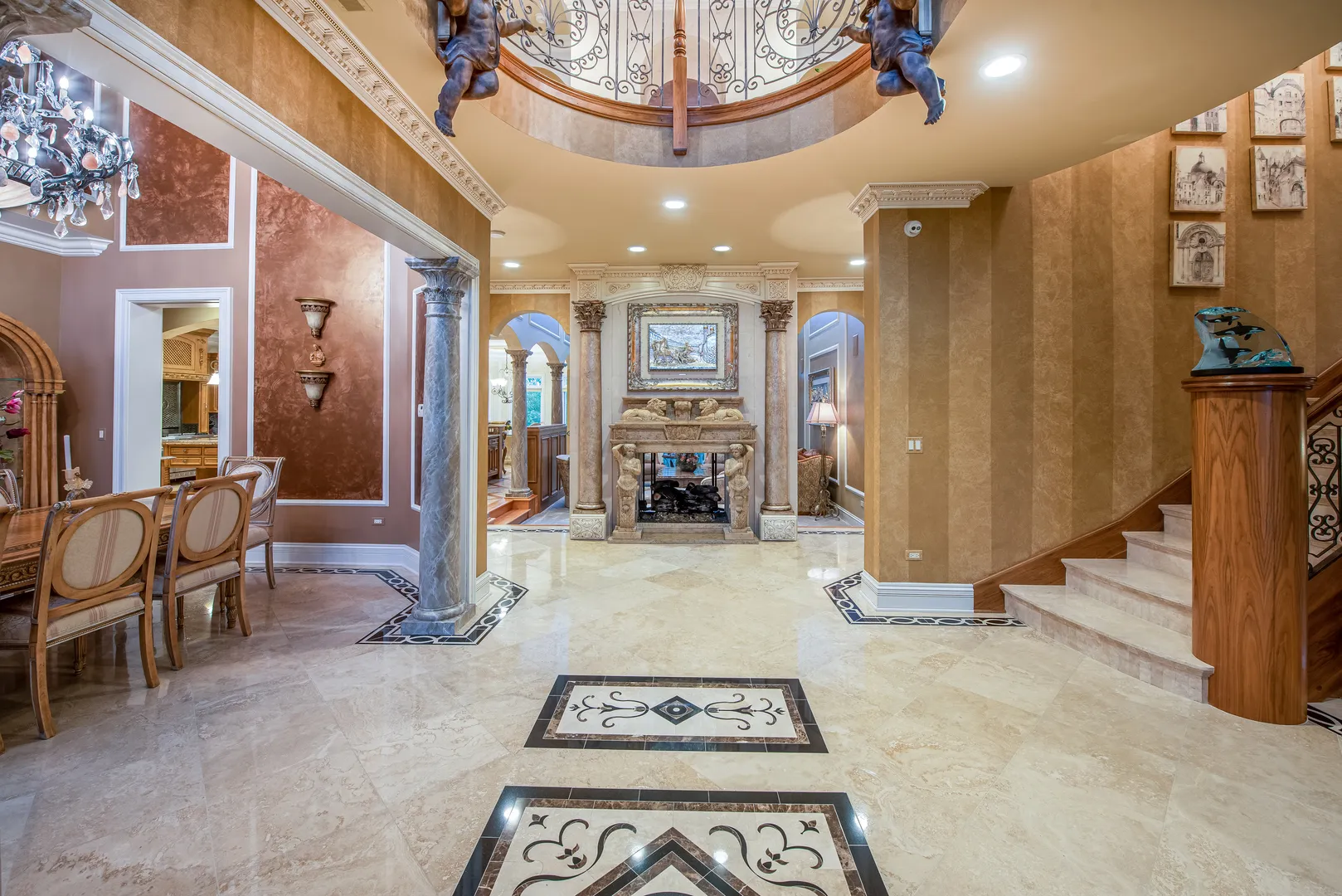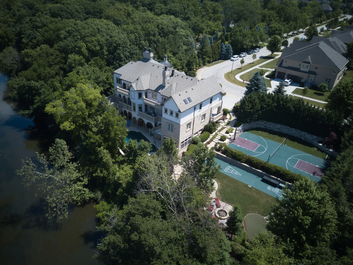 The Perfect Home for an Active Person or Family! One of the largest properties on the DuPage River. The home also sits high on one of the largest TWO lots for sale on the DuPage River. This land back side is 191 linear feet on the water and has approximately 2 acres of water and pond between you and the residences across the river which provides extreme privacy. Access the river from your own backyard for Kayaking, Rafting and Fishing. Vacation at home w/infinity pool, hot tub, outdoor full bath, fireplace/pits, putting green and your very own Pickleball, Basketball, volleyball, tennis and shuffle bd courts. Ride your bike down the street to the well known Dupage River Trail, ideal for cycling, running and hiking. Next door to DuPage River Sports Complex with Soccer and Baseball fields, Basketball courts and Hockey ring. Walking distance to a huge dog park and Whalon Lake, ideal for boating and fishing. Only 10 minutes drive from the action of downtown Naperville and Edward Hospital. A mile away from Grocery stores, Dry cleaners, Banks, Shopping and Restaurants. Easy access to highways! Just shy of 1 acre along the DuPage River. The exquisite details provided by A&I Architect and Design group, from floors to ceilings make this Naperville Estate unique and a must see. Still owned by the original Owner. Amenities begin right as you pull in. Stucco, stone & copper ext, with slate roof, surrounded by lush gardens. Heated driveway, walkways & garage. Formal entrance & dining rm w/exquisite Murano chandelier. The finest custom kitchen w/large island with 2nd sink and 2nd dishwasher, eating area, 6 stools wet bar, etched glass built-ins, Viking appl, 48″ Range, 2 Bosch dishwashers & the French culinary masterpiece, La Cornue Rotisserie Oven. Both Viking Refrigerator & Freezer are full size. Rotating flat screen tv can be enjoyed from both sides, kitchen & inviting living room with brand new sculptured carpeting & welcoming double sided fireplace. Unwind in master suite -sunken Jacuzzi tub, painted mural, sitting rm w/fireplace & terrace overlooking pool and acres of river. Elevator from pool to each level. Impressive walkout entertaining floor with double sided fireplace, 7 TVs, expansive fully equipped bar w/dishwasher, microwave, 2 professional bar refrigerators, ice cream freezer, ice maker, temp controlled wine cellar, 12 seats theatre, sauna, massage room & full gym w/large steam shower. There are 3 washers, 3 dryers throughout the house. 3 car garage + extra garage/storage. The heated driveway and the entire pool deck and balconies are newly redone. Your luxurious oasis awaits! Much more than a house, this impeccable mansion is a gorgeous home!