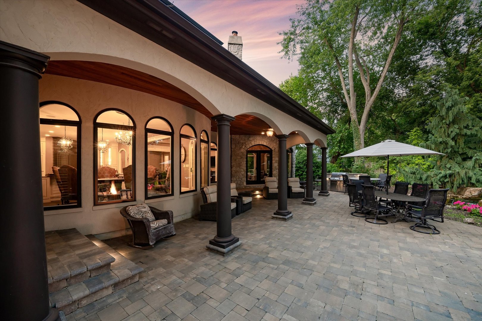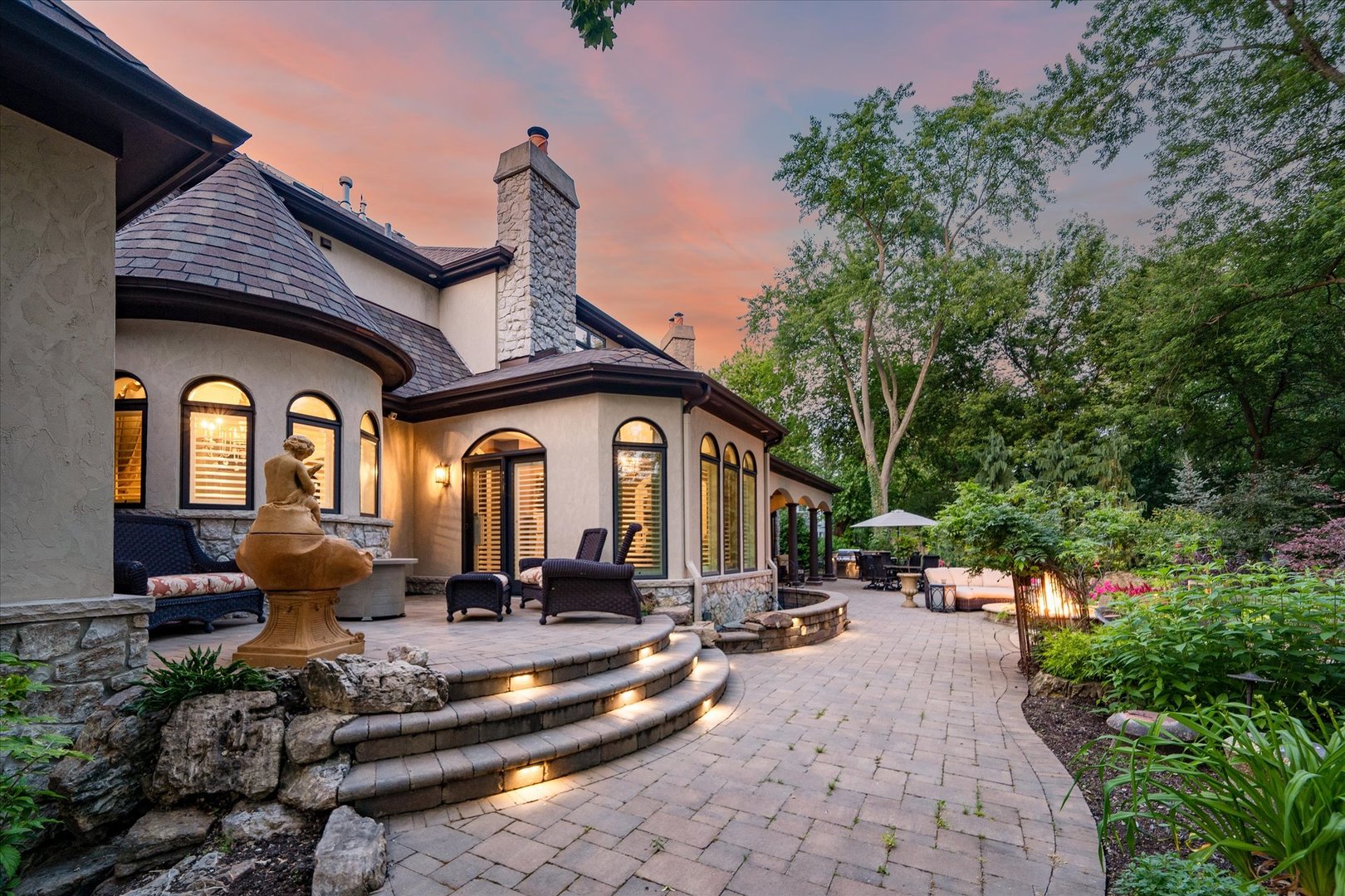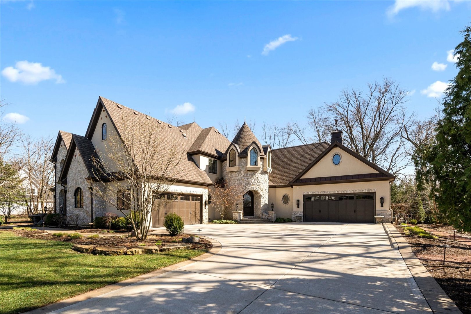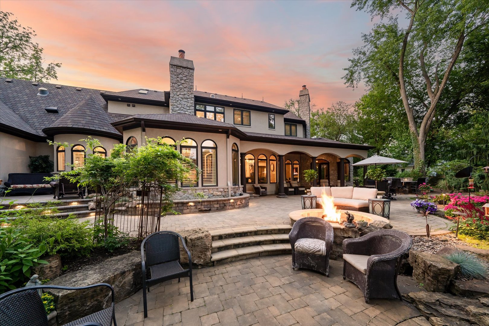 CALL AGENT FOR PRIVATE SHOWING while in TEMP status. French Provincial Estate located in Naperville’s coveted Green Acres is truly one-of-a-kind. Multifunctional home offers over 7600 square feet of elegant living. There are 2-SEPARATE LIVING SPACES w/2-separate entrances to ensure privacy for those seeking multigenerational living, families that entertain, extended family, or corporate guests. Each home boasts custom arched mahogany and glass doors, custom curved wood and iron staircases, and two private 2-car attached garages with heated floors. THE MAIN RESIDENCE offers 5 bedrooms and 5.1 bathrooms, two of which are primary suites w/ heated floors & private laundry rooms, one is an ensuite, and the other two bedrooms share a Jack & Jill bathroom. Cozy up to the double-sided stone fireplace in the family room w/ surround sound. The dream kitchen w/ custom cabinetry, 8′ walnut island, & high-end appliances such as Wolf 6 burner stove, two Sub-Zero refrigerators, a wine fridge, refrigerator drawers, and an icemaker, will impress any chef. A dining room, library, music room, main floor full bathroom & half bath, sunroom & mud room w/6 custom built-in lockers complete this residence. THE 2ND-RESIDENCE connects through the first-floor mud room where the 3rd laundry room is located. This wing offers handicap-accessible features w/ a full state-of-the-art kitchen w/ Wolf appliances, and a beautiful turret ceiling. The first-floor primary suite features a walk-in shower, a claw foot tub, and a dressing vanity w/ beverage cooler. A powder room, custom den & stunning living/sunroom w/ a custom double-sided stone fireplace complete this showstopper. THE BASEMENT is plumbed for a bathroom & kitchen, is drywalled, and offers over 4,000 additional sqft with heated floors, 2 finished staircases up to the main floor & a 2-sided fireplace. Tranquility awaits in the BACKYARD OASIS w/ a covered lanai, an Aquascape designed pond w/ waterfalls, multiple serene sitting areas to enjoy, fire pit, treehouse & built-in grill w/ custom bar height granite table. CUSTOM FEATURES throughout such as lighting, plantation shutters, cabinet hardware, full house water fire suppression system & backup generator. And that’s not all! It even has an elevator to access all three floors. Home is situated in a private setting but is close to everything! Walk/bike or take a Tuk Tuk to Downtown Naperville, D203 schools,Riverwalk, Restaurants & Hospital. Niche ranked Naperville as “the “best City to raise a Family” for 2023 & was also named the fourth best city to live in America! Built w/ unique features & top-of-the-line materials, making it unparalleled in quality and design. Can’t be replicated at this price!