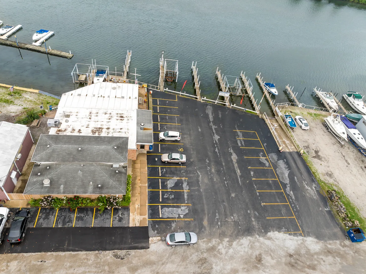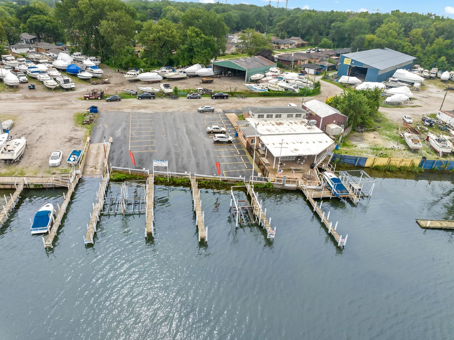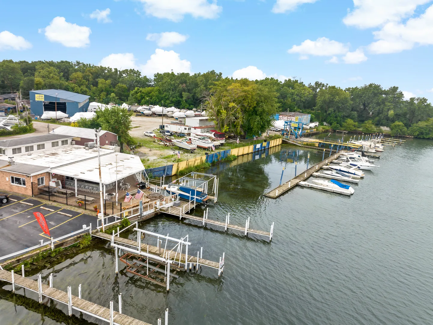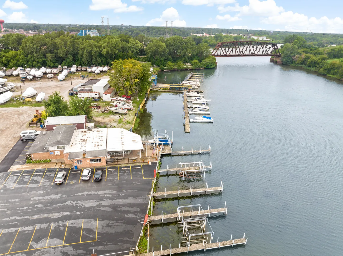 Well Established, ‘Waterfront’ Restaurant Bar and Marina on the Calumet River. Access to Lake Michigan or the Mississippi River. Boat storage, slips, ramp and lifts. Pole barn. (1000 sq.ft.) has overhead door, crane, compressor and work benches. Very sharp restaurant with patio service. Games and slots. There is a kitchen and also a commercial kitchen upstairs for parties. In addition there is a separate efficiency apartment upstairs with an office. Two large bar service areas and table space inside and out. 100 persons inside and out. Storage closets, walk-in cooler, and baths. Very clean turn key business. Security Cameras. 26 Parking spaces. 7 lots in total. 250 X 100