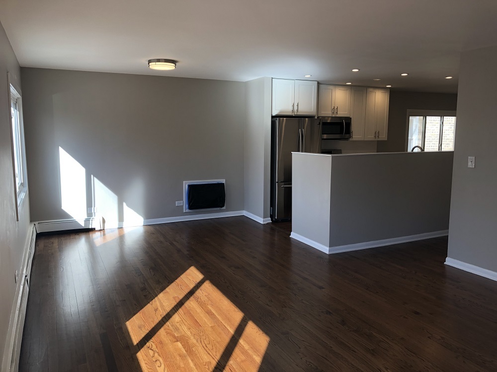Completely updated 3 bedroom and 1.5 bathroom apartment. This home is very spacious with large bedrooms, an eat in kitchen and dining room. It features hardwood floors throughout, an open kitchen with white shaker cabinets, quartz counter tops and stainless steel appliances, in unit laundry, ceiling fans and updated LED lighting. There are a lot of closets throughout. The primary bedroom has a private 1/2 bathroom. Heat and gas are included in the rent as well as two tandem parking spots.