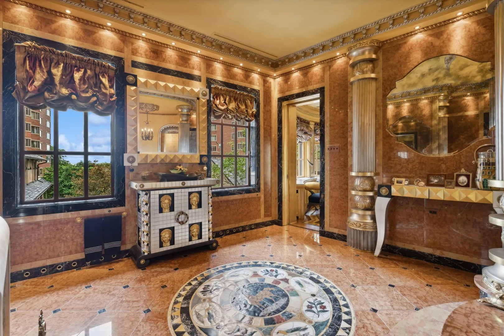 Once-in-a-life time opportunity to own one of Chicago’s iconic estates, showcasing over 25,000 Sq. Ft. of combined living spaces and situated on nearly a third of an acre on Gold Coast’s most coveted Astor street. This palatial architectural masterpiece designed by Howard Van Doren Shaw for the Goodman Family graces the market for the first time in 40 years, promising to leave you speechless. A true hallmark of Chicago’s rich history, Astor Court has long captivated passersby with its magnificent neo-classical/Georgian Revival architecture spanning an impressive 80′ feet across. This distinguished estate is centered around a one-of-a-kind tremendous courtyard, meticulously landscaped with lush gardens and flowing fountains, transporting you to the tranquil Italian countryside, creating a peaceful sanctuary in the vibrant urban setting. The main residence of the estate features over 10,000 sq. ft. of exquisitely renovated grand spaces blending timeless elegance with modern luxury. No expense was spared in creating this treasure, presenting a rare opportunity to own a coveted piece of Chicago’s history. Every inch of the home exudes sophistication and grandeur offering unparalleled living experience featuring 13′ ceilings, venetian plaster walls, incredible intricate millwork and hardwood oak flooring throughout, fireplaces with magnificent original marble mantles, and gold plated fixtures. As you enter the home, you are immediately captivated by the grand sense of space, elegant design and a sweeping curved staircase that ascends to the expansive main living areas. Every room exudes scale and sophistication offering both beauty and functionality. There are five en-suite bedrooms, each with its own style and personality. The luxurious primary suite features beautiful lake views and a grand primary spa bath adorned with exquisite Italian marble. In addition to the main residence, Astor Court showcases six gorgeous unique rental units, each with its own distinct charm and character, generating significant income. The entire estate encompasses 45 rooms, 16 bedrooms, 17 baths and 18 fireplaces offering endless opportunities to expand the main residence or transform it into a sprawling multi-generational family compound. Currently, there are two parking spaces located directly behind the property with the option to convert the coach house into a garage for additional parking. This extraordinary estate is perfectly situated just steps from Michigan Avenue, the lakefront, parks, premier shops, favorite restaurants, and world-class entertainment.