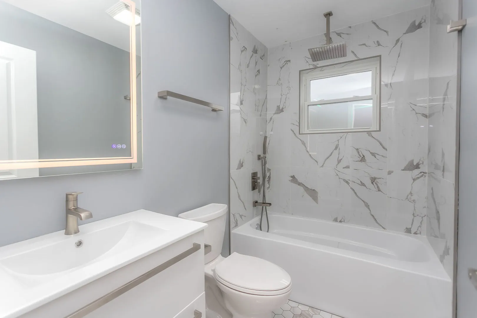 HUGE opportunity to move into a NEWER, completely REMODELED unit. This unit was modern and professionally designed. This unit features 2 large BEDROOMS, 1 LUXURIOUS SPA-like bathroom, and brand NEWER stainless steel appliances including a STOVE, FRIDGE, and MICROWAVE. The beautifully designed kitchen has NEW soft close cabinets with quartz countertops, quartz backsplash, a deep sink, and new plumbing throughout. The classic gray floors go very well with the freshly painted walls and new light fixtures throughout. The SPA-like bathroom offers modern light fixtures a waterfall-style shower, new flooring, a tub, and a new bathroom vanity with an anti-fog beauty mirror. This luxurious unit is ready and available NOW. Gas included and 2 PRIVATE exterior parking spaces included in the rent!!!!! Coined laundry is available in the building. The building is located in a quiet street close to highways NO PETS, NON-SMOKING UNIT**CREDIT/BACKGROUND CHECK AND EMPLOYMENT VERIFICATION FOR ANY APPLICANTS 18 & OVER, strong Credit and MONTHLY INCOME. Set up a showing today. PRIDE OF OWNERSHIP IS VISIBLE IN THIS BUILDING.