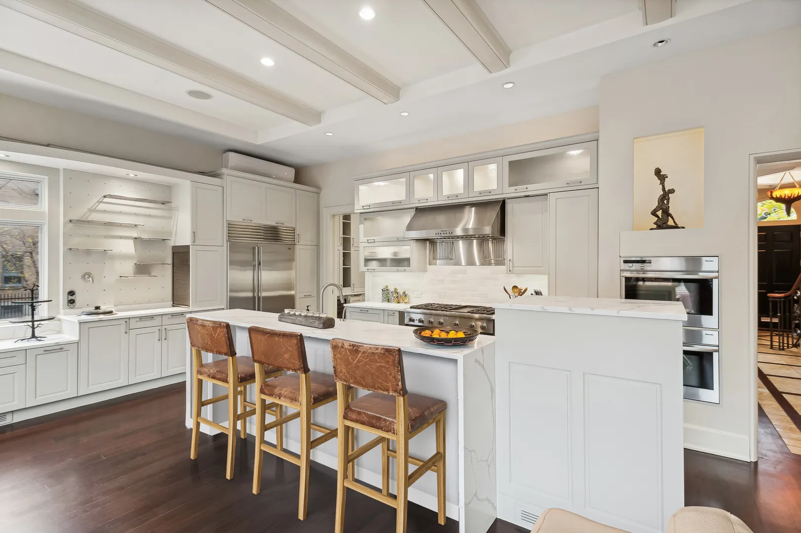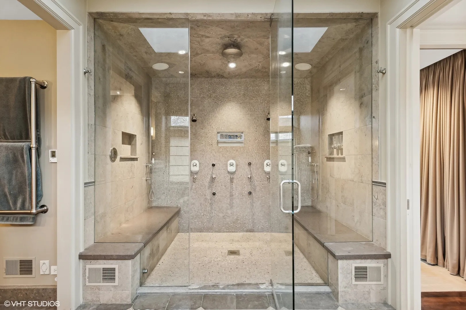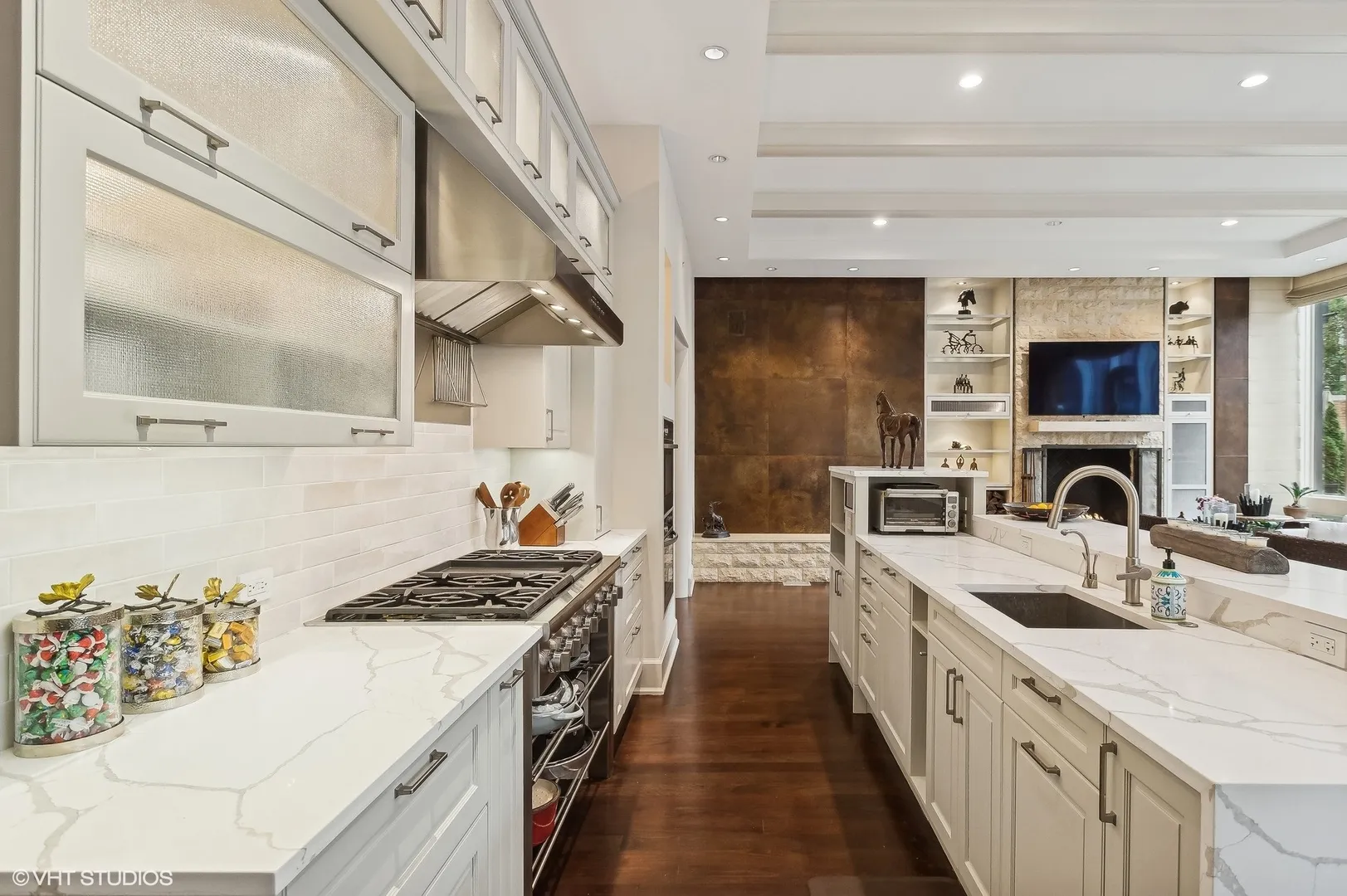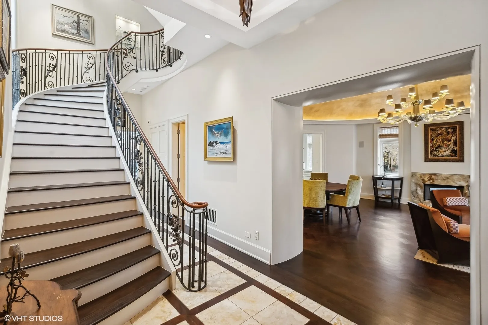 With a bit of Paris, extravagant finishes and infrastructure, and over-the-top outdoor living and entertaining spaces, this rare custom house – created and built with no expense spared – on an enormous gated 38×132 lot offers something special and entirely different in the heart of Lincoln Park. Recently updated, the grand entry hall with an elegant open iron and leather-clad stairwell leads to a front salon with a stunning uplit goldleaf domed ceiling. An enormous chef’s kitchen/great room with soaring ceilings, an adjacent commercial butler’s kitchen for caterers, and walls of glass opens to successive outdoor spaces and terraces, including a spectacular pavilion suitable for yoga or movie nights with oscillating fans, heaters, and privacy walls. A sumptuous primary suite has a spa bath custom built-ins and dressing room with valet. Top-floor suite is now used as an enormous barrel-vaulted penthouse recreation room flanked by two terraces, one of which has a retractable awning, hot tub, fireplace, and built-in grill. Attached 2-car garage, more parking in drive for guest + additional garage and outdoor space is all included! Simply spectacular!