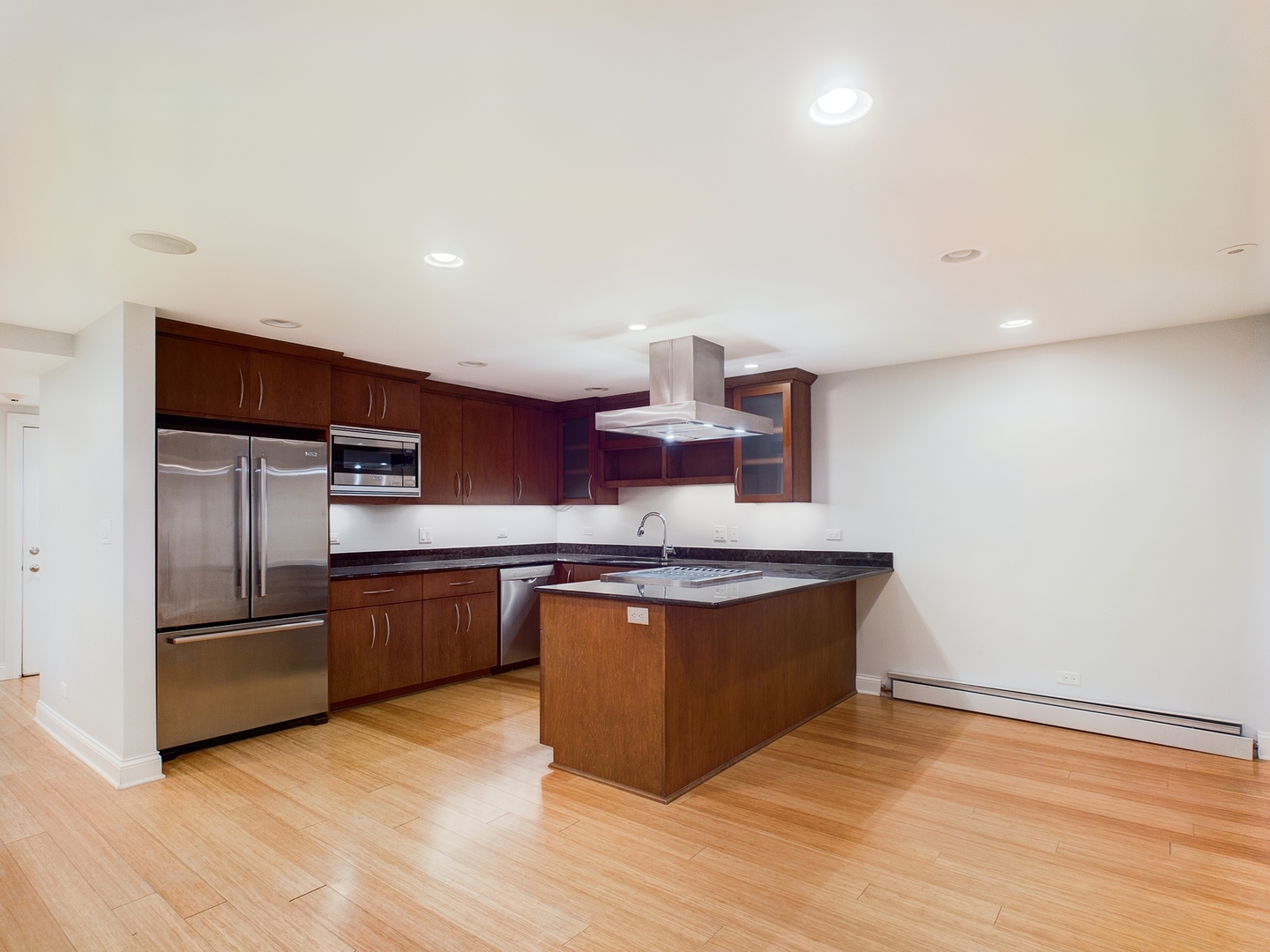 Stunning 3 bed/ 3 bath garden level unit in beautiful Lakeview. Boutique building with private elevator access that opens directly into unit. Chefs kitchen w/ Viking appliances, hooded range, granite countertops and breakfast bar. Large living space w/ built-in surround sound and combination dining area. Unit features brand new beautiful bamboo floors throughout, In-Unit laundry area and custom cabinetry. Master en suite offers built-in closets, spa tub and separate shower. Common rooftop deck to enjoy the beautiful Chicago summers. Conveniently located near E Broadway eateries and retail, Belmont Harbor, Lincoln Park Zoo and Illinois Masonic Hospital. Easy access to W Belmont Ave, N Broadway, Lake Shore Dr and the 36 bus line. Dedicated exterior off street parking spot for an extra $150/mo! Leases as short as 6 months allowed! Don’t miss out on this one!