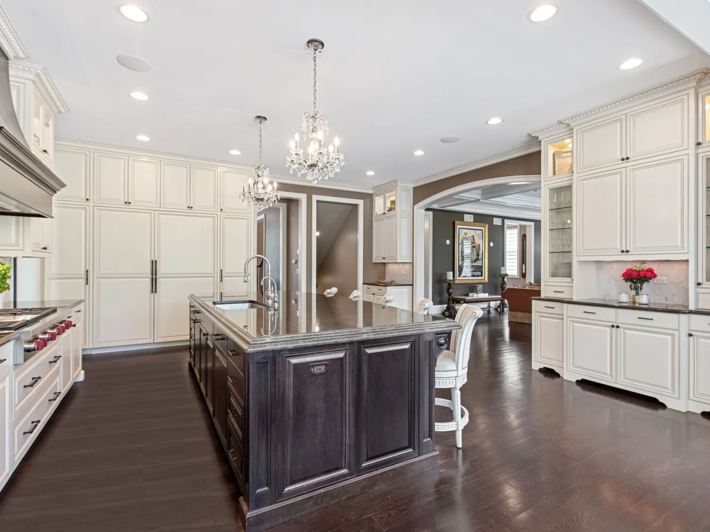 A Rare Opportunity. Custom-Built Home Over 12,000sf On 1+ Acre Equipped With 2 Attached Separate Garages. The oversized 2-car garage is over 2500sf. This is the ultimate car collection garage/flex space. ROOM FOR 11 CARS ON THE FLOOR OR 15 WITH THE LIFTS. This incredible space can easily be turned into a golf simulator, basketball court, tennis/pickleball court, the possibilities are endless. The interior has been meticulously designed to make entertaining effortless and a busy lifestyle seamless. The 2-story foyer welcomes you into this magnificent home with beautiful hardwood floors, wide moldings, custom trim and millwork, designer fixtures, 8ft solid wood doors, and soaring 10ft ceilings on every level. The foyer is flanked by the elegant formal dining room and gorgeous sitting area with large windows overlooking the front yard. The wet bar w/ice machine is ideally located between the sitting room and the Great Room. You will love entertaining in the gorgeous Great Room with magnificent coffered ceiling, woodburning fireplace, and wall of windows with picturesque views of the sprawling backyard. The family room flows into the 33×18 state-of-the-art kitchen with high-end appliances, stunning crown moldings, beautiful built-in cabinetry with accent lighting, granite countertops, gorgeous porcelain backsplash, an extra-large island, designer lighting, and a walk-in pantry. The kitchen overlooks the incredible private fenced yard with patio, built-in kitchen, fire pit, and expansive yard large enough for a pool, pickleball court, or endless space for the family to enjoy. Outdoor entertaining has never been so easy! It is truly a one-of-a-kind home in East Glenview. There is a 28×8 well-designed mud room with private front entrance, custom closets, built-in sitting bench with storage, sink, and access to the backyard. Great sized office, full bath and shower complete the main level. The 2nd level features soaring ceilings with 4 spacious ensuite bedrooms w/vaulted ceilings, beautiful private baths, convenient 16×51 storage room and 23×18 bonus room which could be used as a 5th bedroom, office, or exercise room. The large primary suite is gorgeous with its custom 20×15 bath with heated floor, chevron natural stone floor, steam shower, soaking tub, enormous double vanity sink, and private water closet. You will never run out of space in the 20×15 walk-in closet/dressing room. The 2nd level also includes a laundry room with a high-end washing machine, 2 dryers, wall of cabinets for storage, a folding counter, and a large closet. Just when you think it cannot get any better…. welcome to the amazing 3,000sf finished basement with its high ceiling, heated floors, recreation rm, game rm, office/bedroom, storage rm, and full bath. Audio/video control with speakers throughout the main floor and primary suite (can easily be expanded to additional bedrooms and basement) & garage audio/video on control 4 w/additional professional sound system, 7 camera surveillance/security w/DVR. Excellent location with an easy walk to restaurants, shops, park, and school. Easy access to I-94, Metra, and O’Hare. Award-winning School Districts 34 and GBS 225. A HOME LIKE THIS COMES AROUND ONCE IN A LIFETIME!