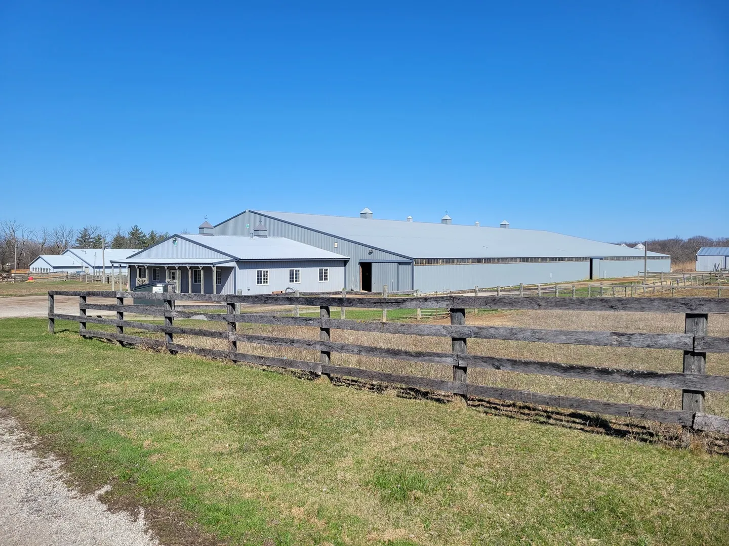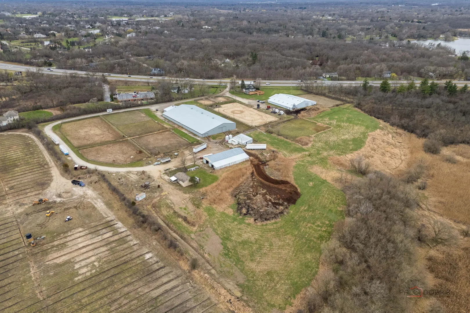 This prime 30-acre property, offering valuable frontage on Route 12 and surrounded by the Lakewood Forest Preserve, presents a multitude of possibilities! Currently used as an equestrian business, this unique, private parcel can be transformed for a variety of residential or commercial purposes. A true haven for equestrian enthusiasts, it boasts an insulated 250’x90′ indoor arena, 72 10’x10′ box stalls, a 250’x130′ outdoor arena, a 40’x60′ heated workshop, a 100’x60′ barn, two tack rooms, a club room, an apartment, and a home. Build your dream home in the back of the property overlooking the Forest Preserve. Not interested in an equestrian center? This property’s excellent location-alongside Route 12, where roughly 39,400 vehicles pass daily-makes it an ideal spot for a new business. With approximately 370 feet of frontage, the property is zoned AG and situated in unincorporated Lake County.