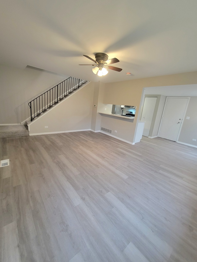 Finally a completely remodeled unit with a basement! Gorgeous kitchen with new white shaker cabinets, new quartz tops, new stainless appliances, new sink, new faucet, new disposal. New luxury vinyl plank floors, fresh paint, new outlets and switches, new sump pump, new ejector pump, new carpet and fresh paint throughout. Bathroom has new tub with surround, new flooring, new vanity, new sink, new toilet and new lighting. Primary suite offers oversized windows, new carpet, new ceiling fan, new 10-year smoke detectors, and walk in closet. Basements features an additional bedroom, with new carpet, fresh paint, and roughed in plumbing for additional bathroom. You will not find a more updated unit in Hanover Park at this price! Neighborhood pool and several.parks for outdoor enjoyment.