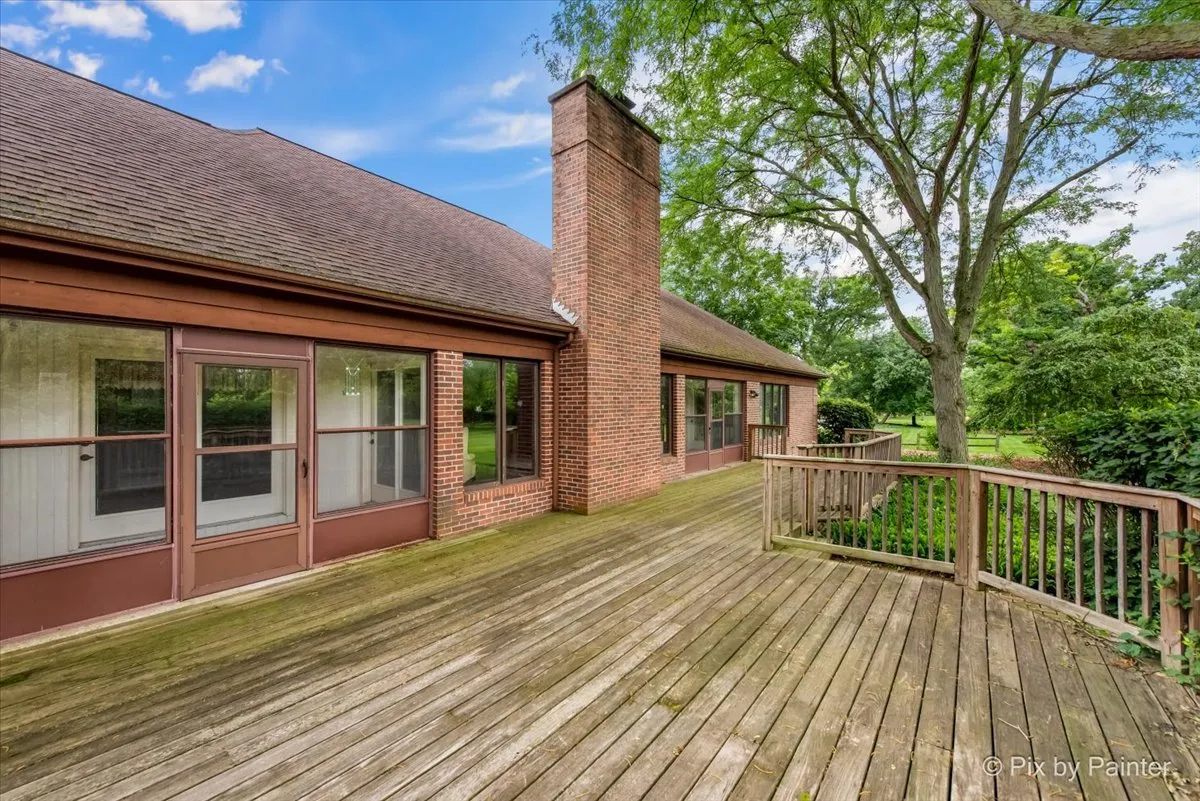 WE ARE EXCITED TO OFFER AN EXPANSIVE 4 BEDROOM 2.1 BATH, ALL BRICK EXTERIOR RANCH NESTLED ON ONE ACRE LOT IN THE WOODS OF CANTIGNY! This home has been meticulously maintained and with 3252 sq ft and a FULL basement it’s an opportunity for a new owner to make this home into something spectacular! With a flowing design this classic residence features the perfect blend of formal and casual living spaces including a welcoming entry foyer anchored on either side by a formal living room and dining room, a spacious light-filled kitchen with a separate eating area, huge island and a butler’s pantry. Kitchen opens to family room which overlooks the beautiful lush landscape of the backyard. Generous laundry/mud room off kitchen and garage. En-suite primary bedroom with a separate tub and shower, the biggest walk-in closet and SURPRISE- a private porch over looking the backyard! 3 additional bedrooms, some with walk-in closets, so much room for everyone! A full unfinished basement awaits your creative design ideas for additional living spaces! A 3-car attached garage. Newer HWH and some water treatment equipment. Nearby schools include Currier Elementary School, West Chicago Middle School, Community High School, St. Frances High School, and Wheaton Academy. Just minutes from Winfield Metra, I-88, the Forest Preserve, golfing, Cantigny Park and Gardens, and the Prairie Path! NATURE, PRIVACY, AND CONVENIENCE TO ALL YOU NEED! This property is being sold “As-Is.”