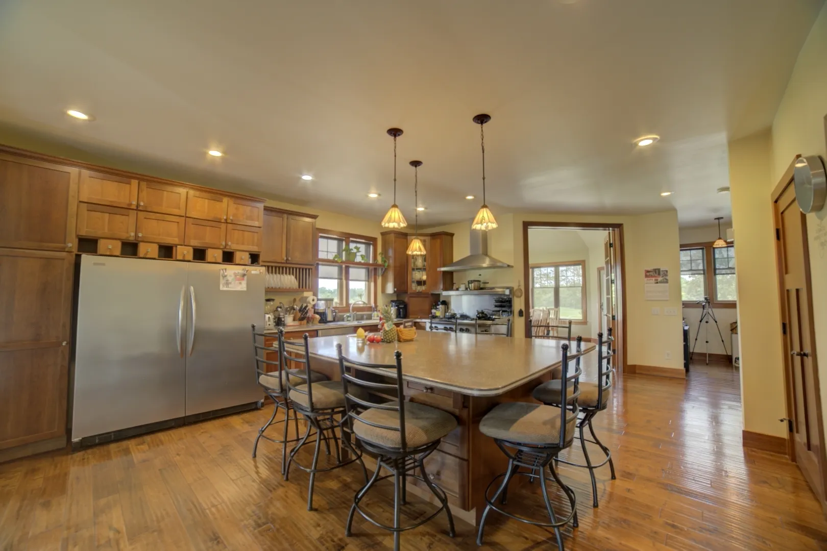 Tucked into a peaceful 5-acre parcel surrounded by mature trees, 1897 N. 2500 E. Rd. in Watseka is the ultimate expression of Country Luxury-a perfect balance of rustic charm and upscale comfort. This 5-bedroom, 4-bathroom Craftsman home offers over 5,600 square feet of beautifully finished space across three thoughtfully designed levels. The main floor welcomes you with gleaming 3/4″ hardwood floors, solid cherry doors, and rich custom cabinetry throughout. Culinary enthusiasts will appreciate the oversized kitchen island, built-in wine storage, commercial Vulcan range, and high-capacity stainless fridge. Retreat to the primary suite, where the spa-inspired bathroom includes dual sinks, a soaking tub, a walk-in shower, and heated tile floors for a cozy start to your day. The fully finished walkout basement is its own complete living space-featuring a second full kitchen, dining area, utility closet, large living room, three bedrooms, and a full bath-perfect for guests, in-laws, or even a home-based business. Additional luxury upgrades include geothermal heating, radiant floors in the basement, garage, and master bath, and a Navien tankless water heater. Outdoors, you’ll find a 40×50 heated workshop, a charming she shed, and a whole-house generator for peace of mind. Whether you’re entertaining or simply enjoying nature, this home has room to grow with additional acreage available.