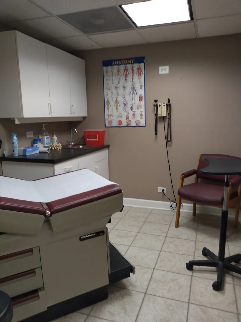 Large commercial multi-suite office space for rent in Lincoln Park. The expansive space features an elegant waiting room/ reception area with exposed brick, modern tile floors and granite counter, 8 exam rooms/ private offices, a large centrally located Rehab room, break room, storage, laundry room, and 3 restrooms- one with a shower. One garage space and 1 outdoor parking space included. Rent is $8,500/ month. Tenant is responsible for verifying square footage. Owner is licensed Illinois Real Estate Broker.