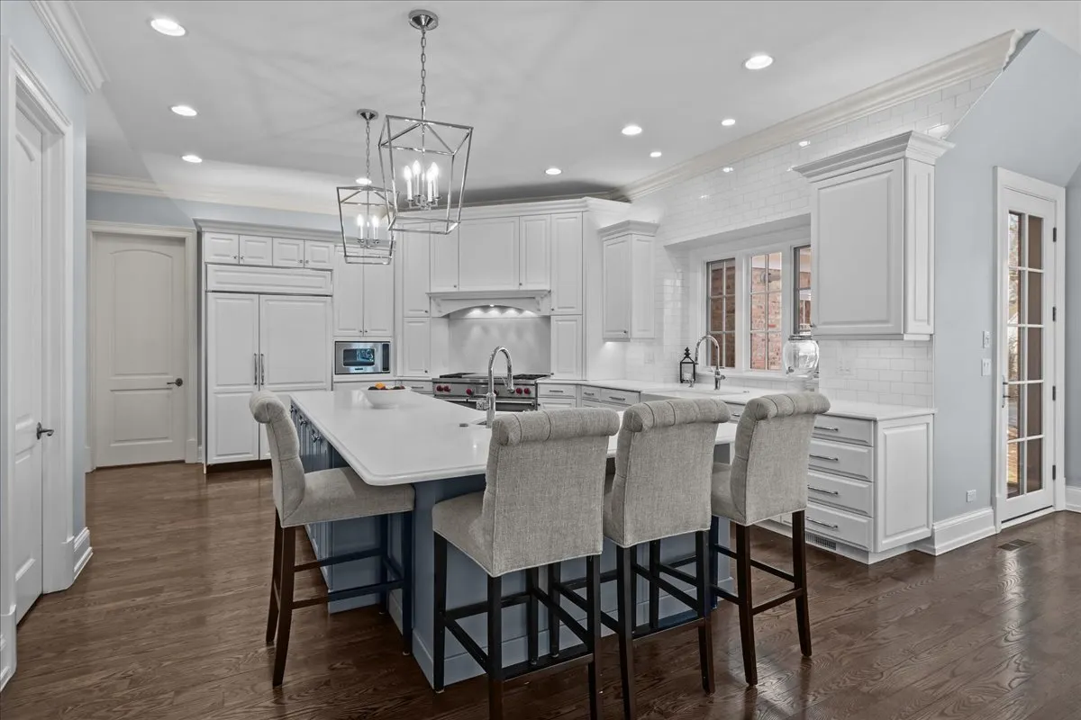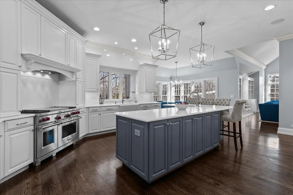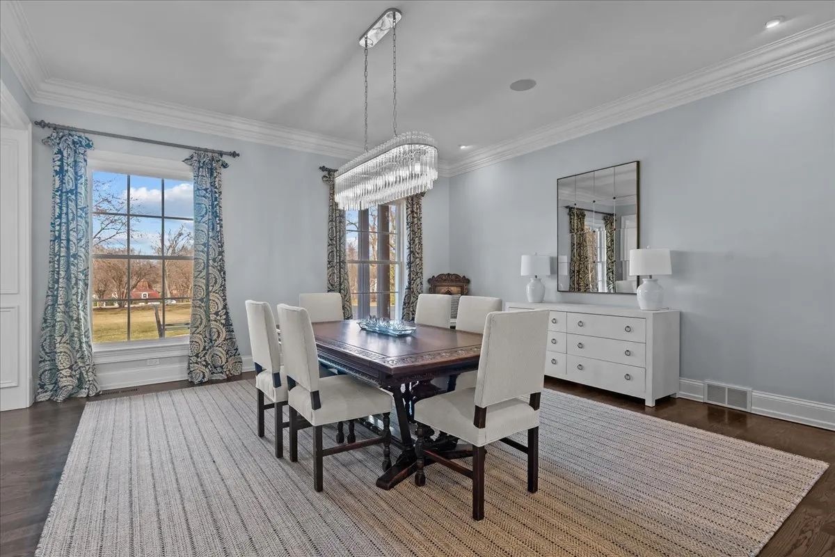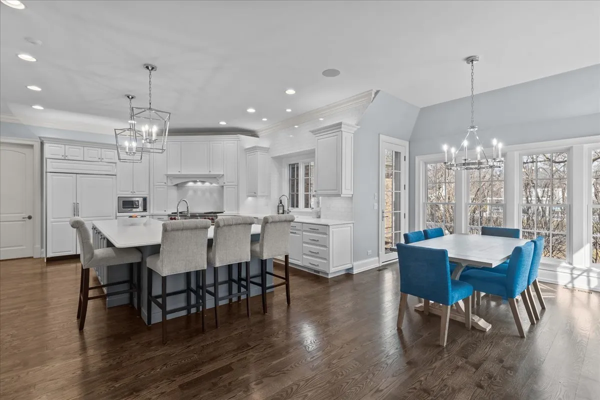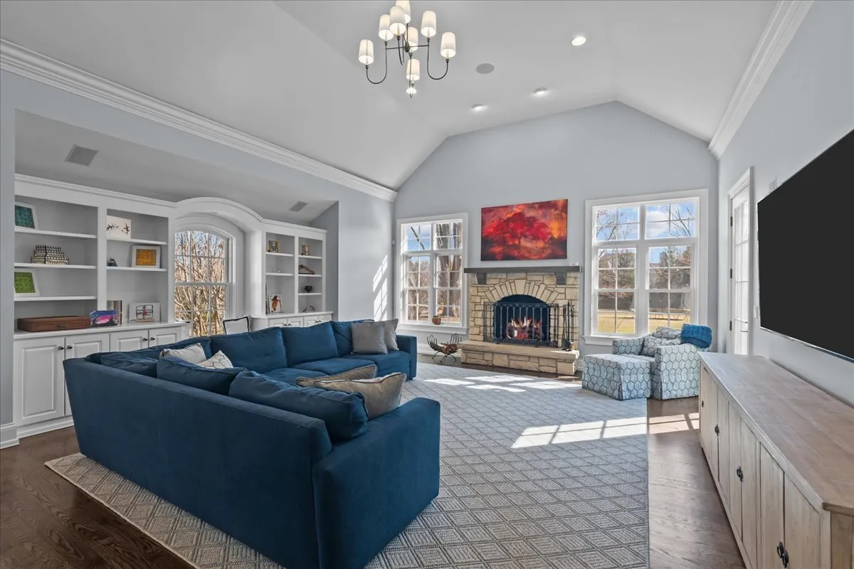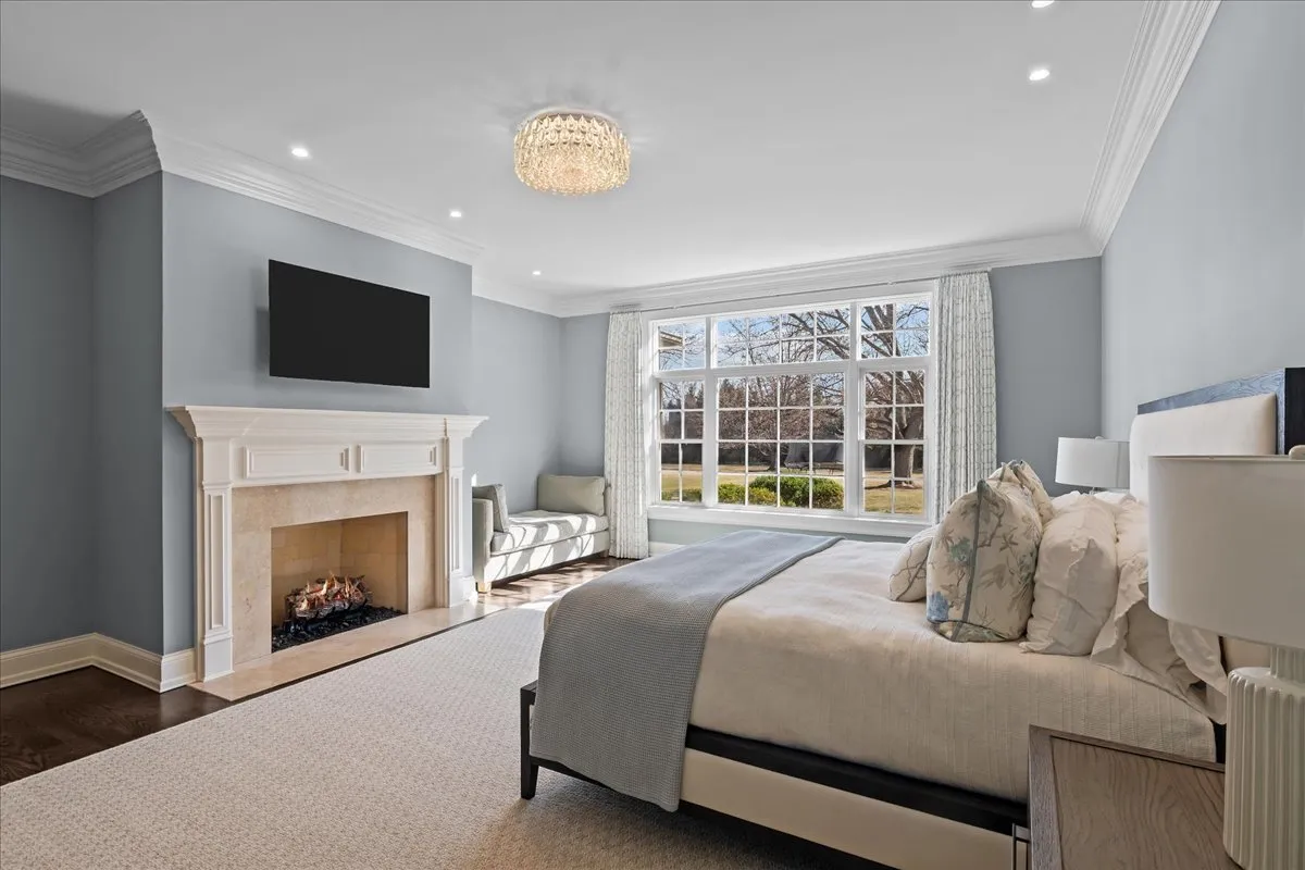 Tucked away at the end of a private lane, this stunning Southern Colonial-style home exudes timeless elegance and curb appeal. Built in 2005 and extensively renovated by the current owners, the home sits on over 2 meticulously landscaped acres, and features 5 bedrooms, 5.2 bathrooms, a 4-car heated garage, and a brand-new cedar shake roof. Upon entering through the charming front porch into the grand foyer, you will be immediately impressed by the soaring ceilings, gleaming hardwood floors, exquisite millwork, designer light fixtures, and beautiful design. The first floor is ideal for entertaining, with spacious rooms that include a beautiful living room with a fireplace and built-ins, a formal dining room, a grand family room with vaulted ceilings, a fireplace, and a wet bar, and a sunroom with panoramic views of the lush grounds. The heart of the home is the newly renovated chef’s kitchen, featuring a large center island with seating, professional-grade stainless steel appliances, a walk-in pantry, and a spacious breakfast room-perfect for everyday gatherings. The handsome, paneled library features a fireplace, coffered 14-foot ceilings, and French doors that access the back patio. The convenient first floor primary suite is a quiet retreat with fireplace, sitting area, dressing room, two large walk-in closets, and a spacious spa bath with heated floors. Upstairs, you will find 3 large ensuite bedrooms and a spacious lofted area, perfect for recreation or study. The phenomenal lower level extends the home’s living space with a large recreation room with fireplace, kitchenette, home gym, theater room, 5th bedroom, and full bathroom. Situated in a private yet convenient location with easy access to shopping, dining, and highways, this home offers the perfect balance of serenity and accessibility. With its blend of luxury, comfort, and privacy, this home truly offers the best of all worlds-making it the perfect sanctuary to call your own!