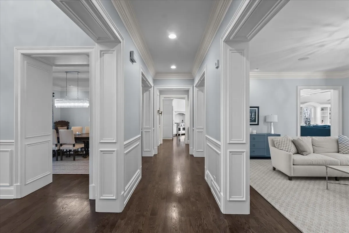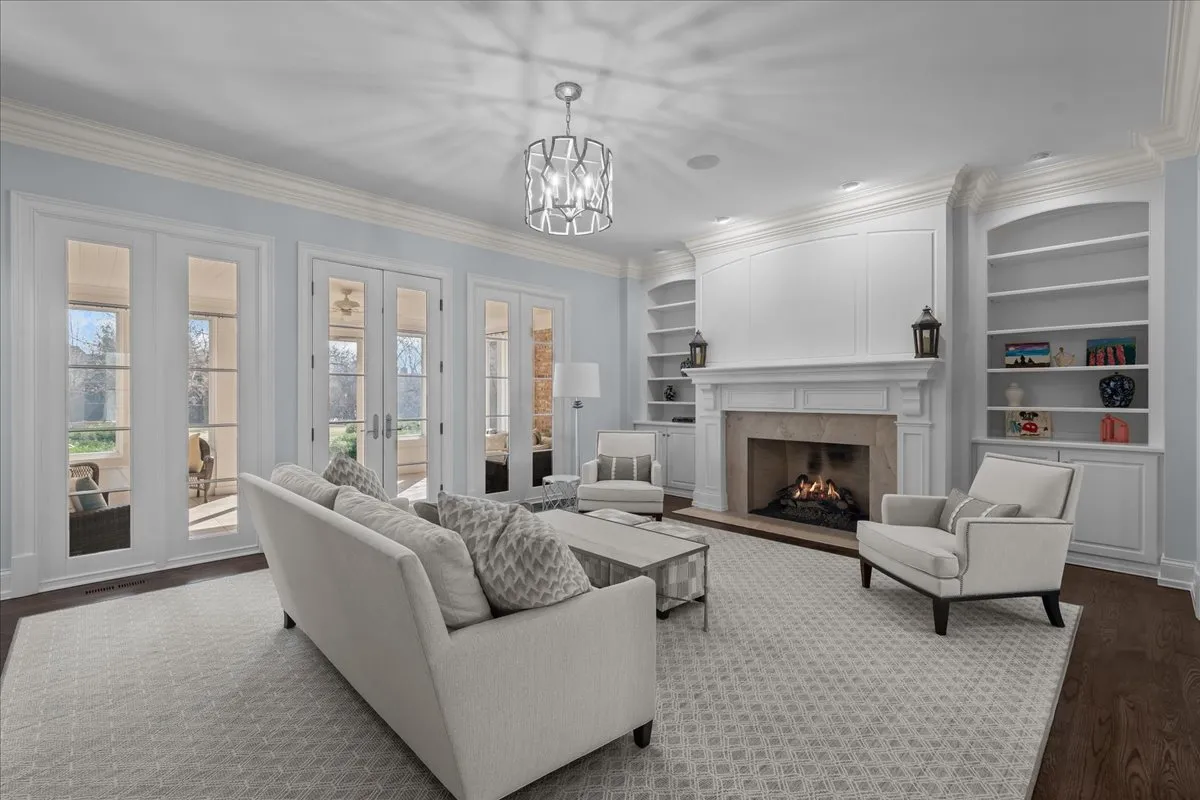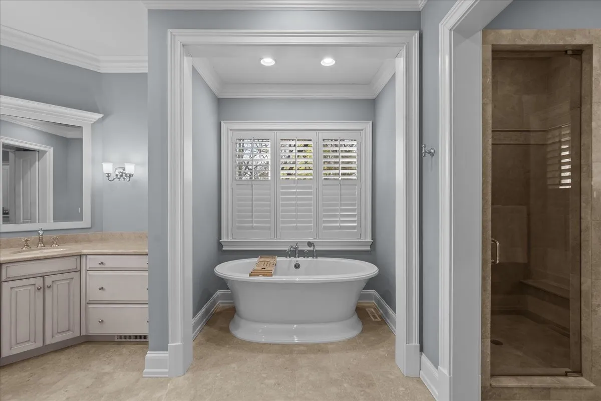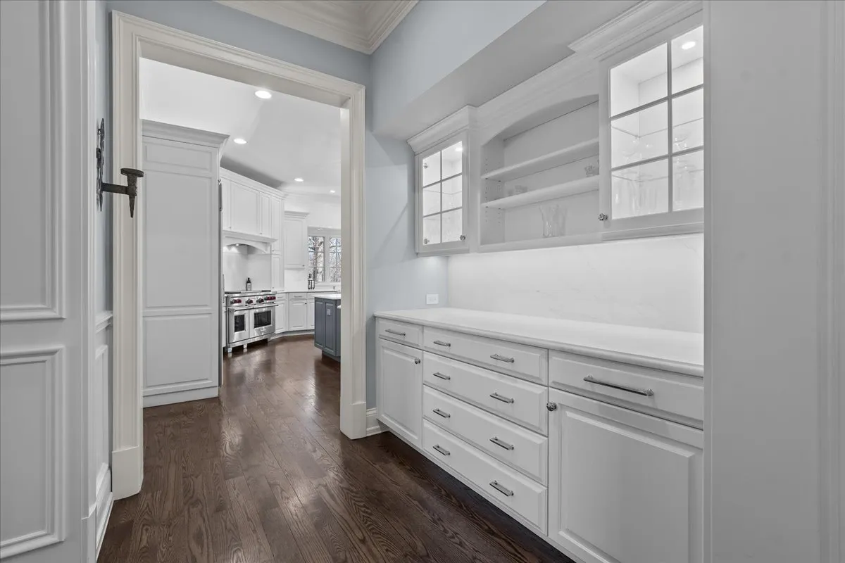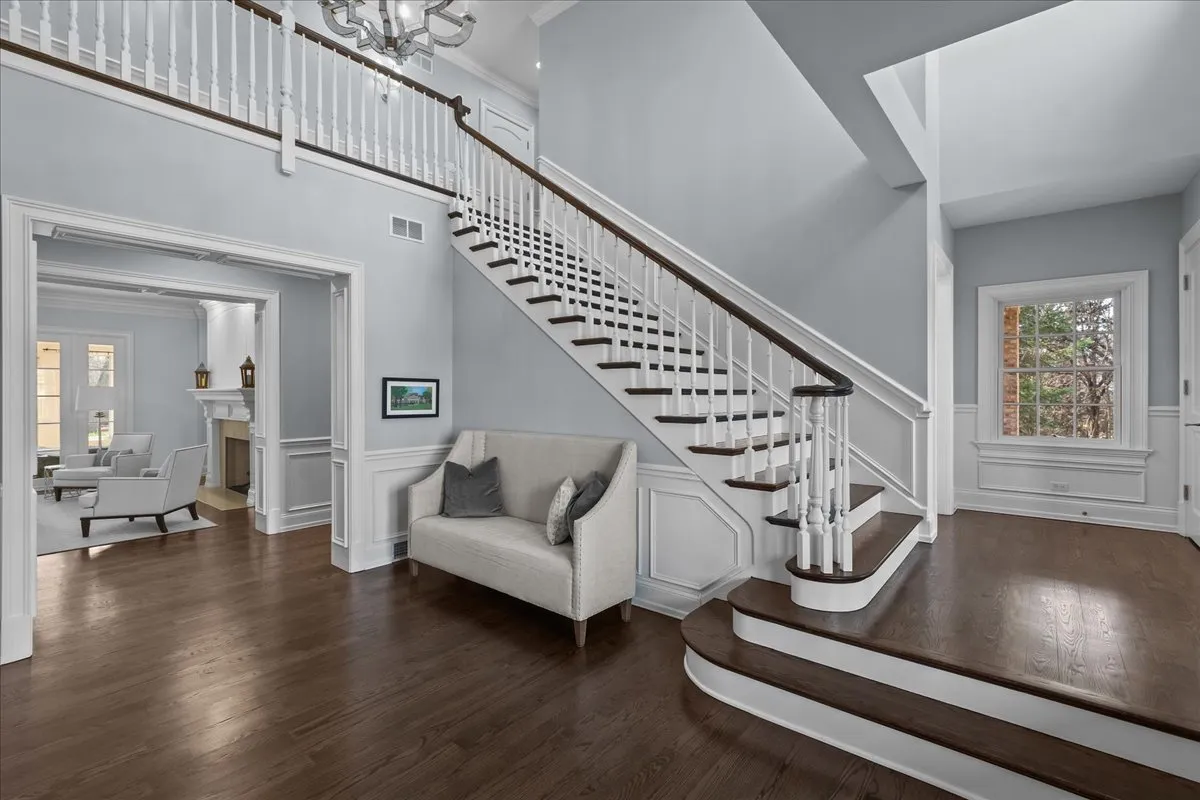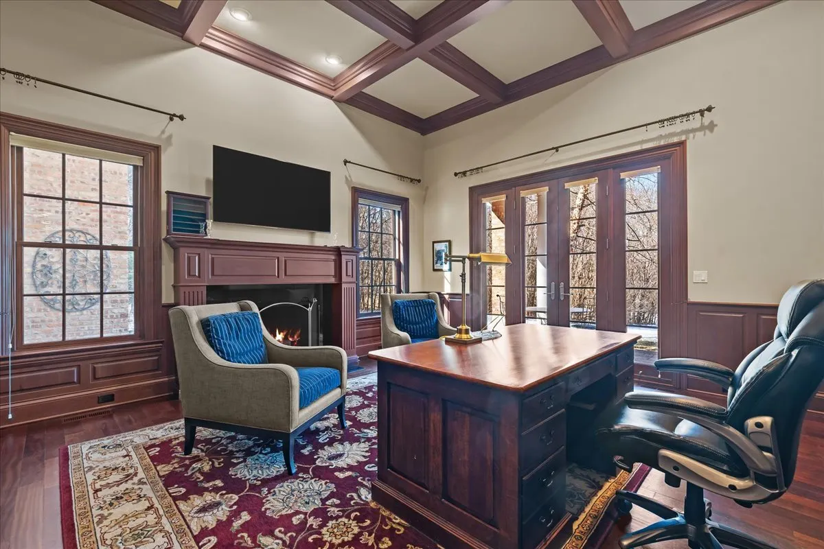 Tucked away at the end of a private lane, this stunning Southern Colonial-style home exudes timeless elegance and curb appeal. Built in 2005 and extensively renovated by the current owners, the home sits on over 2 meticulously landscaped acres, and features 5 bedrooms, 5.2 bathrooms, a 4-car heated garage, and a brand-new cedar shake roof. Upon entering through the charming front porch into the grand foyer, you will be immediately impressed by the soaring ceilings, gleaming hardwood floors, exquisite millwork, designer light fixtures, and beautiful design. The first floor is ideal for entertaining, with spacious rooms that include a beautiful living room with a fireplace and built-ins, a formal dining room, a grand family room with vaulted ceilings, a fireplace, and a wet bar, and a sunroom with panoramic views of the lush grounds. The heart of the home is the newly renovated chef’s kitchen, featuring a large center island with seating, professional-grade stainless steel appliances, a walk-in pantry, and a spacious breakfast room-perfect for everyday gatherings. The handsome, paneled library features a fireplace, coffered 14-foot ceilings, and French doors that access the back patio. The convenient first floor primary suite is a quiet retreat with fireplace, sitting area, dressing room, two large walk-in closets, and a spacious spa bath with heated floors. Upstairs, you will find 3 large ensuite bedrooms and a spacious lofted area, perfect for recreation or study. The phenomenal lower level extends the home’s living space with a large recreation room with fireplace, kitchenette, home gym, theater room, 5th bedroom, and full bathroom. Situated in a private yet convenient location with easy access to shopping, dining, and highways, this home offers the perfect balance of serenity and accessibility. With its blend of luxury, comfort, and privacy, this home truly offers the best of all worlds-making it the perfect sanctuary to call your own!