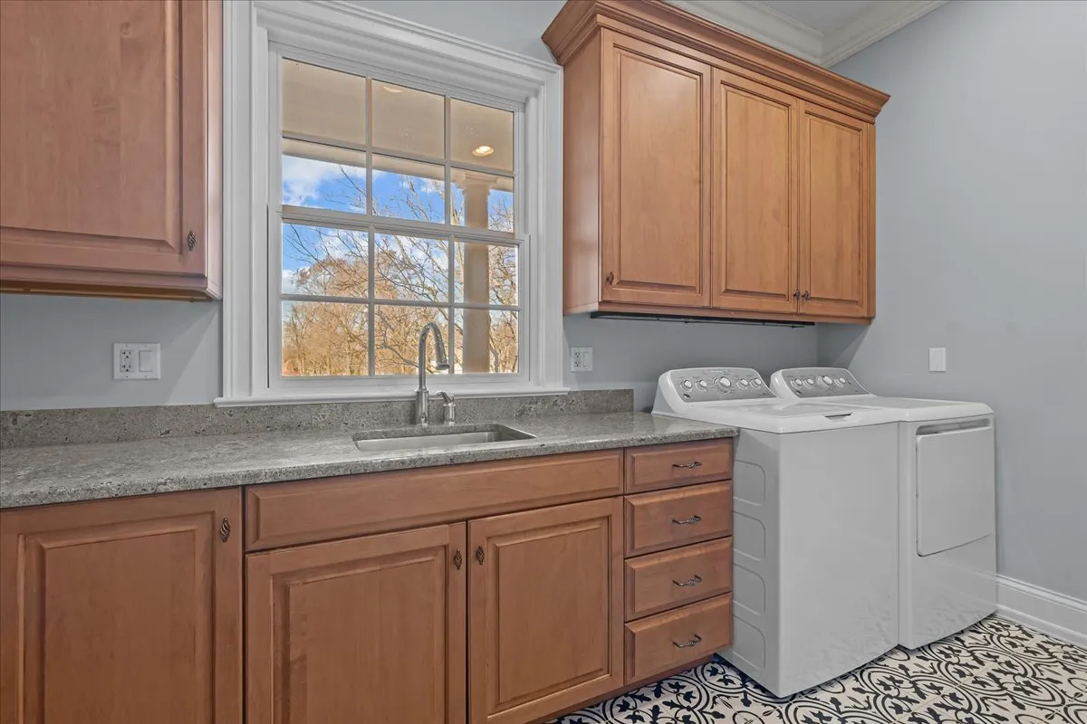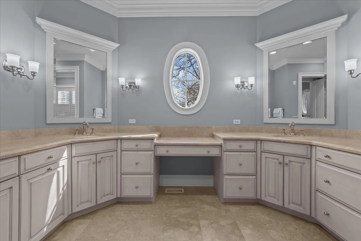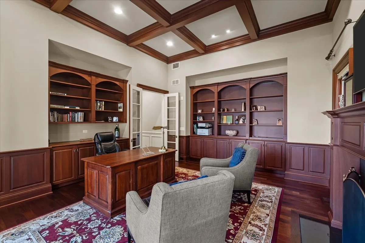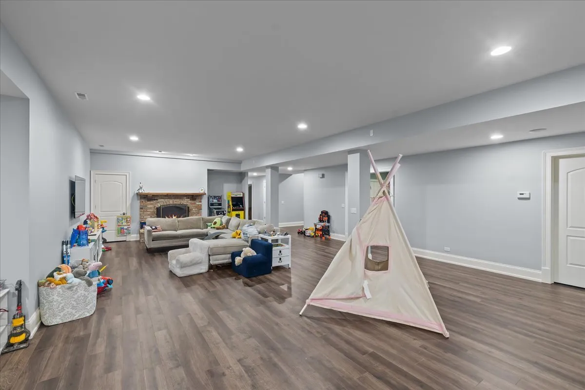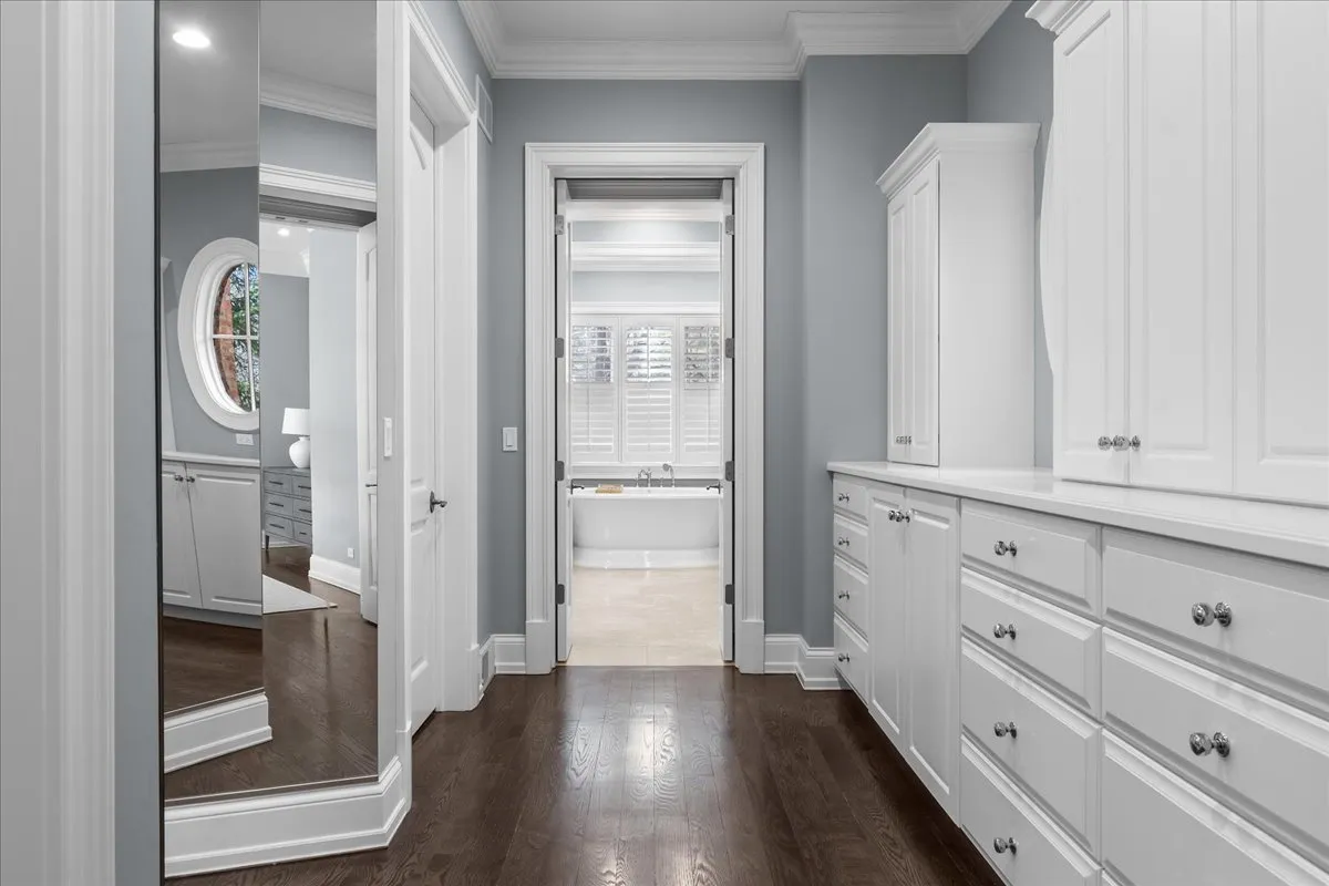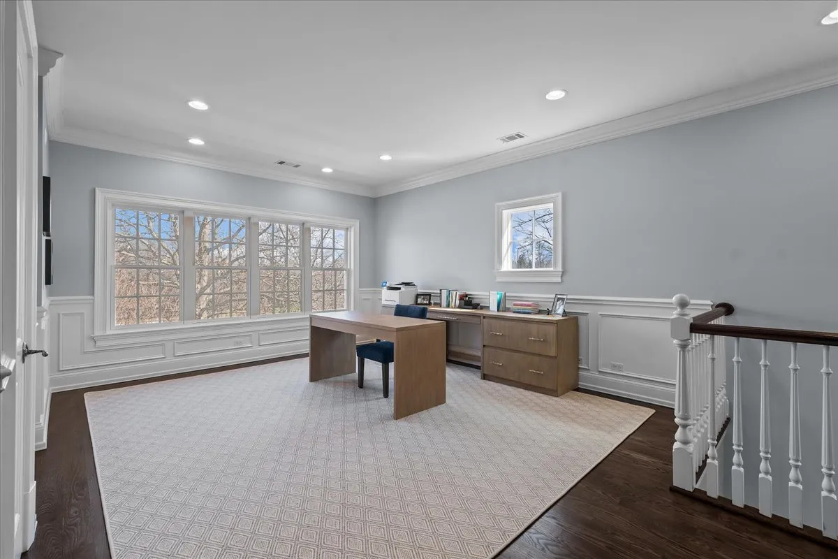 Tucked away at the end of a private lane, this stunning Southern Colonial-style home exudes timeless elegance and curb appeal. Built in 2005 and extensively renovated by the current owners, the home sits on over 2 meticulously landscaped acres, and features 5 bedrooms, 5.2 bathrooms, a 4-car heated garage, and a brand-new cedar shake roof. Upon entering through the charming front porch into the grand foyer, you will be immediately impressed by the soaring ceilings, gleaming hardwood floors, exquisite millwork, designer light fixtures, and beautiful design. The first floor is ideal for entertaining, with spacious rooms that include a beautiful living room with a fireplace and built-ins, a formal dining room, a grand family room with vaulted ceilings, a fireplace, and a wet bar, and a sunroom with panoramic views of the lush grounds. The heart of the home is the newly renovated chef’s kitchen, featuring a large center island with seating, professional-grade stainless steel appliances, a walk-in pantry, and a spacious breakfast room-perfect for everyday gatherings. The handsome, paneled library features a fireplace, coffered 14-foot ceilings, and French doors that access the back patio. The convenient first floor primary suite is a quiet retreat with fireplace, sitting area, dressing room, two large walk-in closets, and a spacious spa bath with heated floors. Upstairs, you will find 3 large ensuite bedrooms and a spacious lofted area, perfect for recreation or study. The phenomenal lower level extends the home’s living space with a large recreation room with fireplace, kitchenette, home gym, theater room, 5th bedroom, and full bathroom. Situated in a private yet convenient location with easy access to shopping, dining, and highways, this home offers the perfect balance of serenity and accessibility. With its blend of luxury, comfort, and privacy, this home truly offers the best of all worlds-making it the perfect sanctuary to call your own!