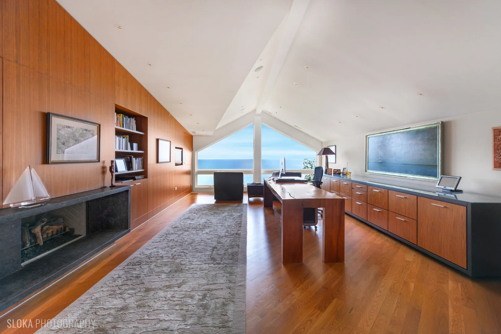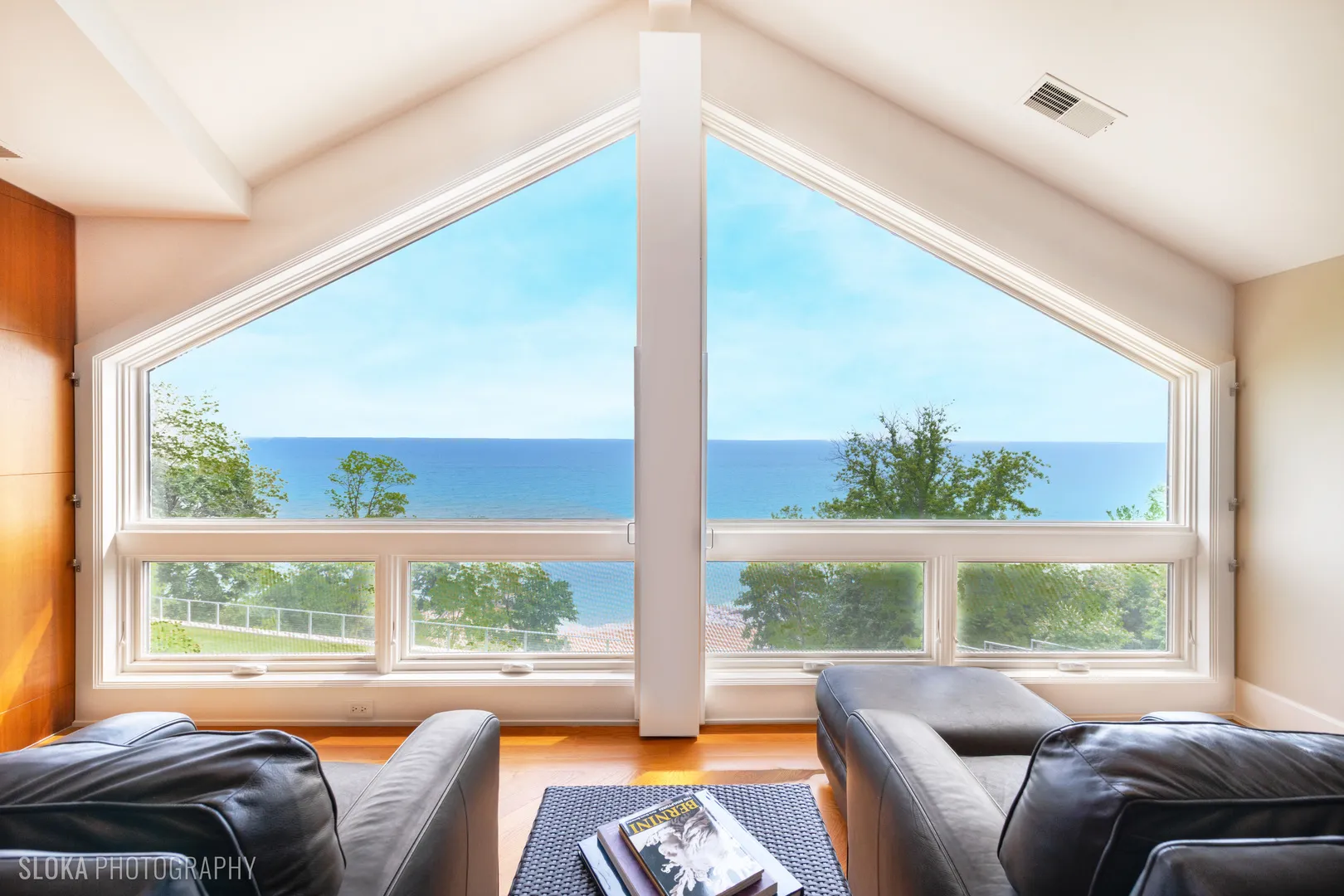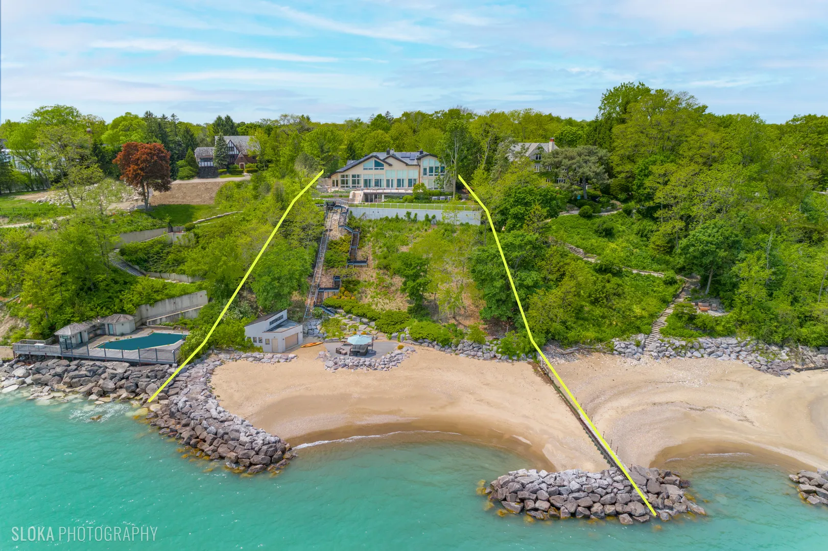 This extraordinary lakefront residence is the ultimate blend of luxury, comfort, breathtaking views and private beach. This sophisticated contemporary home boasts 9,749 square feet above-grade and an additional 4,434 square feet of finished lower-level space, all of which has been thoughtfully redesigned during a comprehensive renovation from 2006 to 2008. Every aspect of this dream property was touched, including interior design, windows, plumbing and electrical systems with all LED lighting (2024), complete home automation system (currently being updated), plus meticulous and extensive restoration of the beach, bluff and retaining wall system, to ensure years of worry-free enjoyment of the property. The crown jewel of this home is its 214 feet of pristine, sandy beach, accessible by the metal stairs (2020) or tram (2019), with its grandfathered-in and renovated deck and boathouse (2011), all protected by stone emplacements and breakwalls, precisely designed and installed during the significant rehab of the beach and bluff (2009, 2015). Step inside the spacious, 3 story high foyer to sweeping views of Lake Michigan through walls of floor to ceiling windows with UV protection gracing the large living and dining rooms, which share a show-stopper two-sided stone fireplace. The heart of the home is its gourmet kitchen boasting plentiful cabinet space, walk-in pantry, high-end appliances including 2 Bosch dishwashers, NEW Wolf induction cooktop, double ovens and warming drawers, and a huge island with granite waterfall countertops for prep-work, dining and serving. The kitchen also encompasses a lovely breakfast area overlooking the lake plus space to relax or watch TV in the welcoming family room. Walk out to the serene backyard with built-in grill and sink. Other main floor highlights include: three en-suite bedrooms (including original primary suite), private office with built-ins, a dedicated dog spa room with laundry and access to the enclosed dog run, front and back staircases to second and lower levels, 2 powder rooms, laundry room, extensive closet and storage space AND an elevator with child space guards servicing all four levels. The second-floor primary suite occupies its own private wing, providing a peaceful retreat with stunning lake views, beautifully appointed, luxurious bathroom, separate workout room, and expansive closet area complete with island and an abundance of closed cabinetry for clutterless storage. The third floor, 2nd office has a fireplace and magnificent, endless views of the lake – you’ll never want to leave! Head down to the walkout lower-level to find an entertainer’s dream, featuring flexible spaces for a variety of purposes – current uses include home theater, billiard room and yoga/play areas. Other basement highlights include: full second kitchen; spa with steam room, shower and jetted tub; plentiful storage; second laundry room; lovely, serene sunroom which leads to the expansive backyard with flat table land and, of course, lake views. Heated 3 car garage with epoxy floor and two 220 volt outlets for EVs. Keyth security system; copper roof with solar panels; fire suppression system; irrigation system. No detail was overlooked and no expense spared in crafting this stunning home where elevated design meets effortless beauty.There is nothing fussy about 55 South Deere Park; it awes with its quiet sophistication. This is a residence in which to surround yourself in luxury while basking in the most coveted views.