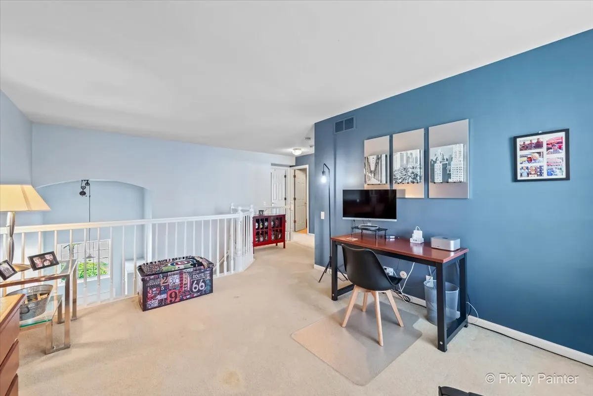 This inviting 2-bedroom, 2.5-bath townhome offers comfort, space, and potential in every corner. Step into an open-concept main floor featuring a spacious living and dining area filled with natural light. Upstairs, you’ll find two generously sized bedrooms, including a primary suite with a private full bath and large closet. A versatile loft space offers endless possibilities – use it as a home office, playroom, or convert it into a third bedroom if needed. An additional full bathroom upstairs and a guest half bath on the main floor provide added convenience. The full unfinished basement offers tons of storage and awaits your finishing touches. Located close to parks, schools, shopping, and major highways. (2025) New AC, Microwave and Garage Door Opener (2022) New roof and gutters replaced by HOA (2016) new furnace which is serviced annually