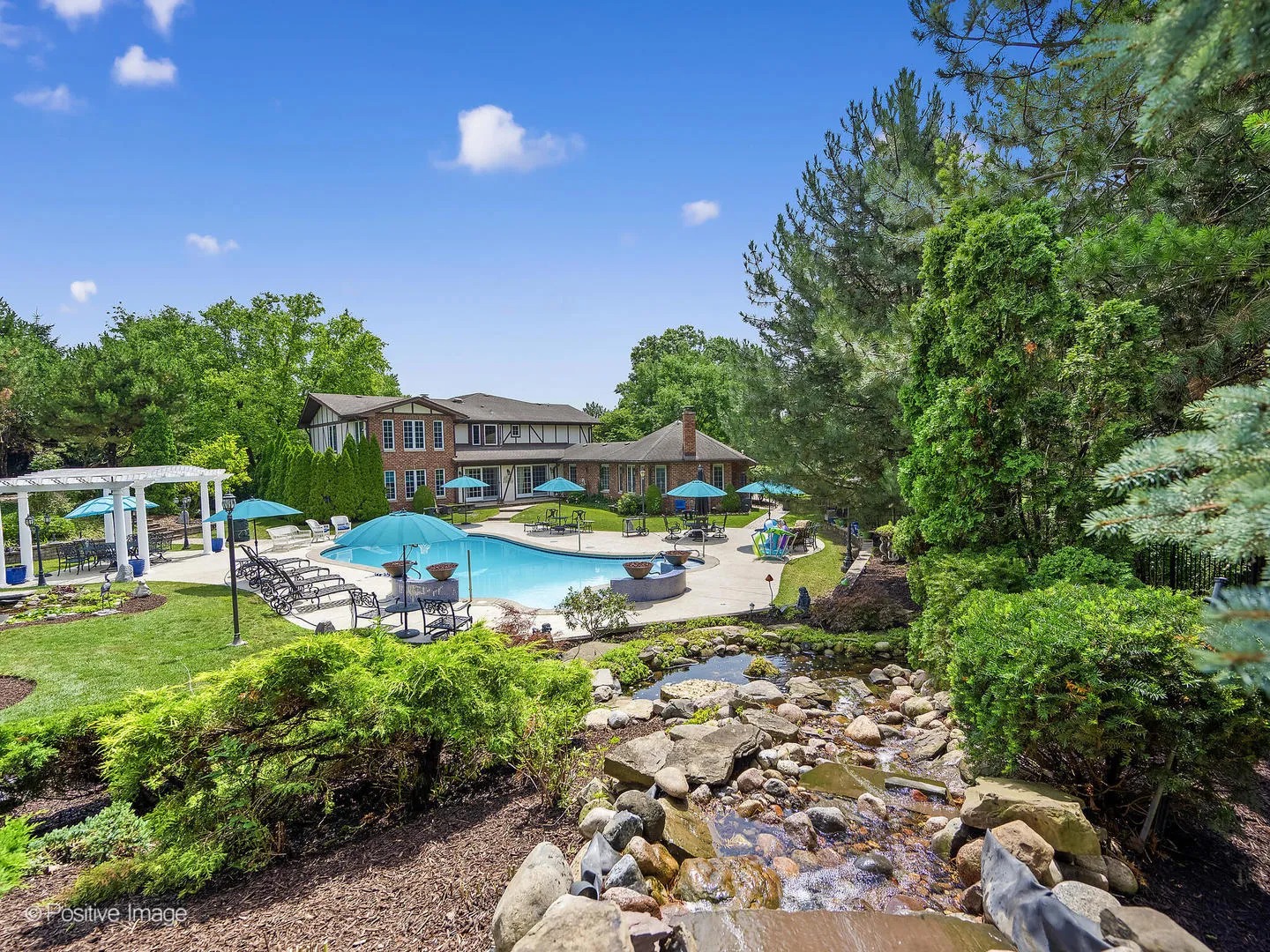***Multiple offers received, highest and best offers due Thursday, 7/24 no later than 11:00am*** Tucked away at the end of a quiet cul-de-sac and set on over an acre of professionally landscaped grounds, this exceptional 4-bedroom, 4.1-bath estate offers the perfect blend of elegance, space, and resort-style living. From the moment you arrive, the stately front porch, tranquil fountain, and manicured gardens create a welcoming first impression and set the tone for this one-of-a-kind Oak Brook residence. Inside, the foyer opens to beautifully appointed formal Living and Dining Rooms, complemented by a Butler’s Pantry and Bar-ideal for vibrant entertaining. Rich American Cherry hardwood floors flow throughout the main level, adding warmth and sophistication. Work comfortably from home in the executive office with coffered ceiling, or easily convert this versatile space into a first-floor primary suite. At the heart of the home, the gourmet kitchen features granite countertops, abundant cabinetry, a large island with breakfast bar, and a walk-in pantry. It seamlessly connects to a casual dining area and an expansive Family Room with a cozy fireplace and sliding glass doors that lead to the backyard. Convenience is key, with laundry rooms located on both the main and upper levels. Upstairs, the luxurious primary suite is a true retreat, complete with a serene sitting area and an expansive custom California Closet that elevates walk-in storage to a new level. Each additional bedroom is generously sized and outfitted with custom California Closets, ensuring comfort and privacy for every member of the household. The 5th bedroom could easily be converted to a den or study. The finished basement adds functional space with a dedicated office featuring built-in bookshelves, a double desk, and ample storage. Step outside to your private backyard oasis-three fully fenced areas offer lush green space, a charming pergola, and breathtaking waterfalls that cascade into a sparkling, oversized heated pool. Complete with LED lighting, a diving board, and an inviting jacuzzi, this space is ideal for summer entertaining or peaceful evening retreats. Additional highlights include a playground, a heated 3-car garage, and numerous custom upgrades throughout. More than just a home, this is a lifestyle. Don’t miss the opportunity to own this extraordinary Oak Brook estate!