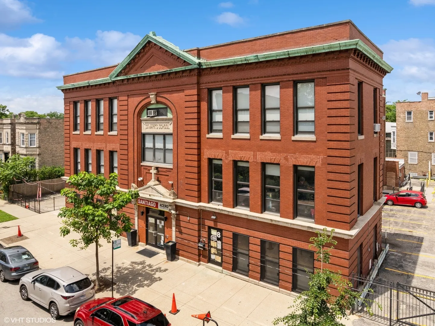 The subject consists of 14 platted lots roughly 180’x265 including a vacated alley that runs parallel to Thomas and Cortez. The parcel is improved with a high, one-story church built in 1962 with 22′ clear ceiling height. (The church is built on top of portion of the vacated alley); a vintage, 2 1/2 story, greystone rectory and a beautiful & solid, two-story, school. The school is occupied and leased until 2026. This parcel is the block-end of W. Thomas St., N. Campbell Ave & W. Cortez St. which allows for so much exterior light quite a bright spot in a high-demand area improved mainly with 100+yo two & three-flats and single-family homes with much in-fill construction as well as property renovation activity in the West Town Community Area on Chicago’s near NW side – adjacent to Wicker Park, Humboldt Park & Ukrainian Village neighborhoods. The site is also zoned favorably in the RT4 class allowing 48 units.
