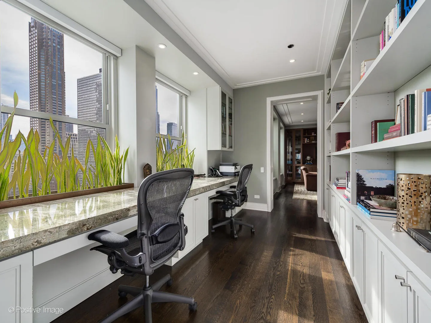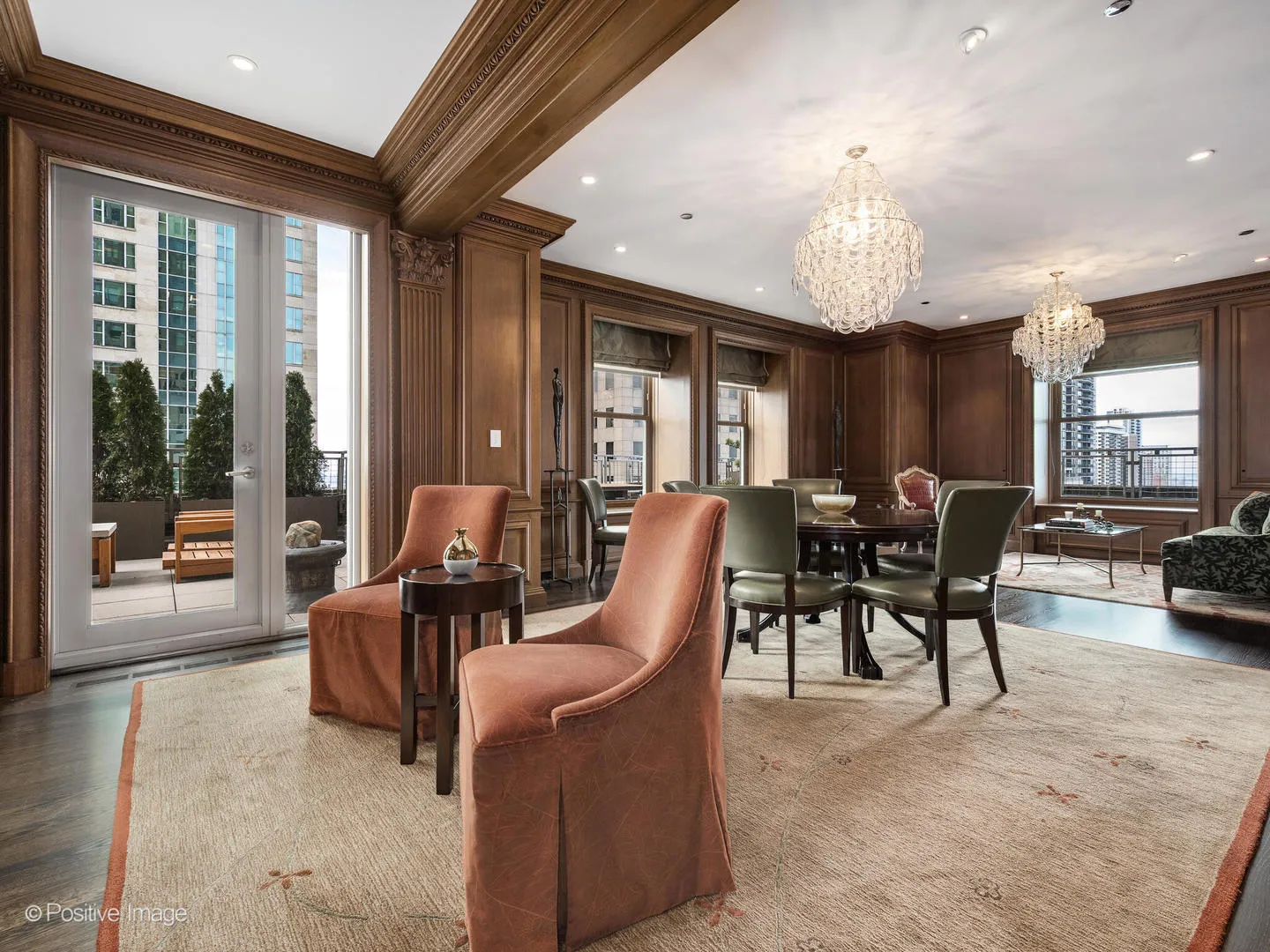 This exquisite, one-of-a-kind half-floor home at the iconic Palmolive offers luxurious living and is one of only five homes in the building with outdoor space. This phenomenal home boasts nearly 5,000 square feet of interior living space with an additional 1,600 square feet of magnificent terrace space with extraordinary city and lake views. The floorplan is exceptional and offers direct access to the terrace from the kitchen, living and dining room, as well as from the guest suite. Incredible design, detail and the highest quality finishes can be found throughout the home including gorgeous wide-plank oak flooring. Impressive double doors lead into the grand foyer. Beyond the foyer is an enormous, inviting living room and dining room/salon flanked by a dual-sided fireplace, and is perfect for entertaining and hosting dinners. Gorgeous original moldings and millwork are highlights of the space. The chef’s kitchen is outfitted with Wolf, Miele, and Sub-Zero appliances, including a double oven and separate wine refrigerator. Additionally, the kitchen features amazing storage and a large eat-in area with direct access to the terrace, making it ideal for grilling. Wake to sensational views of the lake from the gracious primary suite that can accommodate a comfortable sitting area and desk. The spa-like marble primary bath features a deep soaking tub with picture window looking out at the lake above, a large walk-in shower, as well as dual vanities. Two additional ensuite bedrooms are perfect in size and offer generous closet space. An elegant study with built-ins and an adjacent custom built office area, a spacious laundry room with abundant storage, and a beautiful marble powder room complete this fabulous city home. The Palmolive provides exceptional services, including 24-hour door staff, onsite manager, concierge, and engineer, a fully equipped fitness center, a whirlpool and steam room, as well as the Beacon Club room for entertaining. The building has an onsite garage with valet parking and the right to two car parking is included. Enjoy everything the Gold Coast and Magnificent Mile has to offer including world class shopping and dining.
