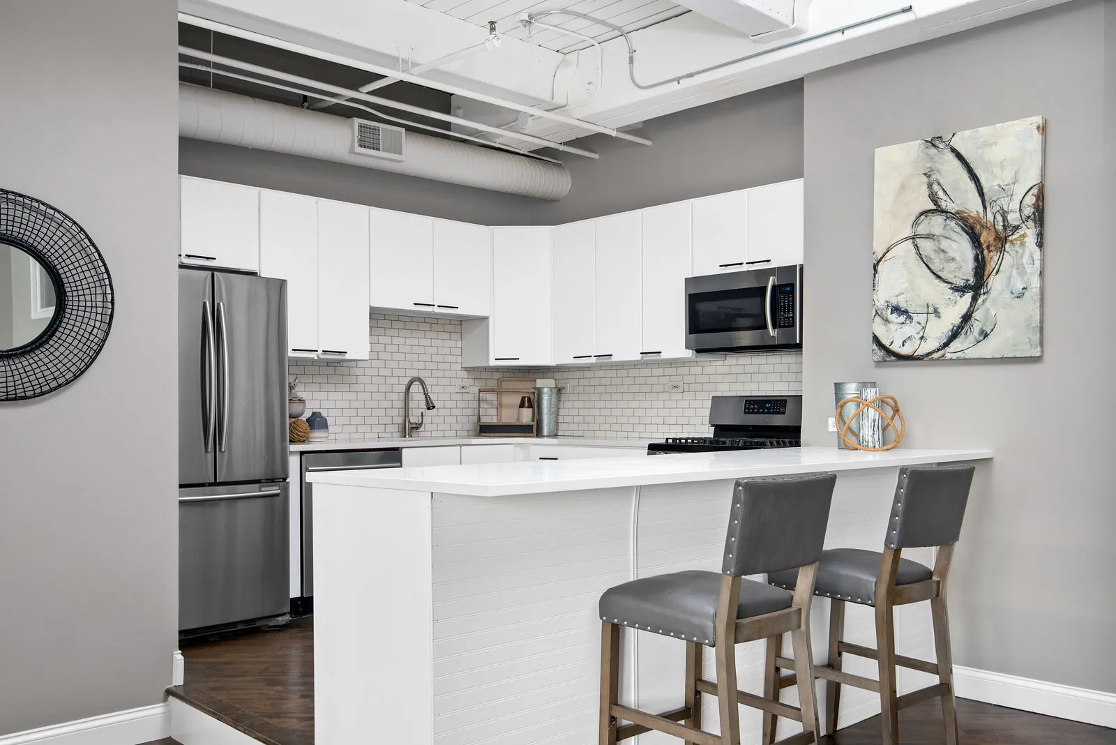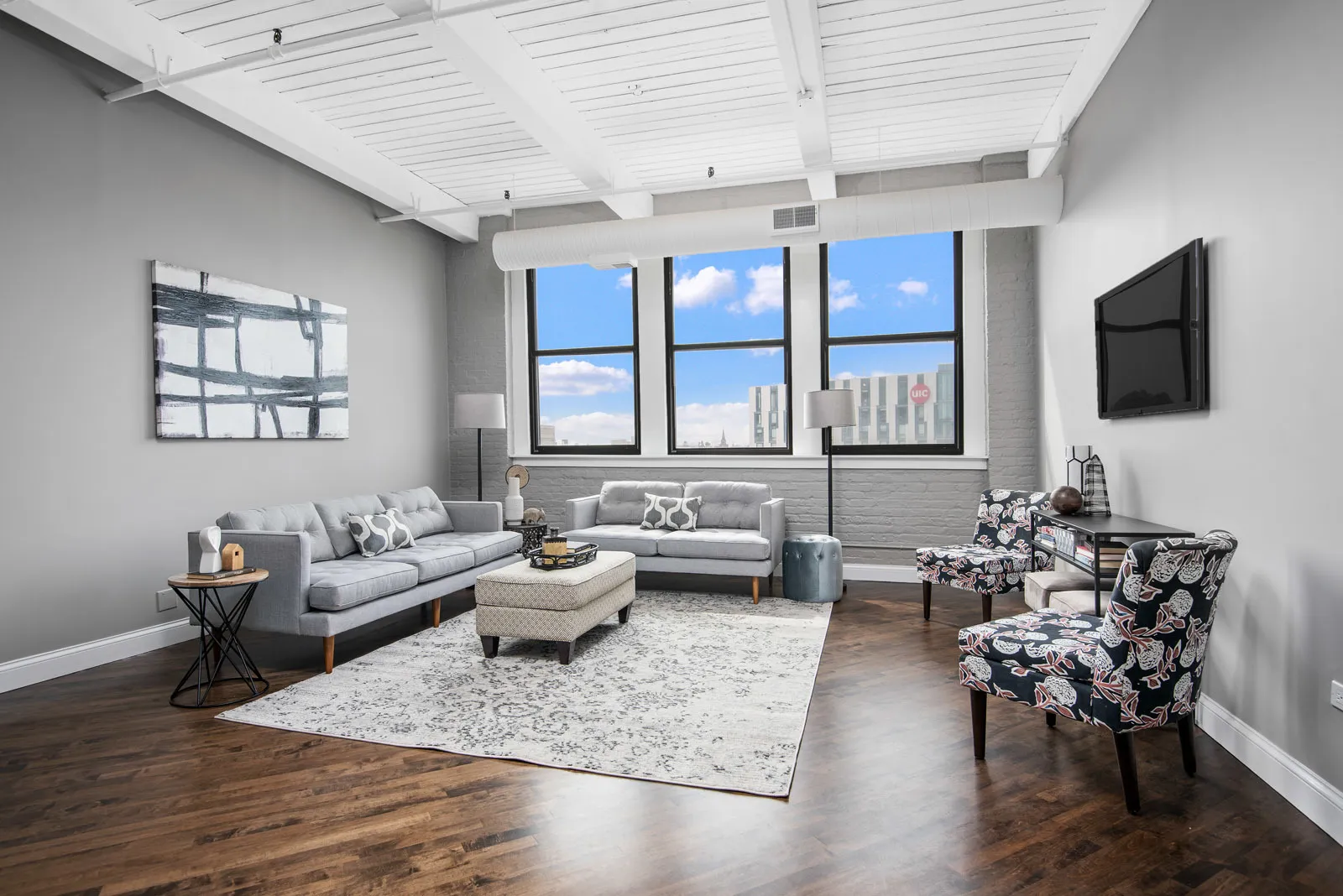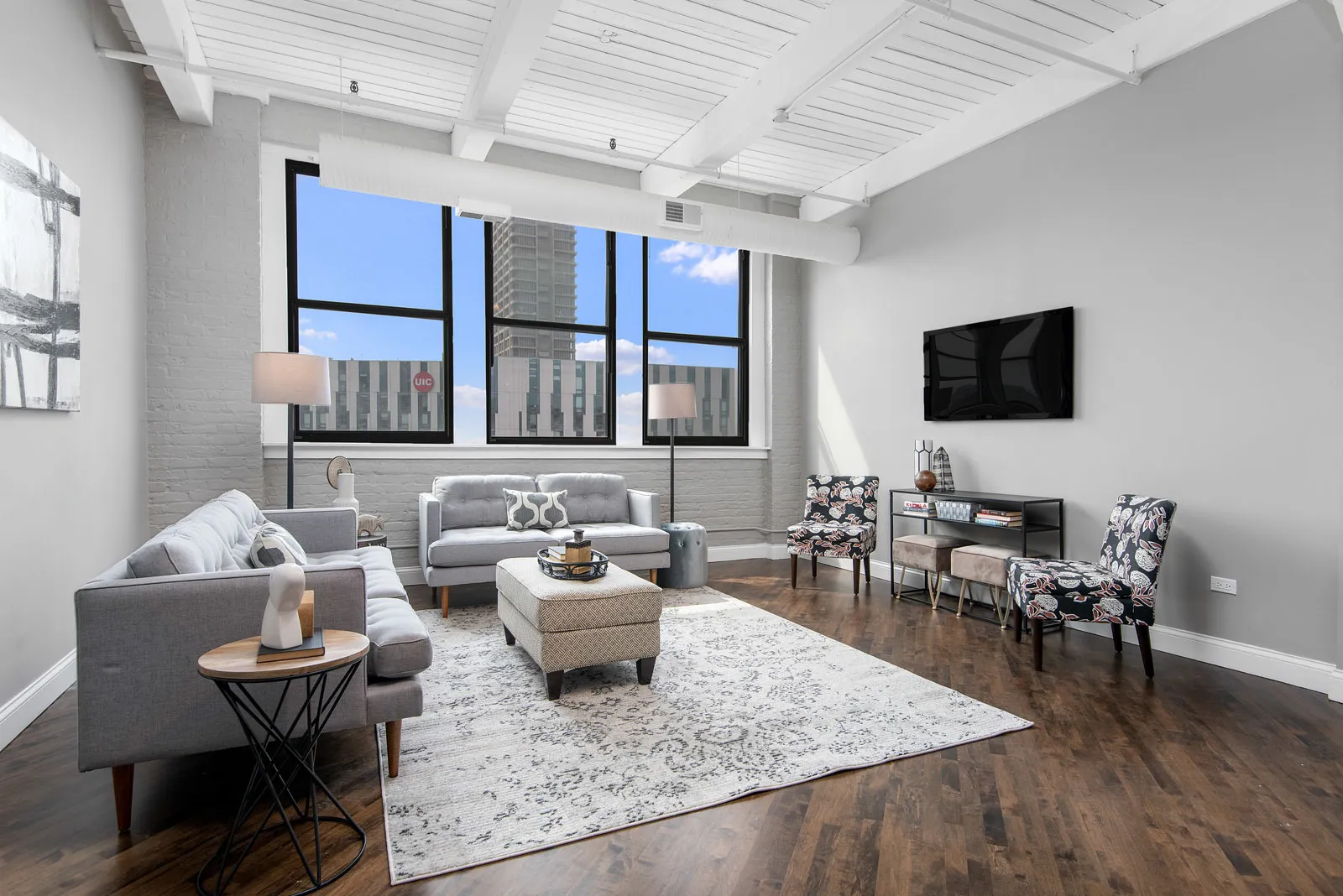 Gorgeous recently renovated 3 bed 2 bath timber loft condo in a former warehouse converted to jaw dropping condos. Amazing walk to it all location in the West Loop! This south facing sunny condo has an open concept split level floor plan, an extra wide 30 foot interior, white timber loft ceilings, exposed painted brick & 11 foot ceilings making it an airy retreat in the city. Huge dining area fits a table for 10-12 w/ large living area & big renovated kitchen w/ island; perfect for entertaining. All 3 bedrooms are fully enclosed & huge; easily fitting queen/king beds; 2 have large walk in closets. Master suite fits king bed, has a huge walk in closet & spa like bath w/dual sinks & walk in shower. Formal entryway w/coat closet. Walk to Loop, UIC, Greektown, Soho House, parks, shopping, Randolph St. restaurants, Whole Foods, Blue El, & more. In-unit W/D. Elevator bldg. Available NOW! There is no onsite parking but there is garage rental parking nearby.