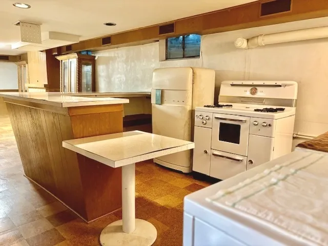 Mostly all brick ranch- with three bedrooms, 2 1/2 baths, full basement with a second kitchen and additional fireplace. Could be perfect for multi-generational living! Great eat-in kitchen with addition that can be used as a den or dining room, large living room with beautiful stone fireplace! 3 generous-sized bedrooms, hardwood under carpeting on first floor! Gorgeous backyard, 3/4 fenced in! This property has been well taken care of and is ready for your updates. Beautiful hardwood floors under carpeting. Carpets were not tacked down! Loads of storage, pride of ownership! Come see this great home! Estate Sale being sold “As-Is.”