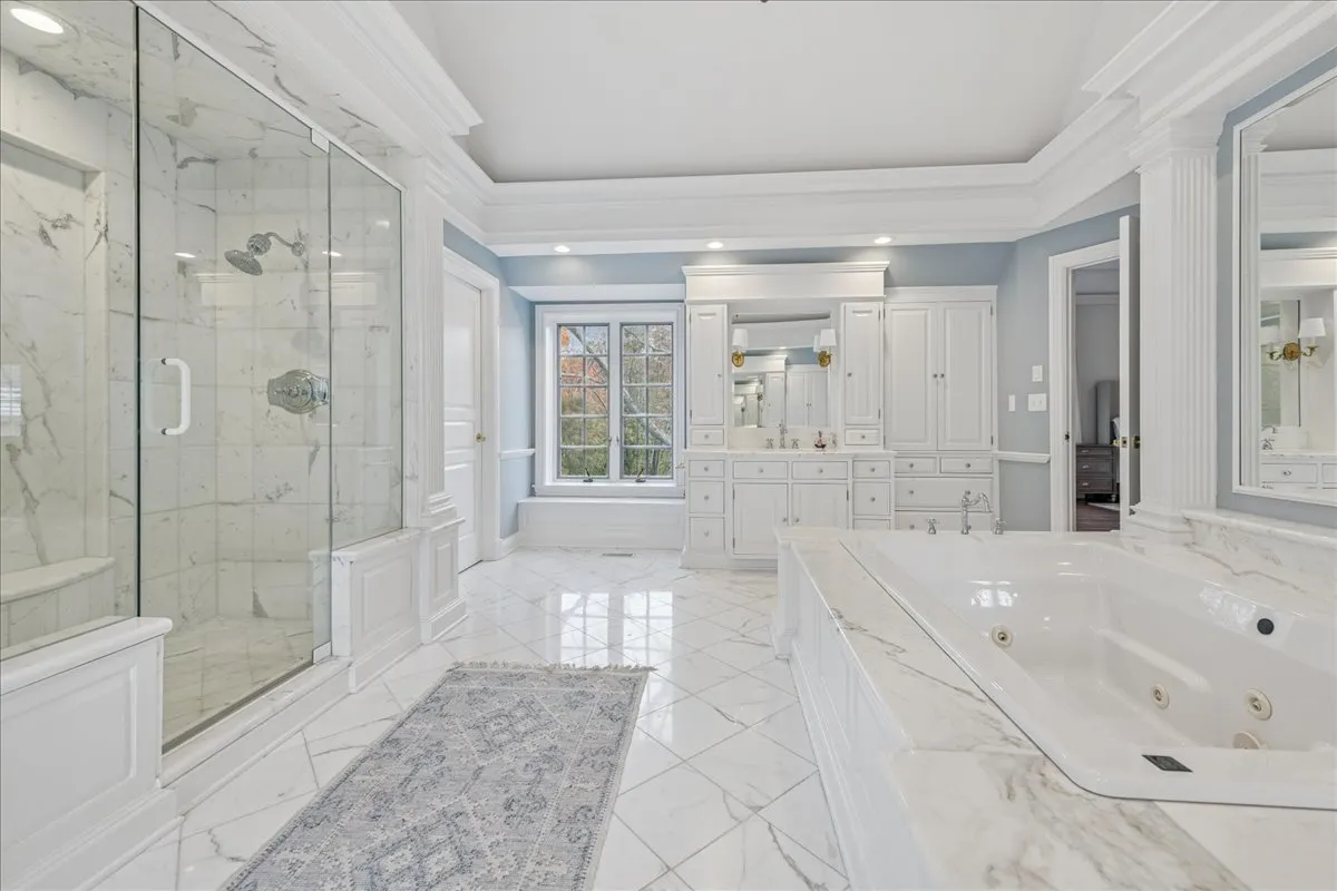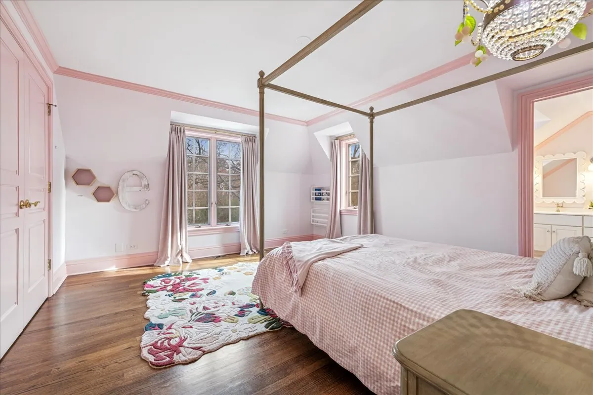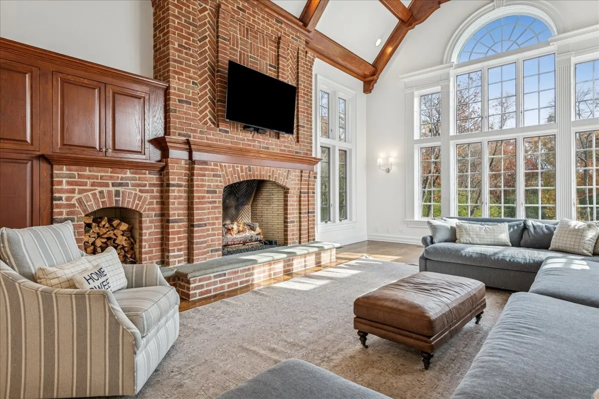 Luxurious, sophisticated, and timeless, this magnificent Barrington Hills estate is perfectly sited on a premier 5-acre waterfront setting-offering sweeping views, extraordinary privacy, and exceptional craftsmanship throughout. Custom millwork, arched passageways, gleaming hardwood floors, and five fireplaces create an atmosphere of warmth and refinement, while the home’s flowing, light-filled layout invites effortless indoor/outdoor living. A grand two-story foyer with a curved staircase sets an elegant tone, revealing beautiful sightlines to the rear grounds. Formal living and dining rooms are complemented by a well-appointed butler’s pantry with wet bar-ideal for hosting with ease. The striking great room impresses with soaring beamed cathedral ceilings, a dramatic brick fireplace, and an inviting, rustic-chic ambiance perfect for intimate gatherings. The newly renovated chef’s kitchen is a true showpiece with custom inset cabinetry, quartzite counters, an oversized island with breakfast bar, high-end Thermador appliances, and a walk-in pantry. The adjoining breakfast room, wrapped in windows and featuring a charming bay window seat, frames picturesque views. Step directly outside to the bluestone patio and covered grilling station for seamless al fresco dining. A richly appointed main-floor library with cherry built-ins offers a quiet retreat or refined work-from-home space, conveniently located near a full bath. A spacious laundry room, mudroom with service entrance, rear staircase, and powder room complete the main level. Upstairs, the craftsmanship continues with a luxurious primary suite featuring a cozy fireplace, spa-like bath with whirlpool tub, glass door shower, and dual walk-in closets. Three generously sized secondary bedrooms-one ensuite and two sharing a Jack-and-Jill bath-along with a nursery or second office provide exceptional flexibility. A private guest wing enhances the home’s versatility with its own living room, full kitchen, and ensuite bedroom, making it ideal for in-laws, long-term guests, or nanny. The expansive walkout lower level delivers even more living and entertaining space with a large recreation area, second kitchen, dining space, and direct access to the bluestone patio. A dedicated media/theater room, game or fitness room, wine cellar, half bath, and ensuite bedroom round out this impressive level. A heated 4-car garage with epoxy flooring, plus a large carport, accommodates guests and gatherings with ease. Multiple terraces, blue stone patios and pathways invite you to savor tranquil views of the pond and natural surroundings in every season. Meticulously maintained and thoughtfully updated, this remarkable estate offers a rare blend of beauty, privacy, and convenience-just minutes to town, train, riding trails, shopping, dining, and award-winning District 220 schools.