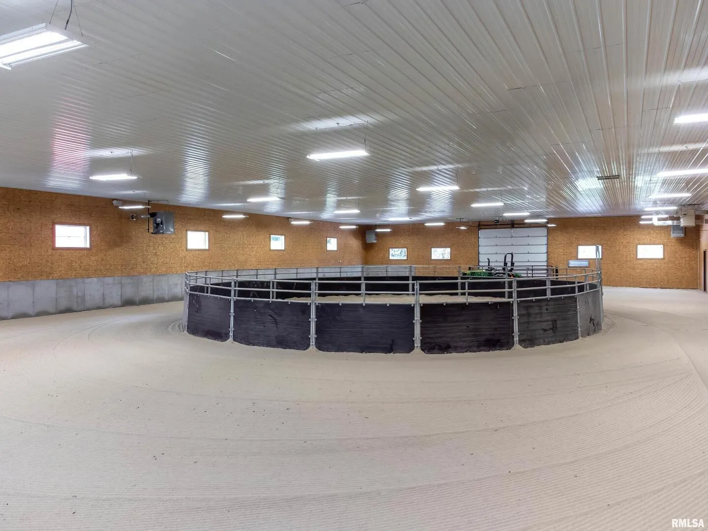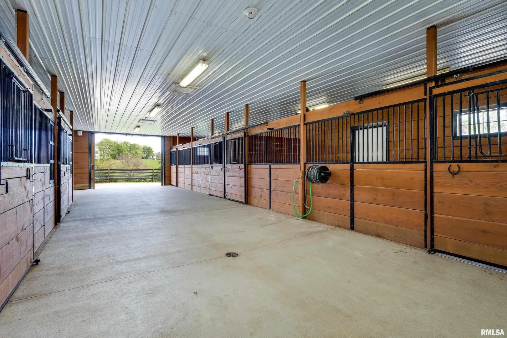 Amazing horse farm and hunter’s paradise in Port Byron featuring 80 acres of rolling hills with creek! Various prairie grasses combined with the wooded areas along the creek, create an ideal habitat that supports deer, turkey & quail. Main building completed in 2014 consists of “barndominium” with attached horse stall barn. Living quarters have radiant floor heat, full kitchen, living room with gas fireplace, main level primary bedroom suite; upper-level bunk room with loft area, 4 queen size built-in bunk beds and bunkroom style bathroom – 3 sinks, 2 toilets & 2 showers. There is also an office , laundry room and bar area. The attached horse barn features 12 stalls with automatic waterers in each stall, wash stall, tack room, laundry room and feed area. There is also an 80×160 heated indoor riding arena with center 50′ diameter round pen, indoor/outdoor 8 run dog kennel with radiant floor, heated workshop/garage/barn with attached drive through (12′ wide) lean-to, Quonset style barn with new concrete floor & garage doors, and 3-sided metal storage shed. There are 6 separate fenced horse pastures each with heated automatic waterer, 16′ wide gates and 5 have run-in sheds. Additional features include geothermal heating & cooling, camera system in stall barn, well water with water treatment system, two septic systems, back-up generators, buried propane tanks, driveway security gate, RV electrical outlet, air exchangers, and fiber optic lines for cable/internet services.