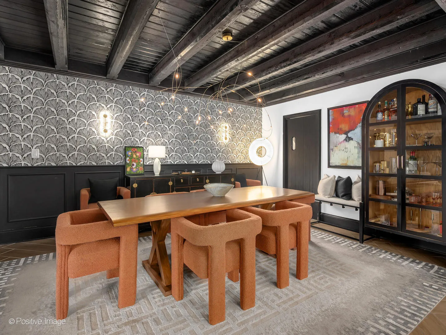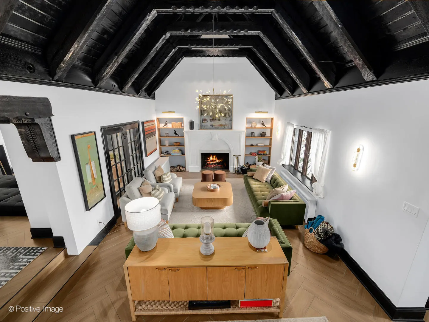 Storybook curb appeal meets magazine-worthy interiors in this extraordinary Cotswold-inspired, Zook designed Elmhurst residence, where timeless European architecture and bold modern design blend seamlessly throughout. From the snow-kissed brick and stone exterior with dramatic rooflines, decorative half-timber detailing and rare detached matching garage to the impeccable curated interior spaces, this home delivers irreplaceable character with elevated style at every turn. Inside the breathtaking main living room features exposed dark wood beams, sculptural statement chandelier, and stunning custom marble fireplace flanked by built-in bookcases. Layered textures, refined symmetry, and walls of natural light create a dramatic yet welcoming centerpiece ideal for both everyday living and unforgettable entertaining. A secondary lounge/family room offers a relaxed media and gathering retreat that can accommodate sectional seating and custom built-ins, flowing effortlessly into the formal dining room. This space features bold designer wallpaper and lighting, ceiling beams, custom millwork creating a setting built for memorable gatherings. The fully redesigned kitchen is a true showstopper, showcasing soft sage custom cabinetry, striking marble countertops and backsplash, premium appliances, designer pendants and an oversized workstation sink with sleek black faucet. A sun filled breakfast nook with custom built-in seating offers charming garden views and the perfect spot for morning coffee or casual meals. The main level is completed with a 1st floor bedroom and adjacent mudroom with plenty of built-in cabinetry and storage plus a designer powder room. A dramatic foyer features the turned staircase with rich wood treads and newer wooden railings invites one to explore the upper levels. The primary suite is a luxurious private retreat featuring expansive proportions, dramatic accent wall, custom window seating and boutique hotel ambiance. The spa-inspired primary bath offers a stunning walk-in marble shower with niche shelving, refined vanity and luxe finishes. Additional bathrooms throughout the home continue the elevated design with floating vanities, statement tile and custom lighting. Secondary bedrooms are generously sized and filled with charm and sunlit garden views. A beautifully appointed home office or studio offers a quiet, light-filled workspace ideal for today’s lifestyle. Outdoors the private courtyard patio with checkerboard stone flooring provides a rare European-inspired entertaining space perfect for dining al fresco or quiet mornings under the trees! Set on a picturesque, tree-lined street in one of Elmhurst’s most desirable neighborhoods this exceptional residence delivers architectural distinction, thoughtful design, and true statement-home presence rarely seen in today’s market. This is a forever home with soul.