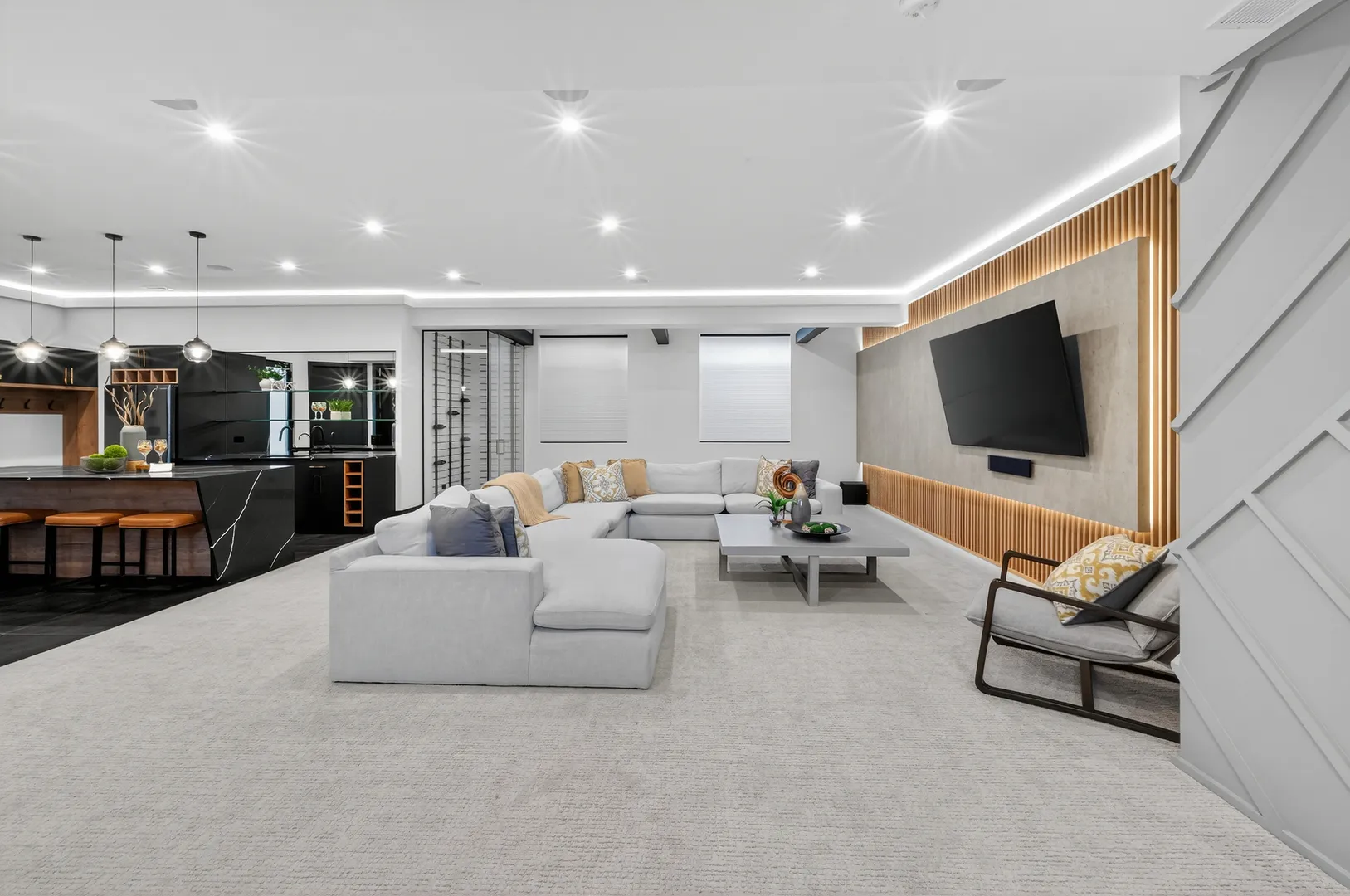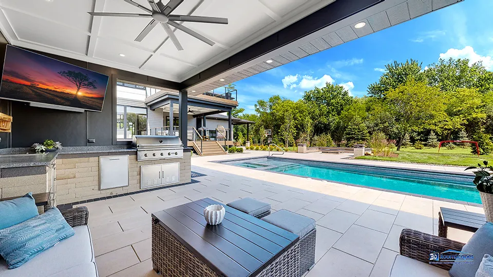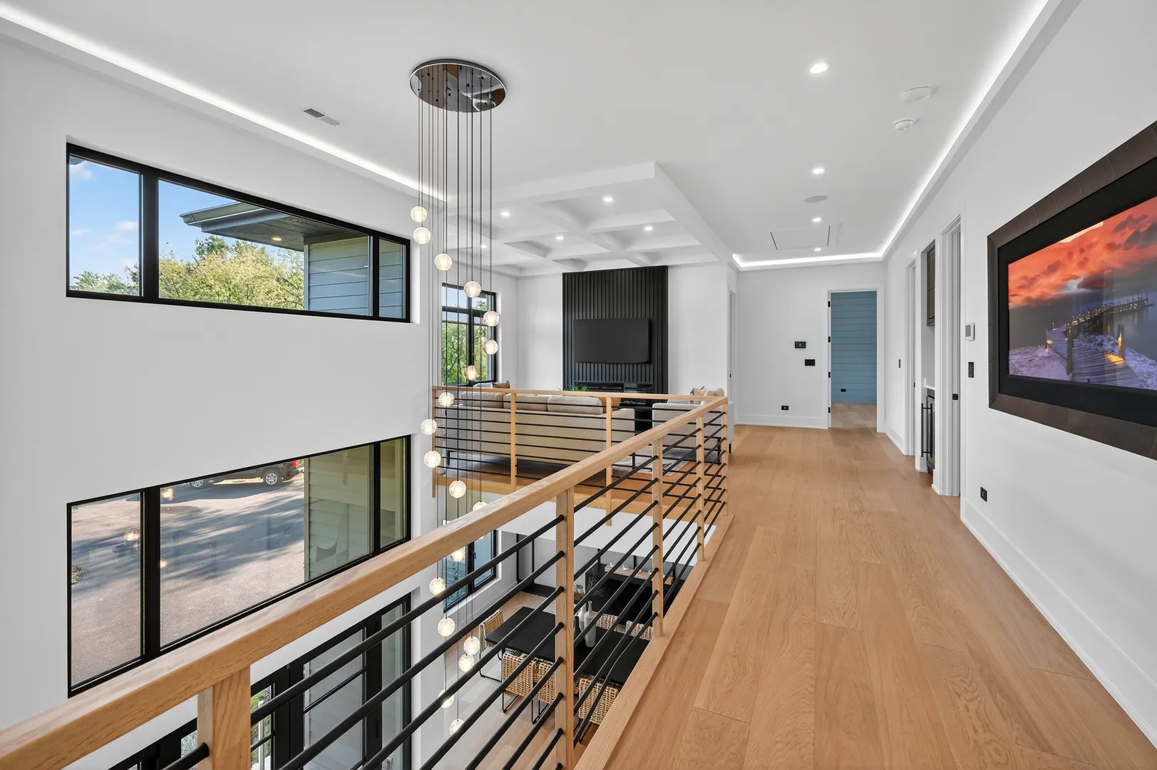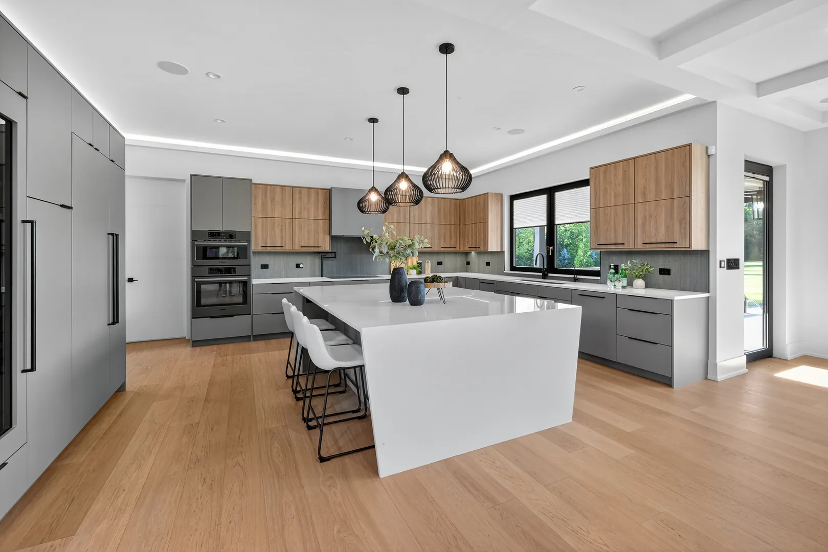 Modern luxury meets private resort living on 5+ acres just north of Spring Lake Trails in Barrington Hills. Built in 2023, this custom 5BR/5.1BA estate offers over 6,000 sq ft of light-filled living with a striking glass entry, two-story foyer, and expansive European windows overlooking the pool and grounds. The chef’s kitchen features a quartz waterfall island, premium appliances, and Miele coffee station-perfect for entertaining. Outdoor living shines with a saltwater pool, hot tub, outdoor kitchen, hardscaped firepit, and pool house. The private primary suite includes a spa bath with heated floors, soaking tub, and dual walk-in closets. English lower level with bar, guest suite, steam shower, and fitness room. Heated 5-car garage with EV charging plus new 24×50 outbuilding. Minutes to Barrington and Metra.