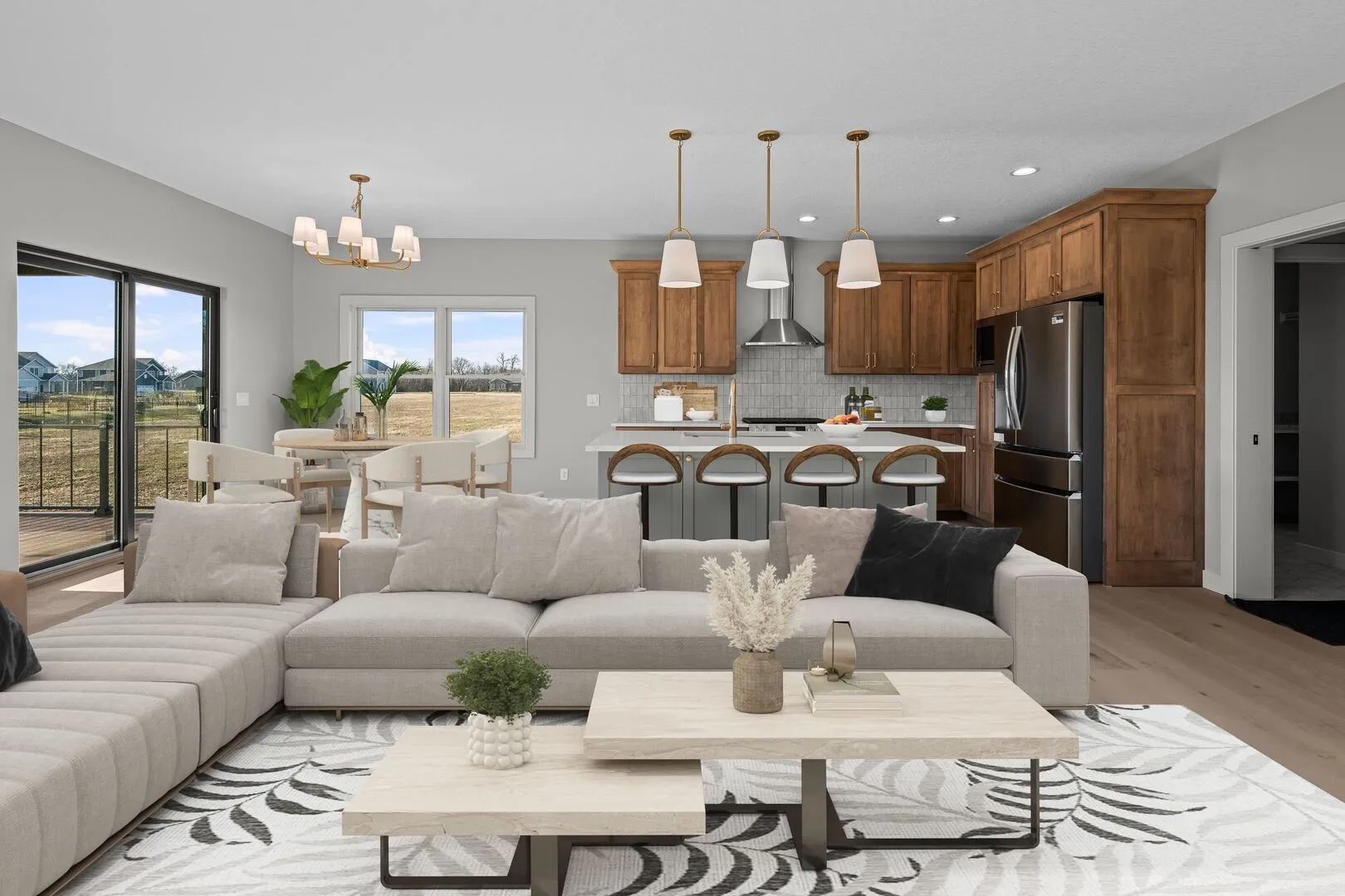 This fabulous Modern ranch home w/ an open floor plan is a must see! A 3 BR, 3 bath home loaded w/ modern details. The open concept main flr features Large windows that allow for an abundance of natural light throughout the kit, the great rm areas. Stepless Entry in both the garage & front door. Enjoy the custom kit that features Amish solid wood handmade cabinets, large walk in pantry, Plus the spacious island w/ upgraded appliances. The Island also features cabinets that can be opened from the front. The stylish Master BR & BA have a modern yet warm flair inviting you to never leave. Main floor laundry has lots of storage & folding areas, Just off the laundry is the mud rm area that has a half bath & locker system for coats & shoes. Full BSMT has daylight windows to brighten the to be rec rm area. The bsmt has been framed in & is ready to go. This quality home is ready for its new owner. LA is licensed Realtor in Iowa.