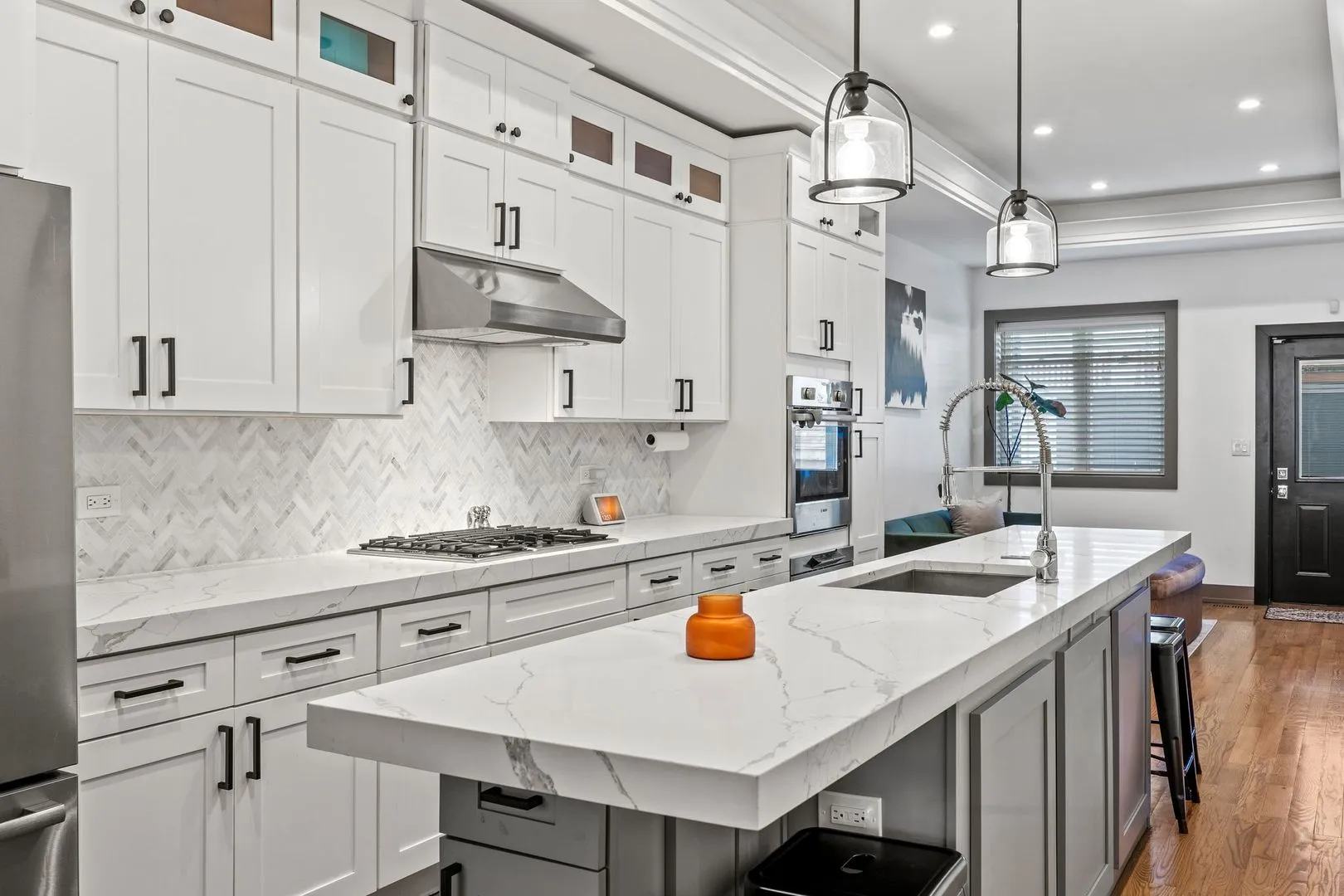 Discover a turnkey Bronzeville gem where historic integrity meets modern sophistication. This exceptional 4-bedroom, 3.5-bath row home delivers elevated design, thoughtful functionality, and enduring quality throughout. Inside, refined craftsmanship sets the tone with custom flooring, solid wood railings, eight-foot solid-core doors, and bespoke ceiling details. The home’s striking facade is anchored by a meticulously restored genuine copper bay window, preserving architectural character while making a bold statement. The lower level is designed for both comfort and entertainment, featuring a home theater setup framed by a reclaimed wood accent wall sized for an 80″ flat-screen, a wet bar, and a stylish bathroom finished in natural stone and mosaic tile. This level also includes a private suite with generous closet space, ideal for guests, extended living, or flexible use. On the main level, the chef’s kitchen is a true centerpiece-appointed with high-end appliances, a commercial-grade hood, marble backsplash, and rare, double-edged, extra-thick granite countertops. The adjacent family room flows seamlessly to the outdoor space, creating an effortless indoor-outdoor connection perfect for hosting. Efficiency and convenience are built in with second-floor laundry and a second furnace, while the junior primary suite offers a hotel-inspired retreat complete with a walkout patio through a frosted glass door-ideal for guests or multigenerational living. The primary suite serves as a serene sanctuary, featuring a spa-like bath with a freestanding soaking tub, dual vanities, and a rain shower, all set against a stunning stone-tiled backdrop. Located in the heart of historic Bronzeville, this home is part of an SCG Integrity-built, award-winning project, thoughtfully constructed and curated to stand the test of time. Designed to earn equity and support generational wealth, this residence is a testament to intentional design, enduring craftsmanship, and legacy living.