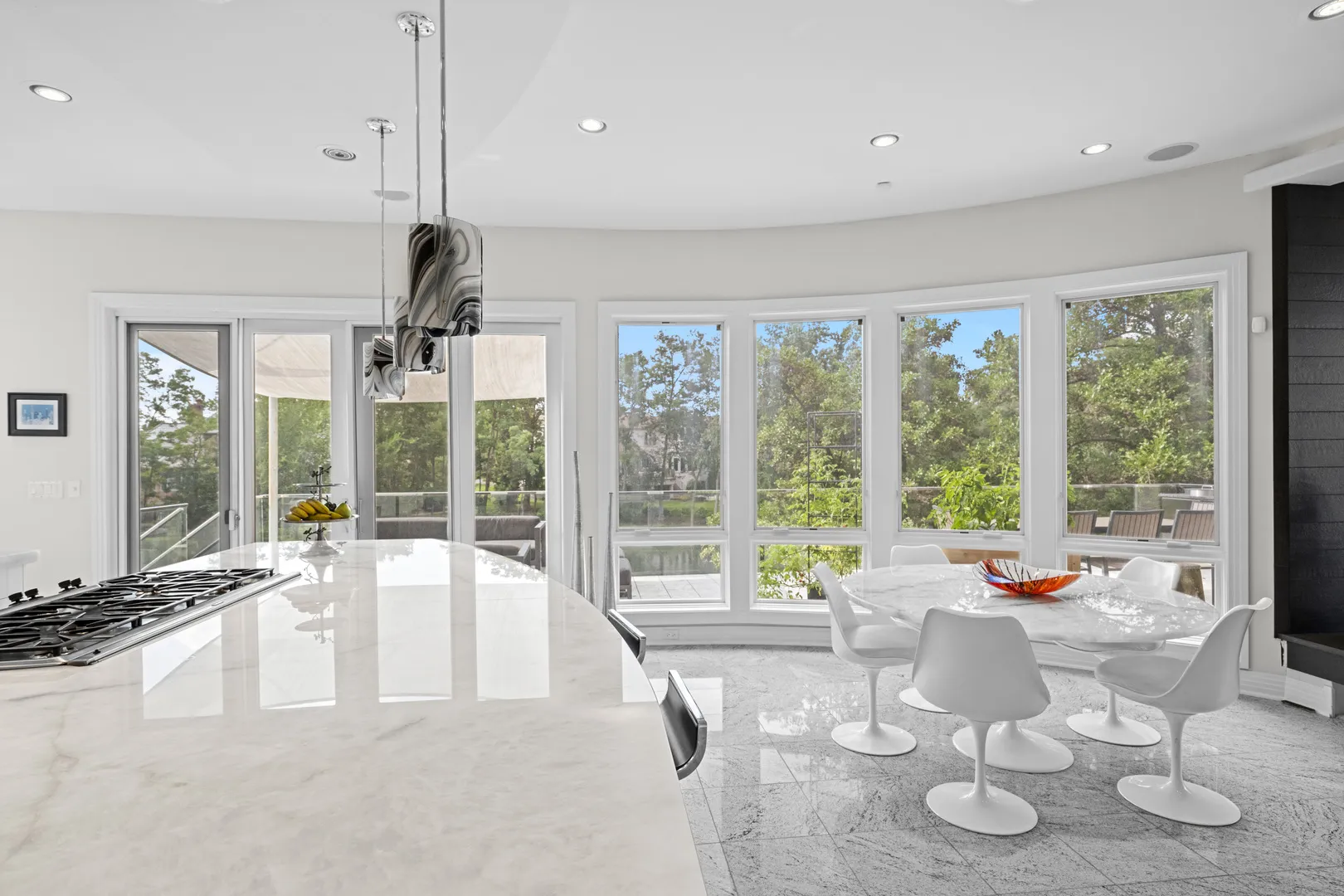 Spectacular luxury waterfront estate in Oak Brook! Renowned Richard Meier inspired architectural contemporary masterpiece. One of a kind timeless design. Light filled with walls of windows and soaring ceilings. 7 bedrooms, 6.1 bathrooms. Open concept floor plan. LOTS of Light throughout! Most beautiful views of Mayslake from the outdoor patio, terrace and balcony. 2 story foyer with skylight open to the living room, dining room separated by a fireplace and winding staircase to second floor. Family room with a fireplace, open to the breakfast room and chefs kitchen. All rooms with a view of the Mayslake lake and lush greenery. The breakfast room opens up to the outdoor deck. The kitchen has a large island with breakfast bar onyx countertops, custom white cabinetry, beautiful lighting, stainless steel high end appliances, an amazing walk in pantry and The VIEWS! The second floor has a luxurious primary bedroom suite with large walk in closet, sitting room, office and en suite bathroom. The other 3 bedrooms have ensuite bathrooms. There is a loft with views of the water and yard. The walk out lower level has a bar, media/theatre room, bedroom, bathroom, second kitchen and plenty of storage.The basement opens to the spectacular outdoor hardscaping, patio, outdoor kitchen, bar, firepit and entertainment area. This a perfect retreat. The roof top terrace has additional space for outdoor enjoyment. There a 4 car attached garage. Oak Brook Butler school District 53 and Hinsdale Central High School. Easy access to major roads and highways, Oak Brook shopping center, Oak Brook Sports Core and Oak Brook Park District. Saint Stephens Green is part of Trinity Lakes subdivision and backs Mayslake and Maylake Forest preserve.