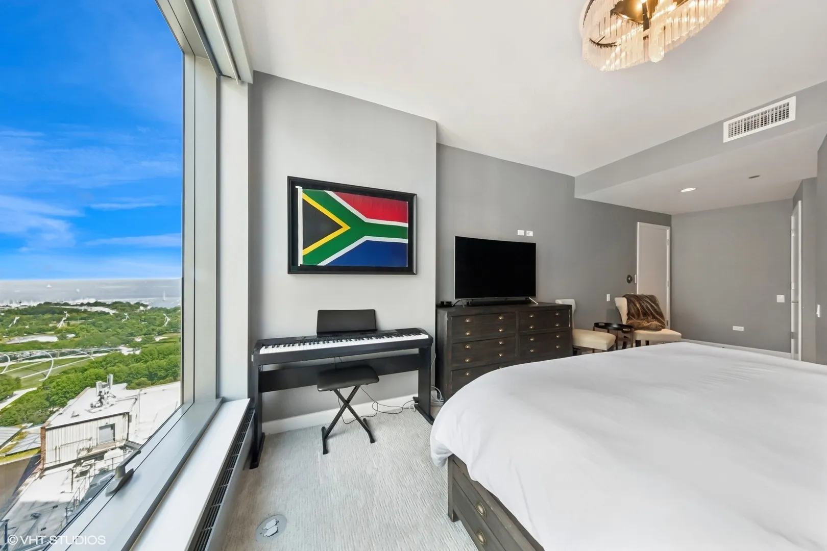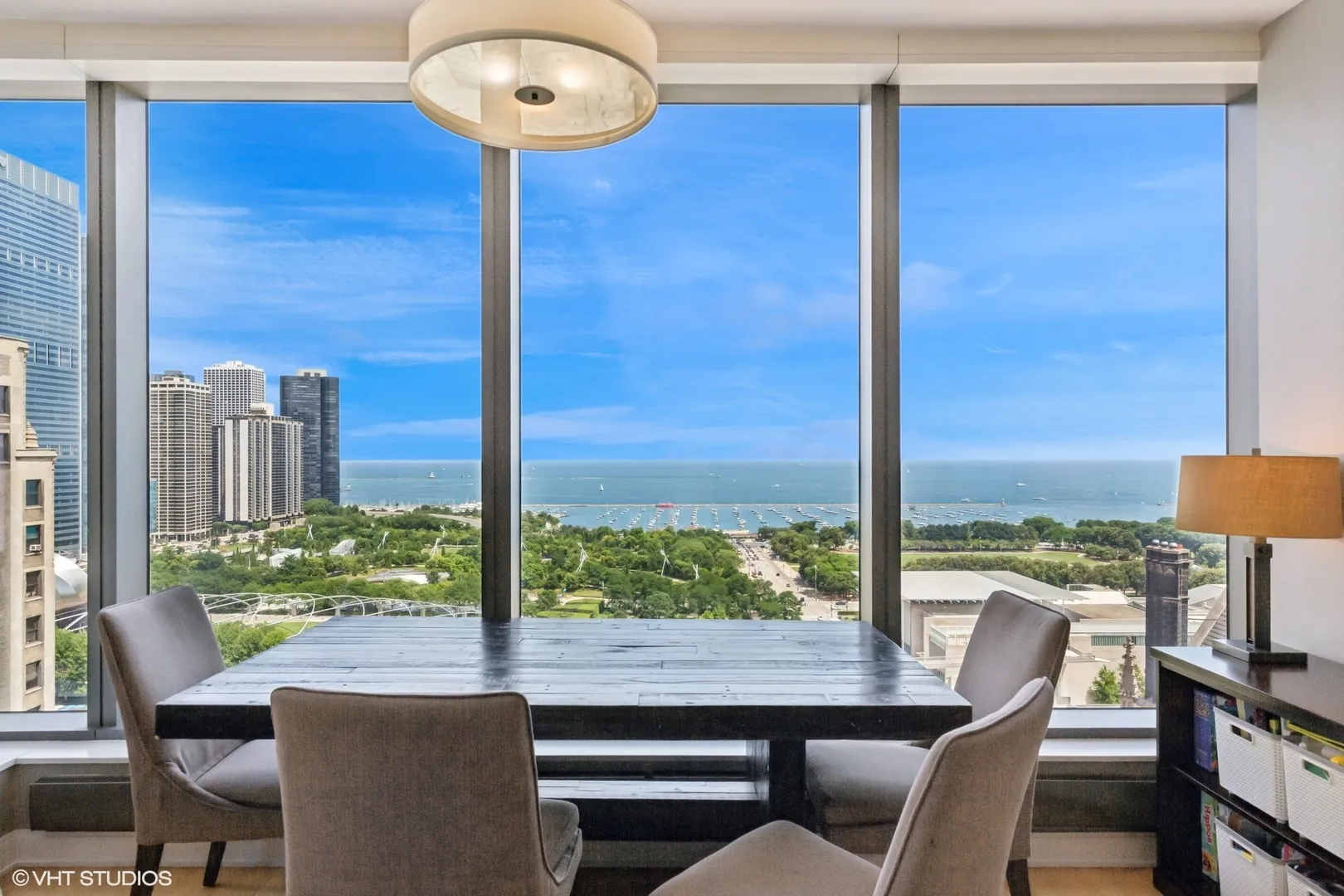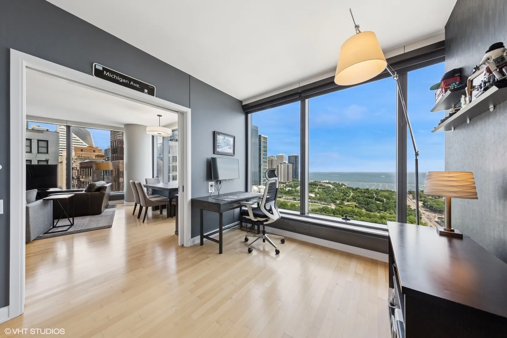 Experience the height of urban living in the prestigious Legacy at Millennium Park, a 72story architectural landmark. This rarely available 3-bedroom, 2.5-bathroom showcases floor-to-ceiling windows and unobstructed views of Lake Michigan, Monroe Harbor, Millennium Park, Grant Park and the city skyline. Designed for both entertaining and everyday comfort, the open-concept layout features hardwood flooring, a spacious living and dining area, and a north-facing balcony perfect for enjoying the serene vistas. The chef’s kitchen is outfitted with a generous breakfast bar, 42″ cabinetry, a Sub-Zero refrigerator, and a new dishwasher, microwave, oven and gas cooktop. The oversized corner primary suite includes two custom closets, and a luxurious en-suite bath with dual vanities, soaking tub, and a separate walk-in shower. Two additional bedrooms are very generous in size, one featuring a Murphy bed, ideal guest suite or home office. The additional full bath features marble finishes and a walk-in shower. Upscale amenities include 24-hour door staff, an indoor lap pool, whirlpool, steam room, fitness center, dog run, sun deck, and two resident lounges with wraparound terraces. At the heart of The Loop, and connected to the prestigious University Club of Chicago, this address offers unmatched proximity to Millennium and Grant Parks, the Art Institute, Symphony Center, the Pritzker Pavilion, waterfront paths, theaters, restaurants, and the vibrant cultural center of Chicago, all steps from your door. A premium garage parking space located next to the exit on the most convenient level of the building, available for an extra $275.