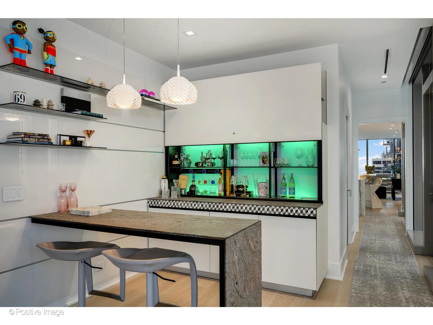 Extraordinary 4-bedroom plus office (optional 5th bedroom), 4-bath residence offering 4,831 square feet of sophisticated luxury living at the iconic St. Regis Chicago, Chicago’s premier full-service residential tower. Two valet parking spots are available for an additional $100,000. This stunning home seamlessly blends five-star hotel services with the intimacy and comfort of a private residence. Thoughtfully designed and impeccably finished, the interiors showcase Italian custom built-ins, modern light fixtures from Lightology, wide-plank hardwood floors, Sonos expanded sound system, Lutron automated blind system from Intellis, and refined designer details throughout. A gracious entry gallery sets the tone, featuring custom millwork by Jesse Chicago and gallery-style wall space ideal for displaying a curated art collection. The expansive living and dining room is anchored by a bio ethanol fireplace and framed by dramatic floor-to-ceiling windows offering rare South, West, and North exposures with sweeping views of Lake Michigan, the city skyline, and unforgettable sunset vistas. This exceptional vantage point creates a breathtaking backdrop for everyday living and entertaining. Adding to the home’s appeal are two distinct and dedicated living spaces, creating a truly unique and highly functional floor plan-ideal for both formal entertaining and relaxed everyday living. The secondary living area offers great flexibility such as a media lounge, family room, or private retreat. The chef’s kitchen is both elegant and highly functional, appointed with Snaidero cabinetry, cantilevered stone countertops, a full Gaggenau appliance suite, and an oversized island with seating. Completely custom to this unit, a fully equipped scullery offers exceptional additional storage and prep space, including a full-size Thermador refrigerator and Sub-Zero wine/beverage center. Just beyond, a covered balcony provides the perfect setting for grilling, relaxing, and dining al fresco while enjoying skyline views. Designed for elevated entertaining, the adjacent family room features a striking wall of custom built-ins with fireplace and a custom bar with Valcucine cabinetry equipped with a New Logica system and Liebherr refrigeration drawers, complemented by a glass-enclosed, temperature-controlled wine cellar by Genuine Cellar, creating a true private lounge experience within the home. The private primary suite is a serene retreat, offering beautiful city views, two custom walk-in closets, and a spa-caliber marble bath with oversized shower, soaking tub, Kallista fixtures, heated towel bars, dual vanity, Robern medicine cabinets, and full-height stone walls. A versatile bonus room just outside the primary suite functions perfectly as a home office, library, or fifth bedroom, with a full bath conveniently located across the hall. Three additional generously sized bedrooms – (one with an Italian Murphy bed system), two bathrooms (one en-suite), and a dedicated laundry room with additional storage designed by California Closets complete the residence. Residents enjoy unparalleled access to both private condominium amenities and full St. Regis hotel services, including concierge and butler services, in-residence dining, renowned restaurants Tret Dita and Miru, indoor and outdoor pools, spa, state-of-the-art fitness and training studios, private dining room, demonstration kitchen, wine storage and tasting room, private storage, and enclosed dog exercise area. Entertaining is effortless with on-demand event support, tableware, seating, and white-glove service. Ideally located in the heart of Lake Shore East, just steps from the lakefront, world-class dining, shopping and cultural institutions. This is a rare opportunity to own a turnkey, trophy-quality residence in one of Chicago’s most prestigious and sought-after addresses, offering panoramic views, a distinctive dual-living layout, five-star service, and an unmatched luxury lifestyle.