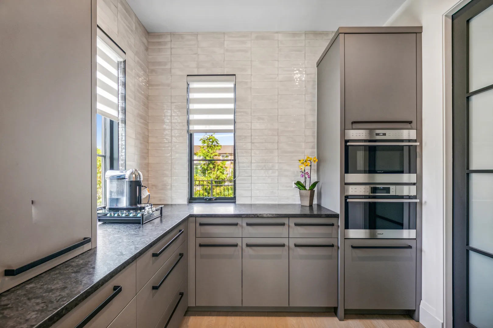A complete down-to-the-studs renovation, 411 Woodland Ct has been fully reimagined with a new roof, re-engineered structure, and all new windows and mechanicals, delivering the experience of new construction within an architecturally significant mid-century modern design. The home blends its original layout with a refined Pacific Northwest influence, emphasizing natural materials, strong lines, and a seamless connection to the outdoors. Set against The Glenview Club and Forest Preserve, the property offers rare privacy and uninterrupted green views. The main-level primary suite is a private retreat with a full marble bath, heated floors, dual water closets, and two massive walk-in closets. A flexible first-floor study can function as an additional bedroom suite, while four secondary bedrooms each feature en-suite baths. The custom kitchen is designed for both everyday living and entertaining, featuring Wolf/Sub-Zero appliances, custom cabinetry, a Taj Mahal quartzite island, and a chef’s dedicated scullery. The lower level includes a sunken space designed for a future golf simulator, theater, or lounge. Completion anticipated mid-May 2026. ***An existing in-ground pool remains on the property and is being sold as-is. The developer will remove it at no cost or can recommend pool companies to restore it for approximately $100,000 (contact listing agent for details).