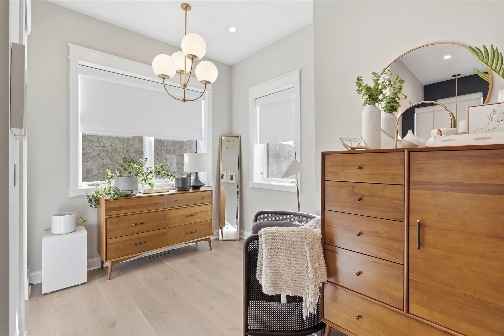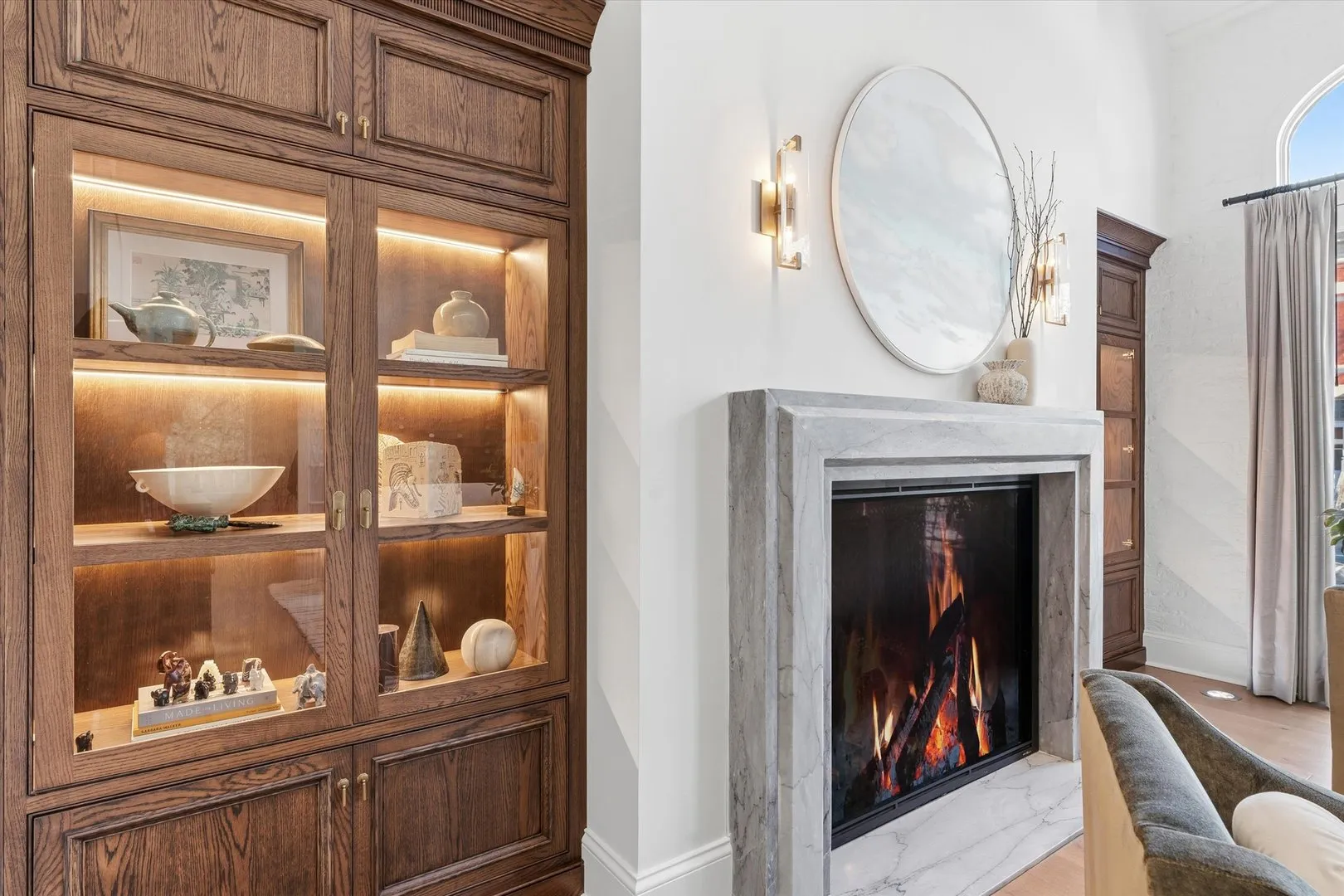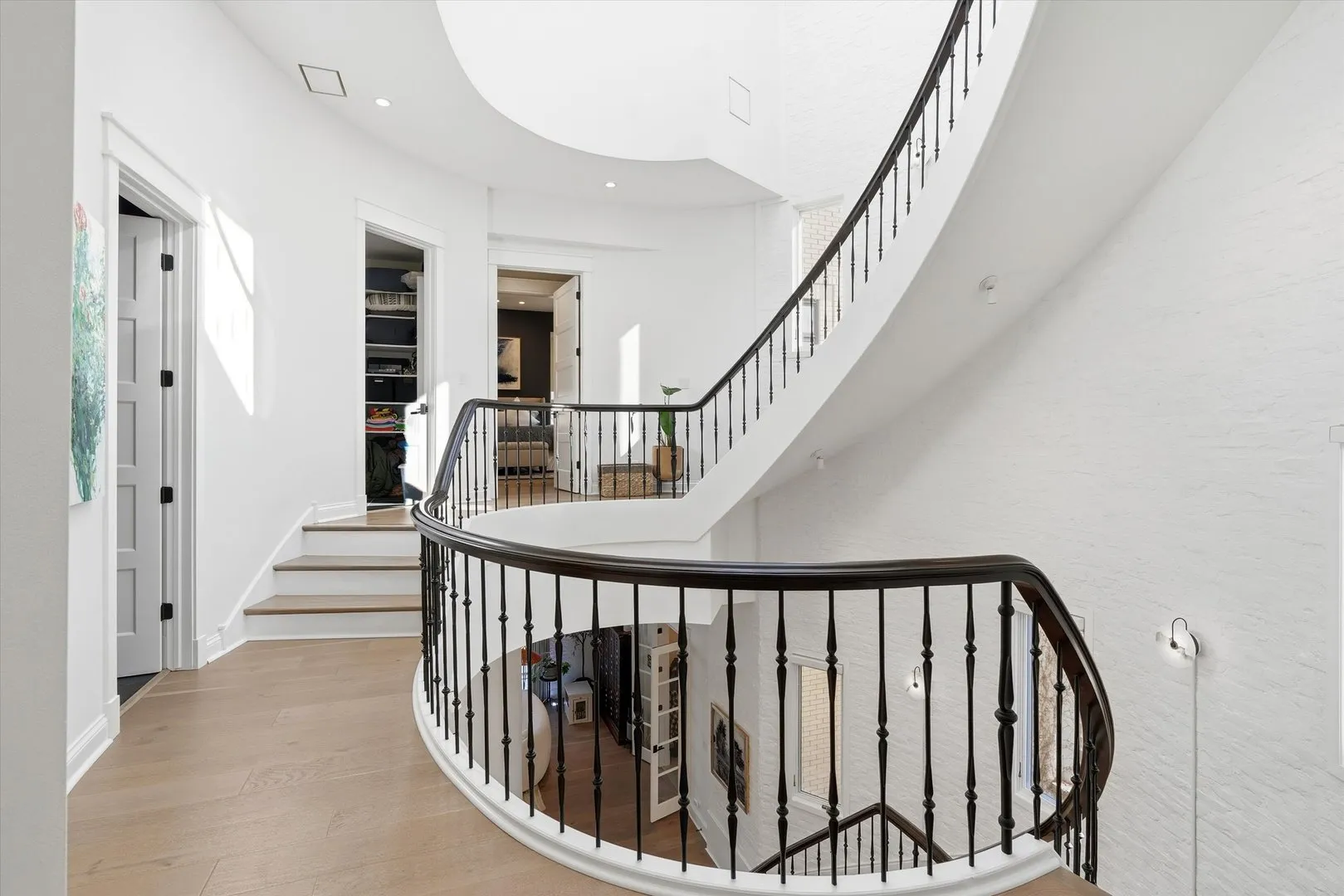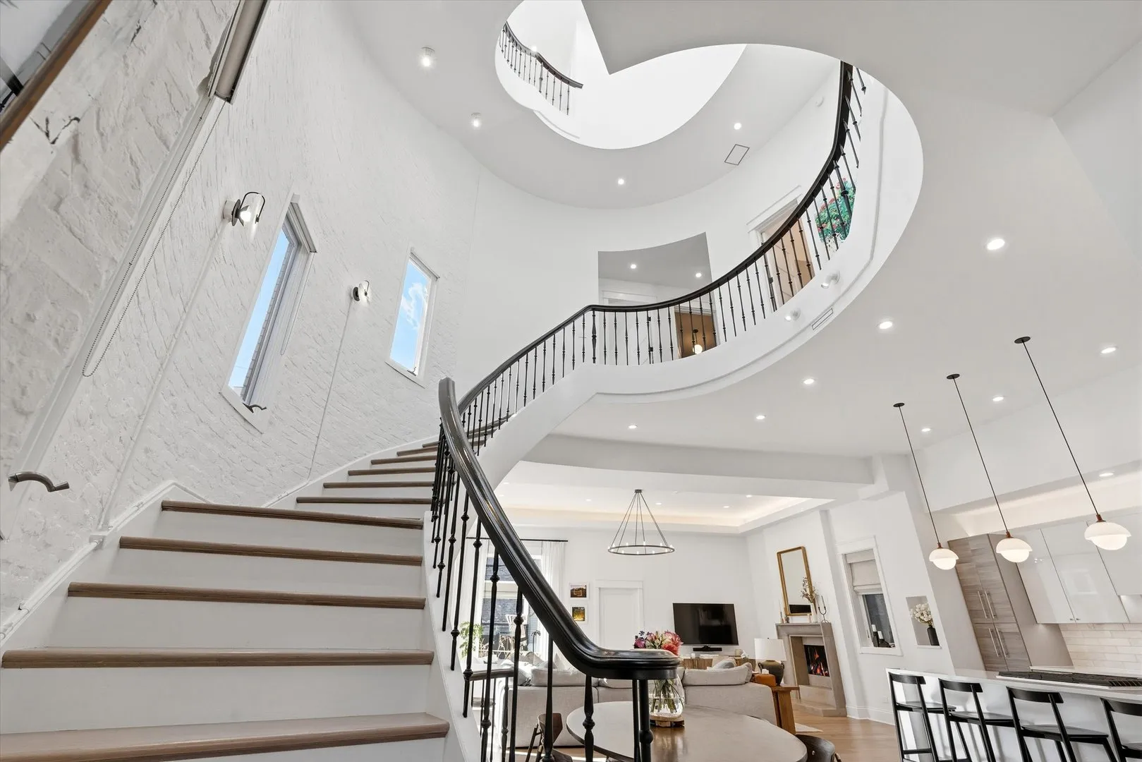 A showpiece of refined design and modern innovation, this extraordinary residence, featured in Modern Luxury and Crate & Barrel, was masterfully reimagined in 2021 to deliver a seamless blend of architectural character and state-of-the-art living, anchored by a breathtaking 35′ atrium crowned by a dramatic spiral staircase that sets an unforgettable first impression. Striking interiors captivate with Chicago brick curved accent walls, rich hardwood flooring, curated designer lighting, and two dramatic fireplaces with gas starters, creating warmth and ambiance at every turn. The chef’s kitchen is a true culinary centerpiece, appointed with extra wide Sub-Zero refrigerator, a KitchenAid 5-burner cooktop, KitchenAid double ovens, and dual dishwashers, perfect for effortless entertaining. Thoughtful enhancements include a purification system and additional beverage refrigeration in both the private gym and executive office. Retreat to the spa-inspired primary suite, where a steam shower elevates daily rituals into a luxury experience. The lower level features heated floors for year-round comfort, complemented by Hunter Douglas window treatments throughout and Lutron smart shades in the primary bedroom. A wine cellar that holds up to 230 bottles provides the ultimate finishing touch for sophisticated entertaining. Behind the walls, uncompromising infrastructure ensures peace of mind: three HVAC systems, auto shut-off system, dual sump pumps plus ejector monitored via WiFi, and a full gas generator. Integrated smart-home technology includes Lutron Caseta lighting, Ring security and cameras and Sonos multi-zone audio. Comprehensive security features interior and exterior Ring camera systems. A highly sought-after attached heated garage offers a sleek epoxy floor plus generous exterior pad parking as well as self-irrigation system with built in planters on rooftop as well as around the home for easy maintenance. Recent exterior improvements include a 2025 garage roof replacement with added solar panels and a newer home roof. A rare and distinguished offering where editorial-level design meets true modern performance, this is luxury living without compromise.