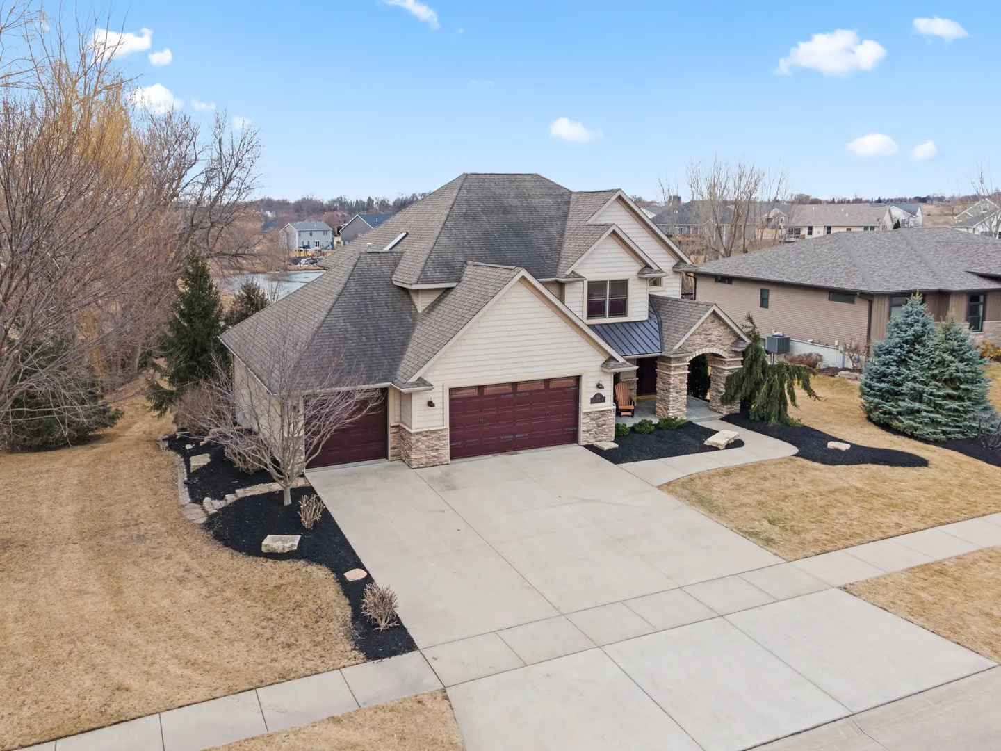 Stunning custom-built 2-story home in the highly sought-after Pebble Creek area of Le Claire! Situated on a spacious lot with beautiful water views, this 5-bedroom home is bathed in natural light and offers the perfect blend of quality craftsmanship, thoughtful updates, and everyday comfort. Step inside to find rich hardwood floors and a freshly repainted interior that feels bright, clean, and truly move-in ready. The heart of the home is the custom kitchen, featuring quality cabinetry, abundant prep space, and a generous walk-in pantry-ideal for both entertaining and everyday organization. The open layout flows seamlessly into the main living areas, creating a warm and inviting atmosphere for gatherings of any size. stairs, the primary suite serves as a private retreat, complete with remote control blackout blinds and the with a recently updated bath designed for relaxation, comfort, and style. Four additional bedrooms provide flexibility for guests, home offices, or hobby space. Each bedroom has walk in closets and either private or shared bathrooms. The heated garage adds exceptional versatility, complete with a dedicated workout area and television-perfect for year-round fitness, projects, or additional entertaining space. The lower garage is ideal for golf cart or yard tool storage. This home also offers outstanding efficiency and peace of mind with geothermal heating and a whole-house generator-valuable upgrades that enhance comfort in every season. Enjoy the large yard and scenic water views from your own backyard oasis in one of Le Claire’s most desirable neighborhoods. Quality construction, thoughtful upgrades, and an exceptional setting-this home is ready to impress. Schedule your showing today!