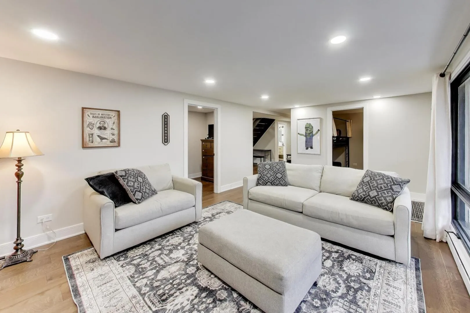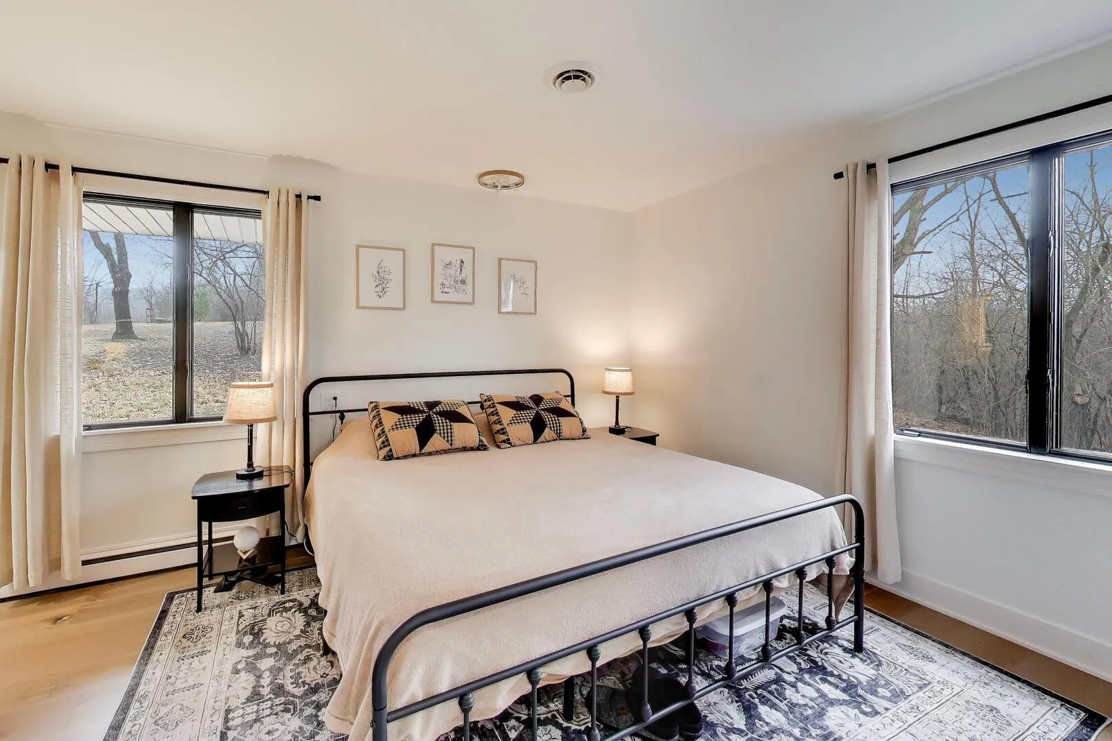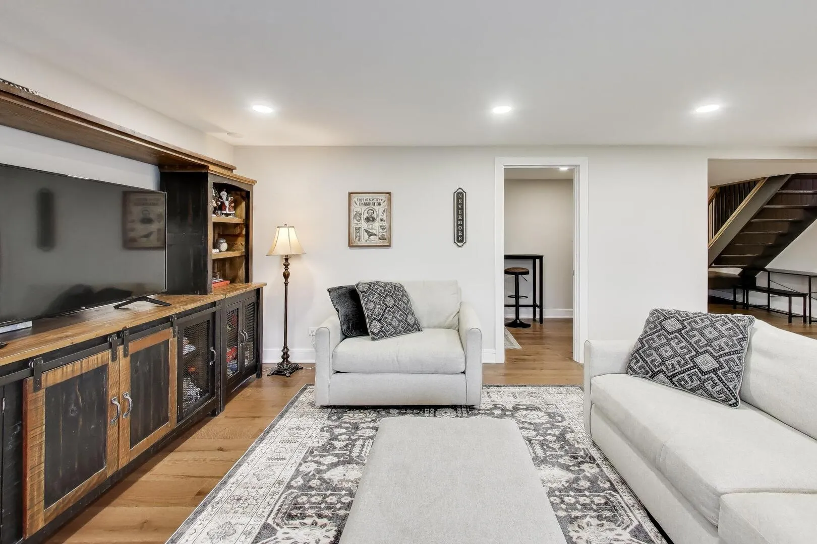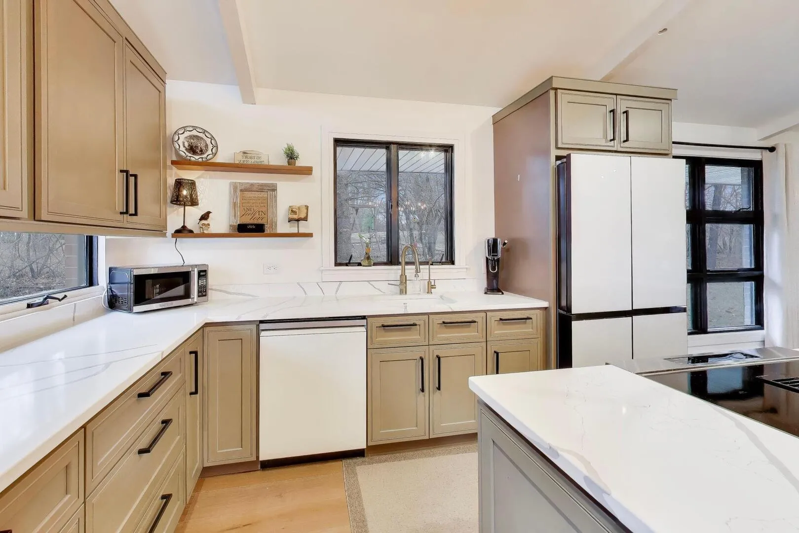 Situated on a generous 1.2-acre lot, this beautifully renovated all-brick home offers 5 bedrooms and 3 bathrooms across 2,600+ square feet, located in desirable Barrington 220 school district. The thoughtful layout blends mid-century modern character with modern updates throughout. Upon entering the home, you’re welcomed on the lower level by a cozy family room with a wall of floor-to-ceiling windows. This level also includes flexible living space along with two additional bedrooms and a full bathroom, making it ideal for guests, a home office setup, or extended family living. The main level showcases the home’s standout feature: an expansive living room with soaring ceilings and large panoramic windows where natural light pours in and frames beautiful views of the surrounding nature. This open-concept space flows seamlessly into the gourmet kitchen and spacious dining area, creating the perfect setting for both everyday living and entertaining. The stunning kitchen boasts a large island, quartz countertops, abundant cabinetry with phenomenal storage space, and sleek Samsung appliances. The dining space comfortably accommodates seating for twelve without feeling crowded. Generous living area offers a flexible and open floorplan perfect for entertaining with a 2nd updated full bathroom conveniently located adjacent to the space. Two additional bedrooms and your primary suite are tucked away at the end of the hall. The primary bedroom boasts an update en-suite bathroom completing this level. Recent renovations bring a fresh, modern feel throughout the home, including new three-panel interior doors, updated trim, and a striking staircase. Engineered oak hardwood flooring and elegant tile work add warmth and durability to the living spaces. For outdoor enjoyment, the home features an extra-large balcony that provides a peaceful setting for relaxing or entertaining while overlooking the surrounding property. The expansive yard offers endless possibilities to create your own outdoor retreat, whether that’s a patio, garden, or full backyard oasis. Additional updates include a new water softener and iron filtration system, adding comfort and functionality to this already impressive home. With extensive renovations already completed, the home is truly move-in ready. Located in the highly sought-after Timberlake Estates, the property also offers lake rights and views of the community beach located just off the driveway, allowing you to enjoy lake living while still being conveniently located just 8 minutes from downtown Lake Zurich. Listing agent is related to the seller.