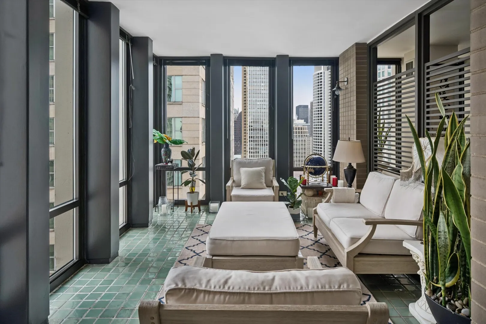 A rare opportunity to own a truly distinctive corner duplex penthouse in one of the city’s most coveted locations. Offering approximately 2,500 square feet, this one-of-a-kind residence features two bedrooms plus a den/sunroom and 2.5 bathrooms, all perched above the Magnificent Mile. Flooded with natural light from dramatic floor-to-ceiling windows, the home showcases sweeping skyline and lake views from nearly every angle. The thoughtfully renovated kitchen is equipped with a Bosch Benchmark induction cooktop and range, while a convenient in-unit laundry closet includes a washer and dryer. A striking wide spiral staircase anchors the space, connecting expansive living and dining areas ideal for both everyday living and entertaining. Primary en-suite bathroom features a massive custom shower with Phillips hue LED lights. Additional highlights include a versatile den or sunroom, abundant closet space, and Lutron lighting throughout, adding both comfort and sophistication. An additional flexible space can be found off the second bedroom- currently used an office, but could easily be converted into a walk-in closet. This special residence was personally constructed for Robert Edelman, the owner/developer of the building, back in 1971. Residents of 100 E Walton enjoy full-service amenities including 24-hour door staff, an attached parking garage, rooftop pool, fitness center, and on-site management.