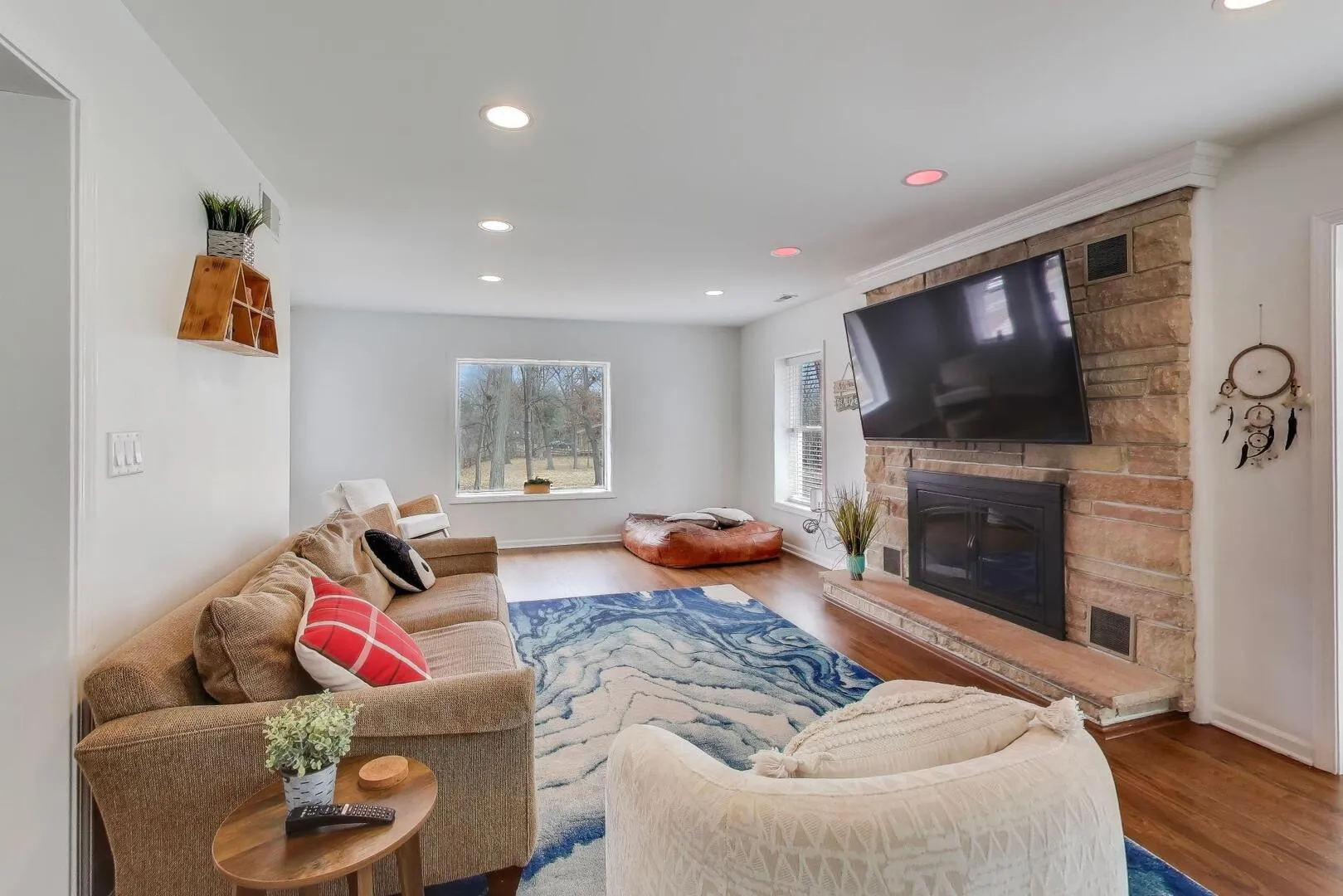 Beautiful completely rehabbed 2 bedroom 2 bathroom! FULLY FURNISHED…Fabulous kitchen with double ovens, granite countertops, stainless steel appliances, adjacent dining area and large windows overlooking the stunning yard! Hardwood floors and tons of natural light throughout the home. Spacious living room with fireplace and sliding doors to a huge deck – perfect for outdoor entertaining! Convenient laundry and mud room area just off the attached 2 car garage. Gorgeous 1.29 Acre wooded lot on a quiet cul-de-sac street – a nature lovers paradise! All new windows 2018, new siding 2018, new electrical 2018, new HVAC 2018, new water heater 2021, new water softener 2022. There are 2 sheds on the property the tennants will not have acccess to. —