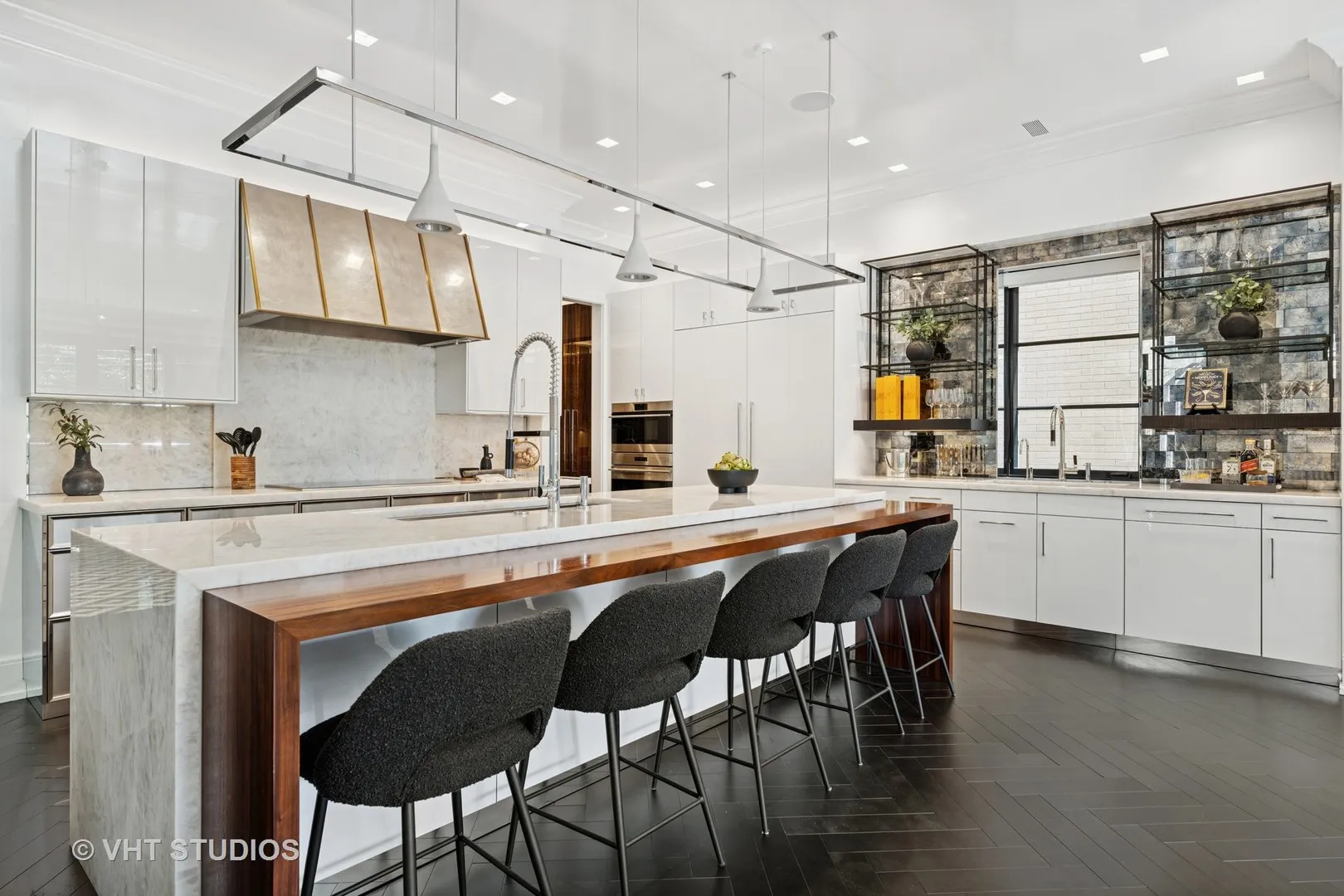 Stunning beyond words, this East Lincoln Park masterpiece redefines luxury at every turn. Set on a 36×131 on coveted Orchard street, this 9,500 square foot home speaks to a most discerning buyer seeking the ultimate blend of superior craftsmanship and refined luxury. A chic city retreat featuring a plunge pool and beautifully landscaped yard. Upon entering, you are welcomed by the striking drama of a museum-quality marble foyer, soaring ceilings, and an expansive living and dining room with floor-to-ceiling bespoke marble fireplace. At the heart of the home is a stunning statement De Giulio kitchen featuring Wolf and Sub-Zero appliances, a butler’s pantry, and an artful mix of Lotus White Similaque, stainless steel, and Gloss Fumed Eucalyptus cabinetry. Iceberg Quartzite counters, Peruvian Walnut accents, and high-gloss Farrow & Ball millwork elevate both form and function. An adjacent family room, anchored by a hand-scraped stone wall, opens seamlessly to the terrace, pool, and landscaped yard-perfect for refined indoor-outdoor living. Throughout, ebony-hued wide-plank heirloom white oak floors are paired with a striking custom metal and glass staircase, tying the home’s design elements together with timeless elegance. The primary suite exudes refined elegance and combines luxury with impeccable practicality, boasting a serene sitting area enhanced by a dual-sided gas fireplace framed in exquisite Iceberg Quartzite. The adjoining designer primary bath, adorned in stunning Calacatta Gold marble, offers a spa-like experience, complemented by two very generously appointed closets, two bathrooms, and jacuzzi tub. Designed for effortless living, the home features 3 custom laundry rooms, full-home automation and security, radiant heat with snow melt, 14-zone cooling, and whole-house water filtration. A discreet front curb-cut leads to a private driveway and heated garage, offering 2 indoor spaces and 3 additional outdoor spots-providing secure parking for up to 5 vehicles. Additional highlights include Marvin windows and doors, 800-amp service, backup generator, air-conditioned patio storage, elevator to all levels, and a build-ready roof. This exceptional residence is a rare opportunity to own a legacy home on one of Chicago’s premier residential streets, located in the heart of Lincoln Park, just steps from renowned schools, boutique shopping, and some of the city’s best dining.