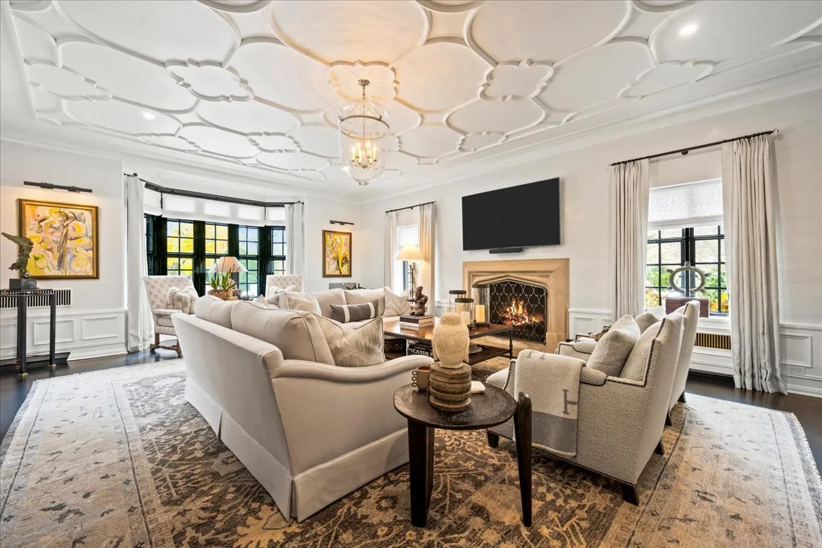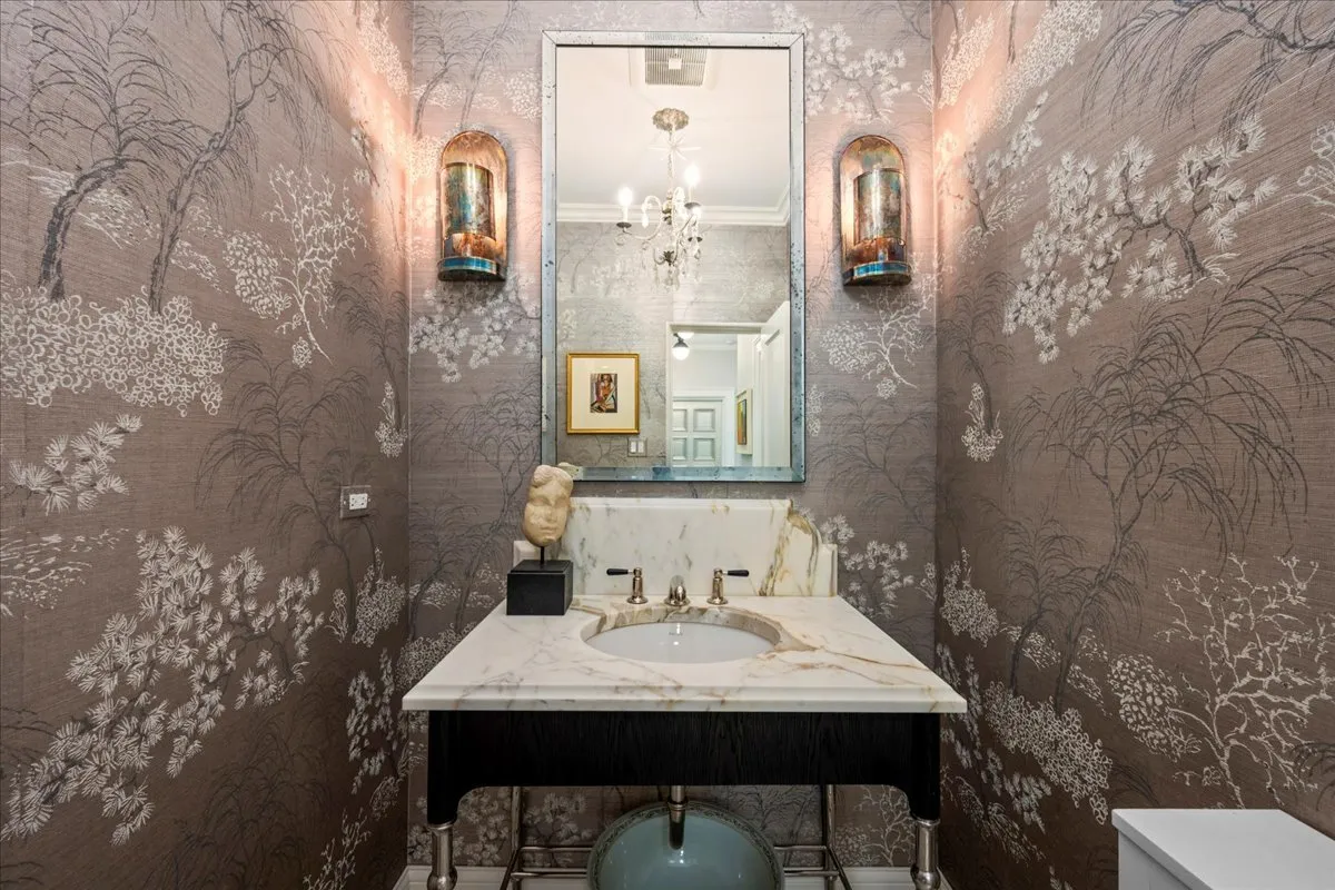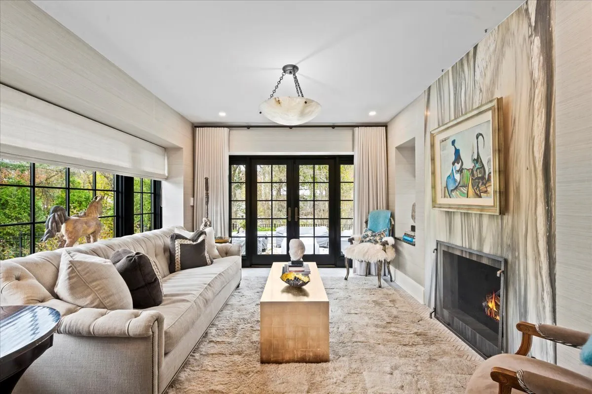 Perfect & truly incredible interior design and architecture are showcased at this 6 bedroom, 3.2 bathroom East Kenilworth home close to Lake Michigan & The Kenilworth Beach. The fantastically functional floorplan features all large rooms, high ceilings, amazing decor and incredible new designer lighting & stunning details throughout. Elegant architectural details have been accentuated by venetian plaster walls, plaster moldings added to the ceiling, a hand-painted silver leaf wall featuring a tree and floral design motif that is extraordinary. The gorgeous entertainment sized living room has windows on 3 sides and features huge art walls, a decorative plaster ceiling and a woodburning fireplace with limestone mantle. The spectacular dining room was painted with Fine Paints of Europe in high lacquer and is truly stunning with hidden cabinetry for storage. A sunny family room has a fabulous marble floor and new Italian marble fireplace surround and the walls of windows and French doors open to the newly built bluestone terrace, newly created lower outdoor bluestone patio with fireplace and rod iron perimeter fenced yard. First floor office/library is tucked away for privacy and finished with built-ins and the perfect place to work from home. The impeccable magazine caliber kitchen features marble countertops, stainless steel appliances, marble backsplash and a spacious island. This chef’s dream kitchen features gorgeous sealed Calcutta Super Extra marble countertops and backsplash. The La Cornue stove, custom cabinetry, Miele dishwasher and fabulous Dolomite floor tile. The first-floor powder room is a design treat with stunning tile and decor. The sun filled staircase to the second floor takes you to the luxurious & huge primary suite with limestone fireplace and a primary bathroom in your dreams with double sinks, standalone tub, walk in shower all surrounded by the most beautiful decorator marble countertops and tile. There are three additional bedrooms on the second floor (all with California Closets) & a laundry room. The third floor has two additional bedrooms, a full bathroom and storage galore. The basement was completely renovated and boasts a full kitchen with marble island, recreation, exercise area and bathroom. The attached 2 car garage has a new door and electric car chargers. A complete overhaul of the landscaping and hardscape in the re-graded and sprinklered yard with new bluestone patio, bluestone steps, new outdoor fireplace, new lower level patio and perimeter fence installed. Ultra-convenient location near schools (Sears & New Trier), train and lake.