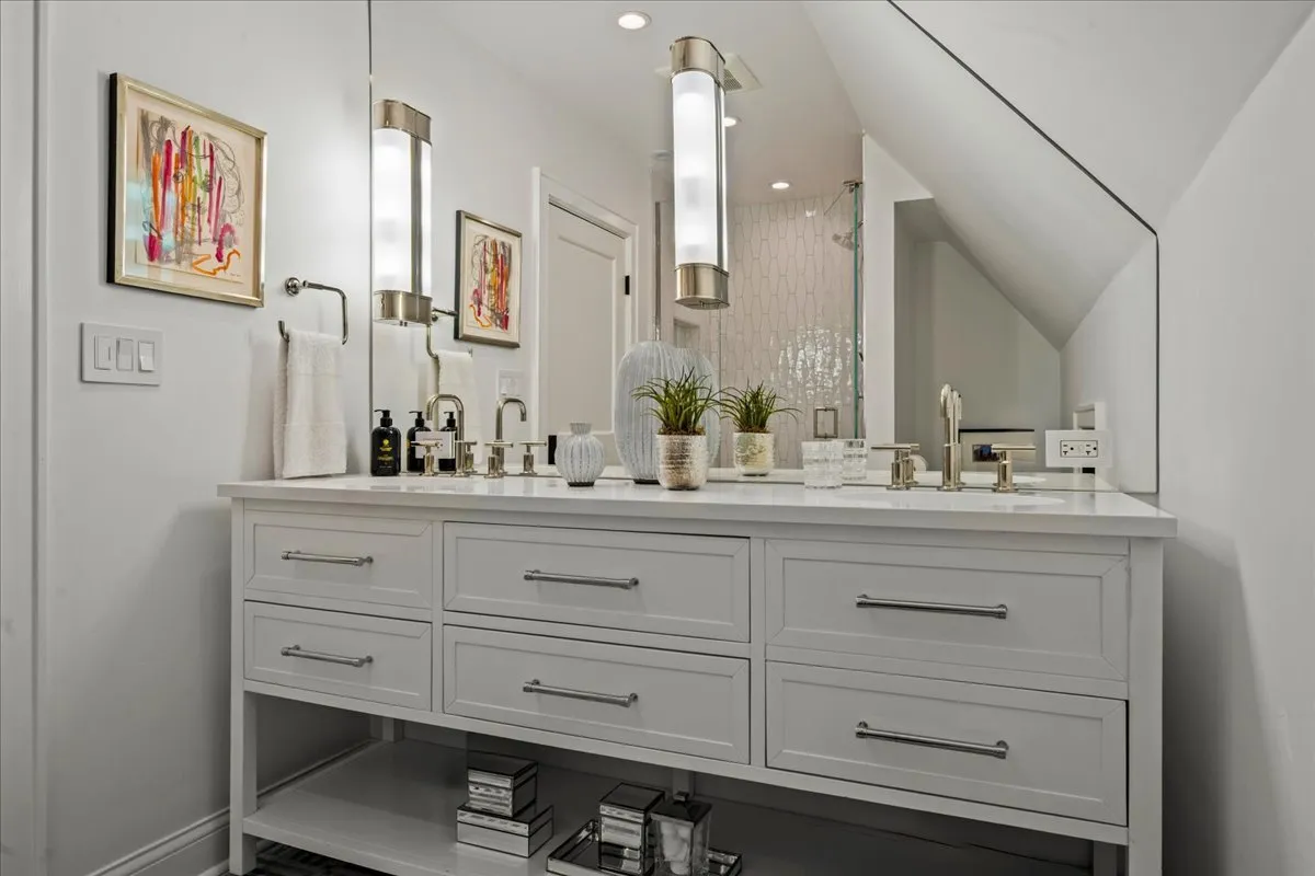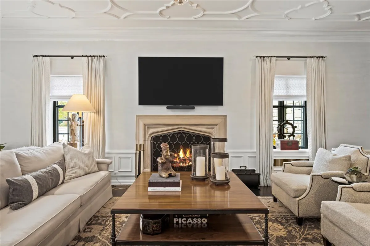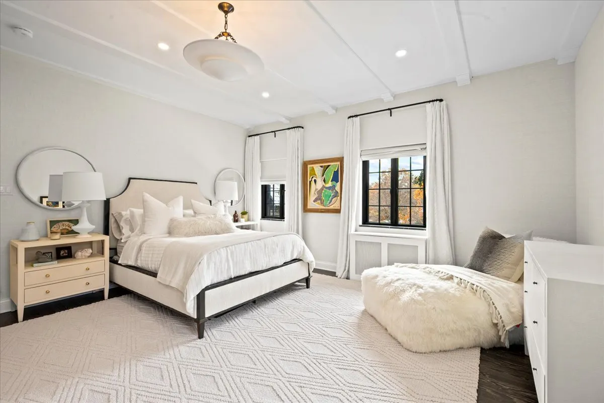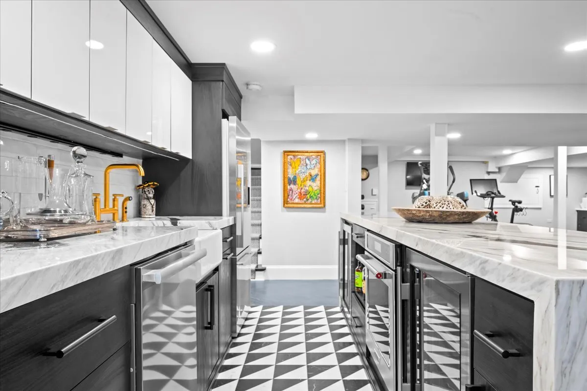 Perfect & truly incredible interior design and architecture are showcased at this 6 bedroom, 3.2 bathroom East Kenilworth home close to Lake Michigan & The Kenilworth Beach. The fantastically functional floorplan features all large rooms, high ceilings, amazing decor and incredible new designer lighting & stunning details throughout. Elegant architectural details have been accentuated by venetian plaster walls, plaster moldings added to the ceiling, a hand-painted silver leaf wall featuring a tree and floral design motif that is extraordinary. The gorgeous entertainment sized living room has windows on 3 sides and features huge art walls, a decorative plaster ceiling and a woodburning fireplace with limestone mantle. The spectacular dining room was painted with Fine Paints of Europe in high lacquer and is truly stunning with hidden cabinetry for storage. A sunny family room has a fabulous marble floor and new Italian marble fireplace surround and the walls of windows and French doors open to the newly built bluestone terrace, newly created lower outdoor bluestone patio with fireplace and rod iron perimeter fenced yard. First floor office/library is tucked away for privacy and finished with built-ins and the perfect place to work from home. The impeccable magazine caliber kitchen features marble countertops, stainless steel appliances, marble backsplash and a spacious island. This chef’s dream kitchen features gorgeous sealed Calcutta Super Extra marble countertops and backsplash. The La Cornue stove, custom cabinetry, Miele dishwasher and fabulous Dolomite floor tile. The first-floor powder room is a design treat with stunning tile and decor. The sun filled staircase to the second floor takes you to the luxurious & huge primary suite with limestone fireplace and a primary bathroom in your dreams with double sinks, standalone tub, walk in shower all surrounded by the most beautiful decorator marble countertops and tile. There are three additional bedrooms on the second floor (all with California Closets) & a laundry room. The third floor has two additional bedrooms, a full bathroom and storage galore. The basement was completely renovated and boasts a full kitchen with marble island, recreation, exercise area and bathroom. The attached 2 car garage has a new door and electric car chargers. A complete overhaul of the landscaping and hardscape in the re-graded and sprinklered yard with new bluestone patio, bluestone steps, new outdoor fireplace, new lower level patio and perimeter fence installed. Ultra-convenient location near schools (Sears & New Trier), train and lake.