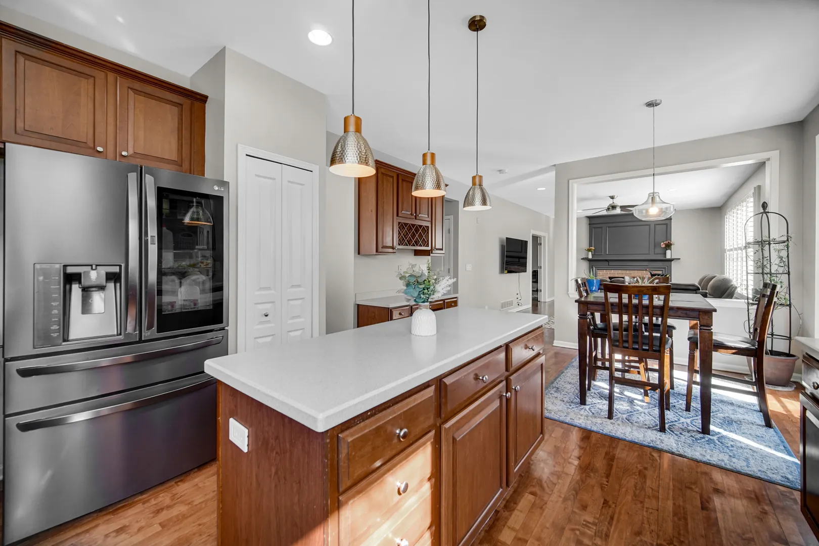 A fantastic opportunity to own a beautiful home in Country Club Village! The home welcomes you with majestic curb appeal, featuring a striking brick front and a spacious three-car garage that immediately captures your attention as you arrive. Step through the front door into a breathtaking two-story foyer highlighted by a stunning chandelier, gleaming maple hardwood floors, and an elegant maple staircase. The formal living and dining rooms are thoughtfully positioned on either side of the foyer, creating the perfect space for entertaining. The kitchen is well appointed with 42″ maple cabinets, stainless steel appliances, and a beautiful center island accented by pendant lighting. The countertops and coordinating backsplash provide a neutral backdrop that complements any style. The inviting family room features a charming brick fireplace and a wall of windows that fills the space with natural light-even on the dullest Chicago winter days. The entire first floor is clad in gleaming maple hardwood flooring, adding warmth and elegance throughout. The hardwood staircase leads to the upper level, which offers three secondary bedrooms and a spacious primary suite with a vaulted ceiling. The primary bath features dual sinks, a relaxing soaking tub, a separate shower, and a private water closet. A well-organized walk-in closet adds to the suite’s functionality. A second full bath and the convenience of second-floor laundry complete the upper level. The finished basement is truly a treat. It features a built-in theater system and bar, a small kitchenette, a full bath and a bedroom and a large entertainment area-perfect for gatherings, movie nights, or extended living space.