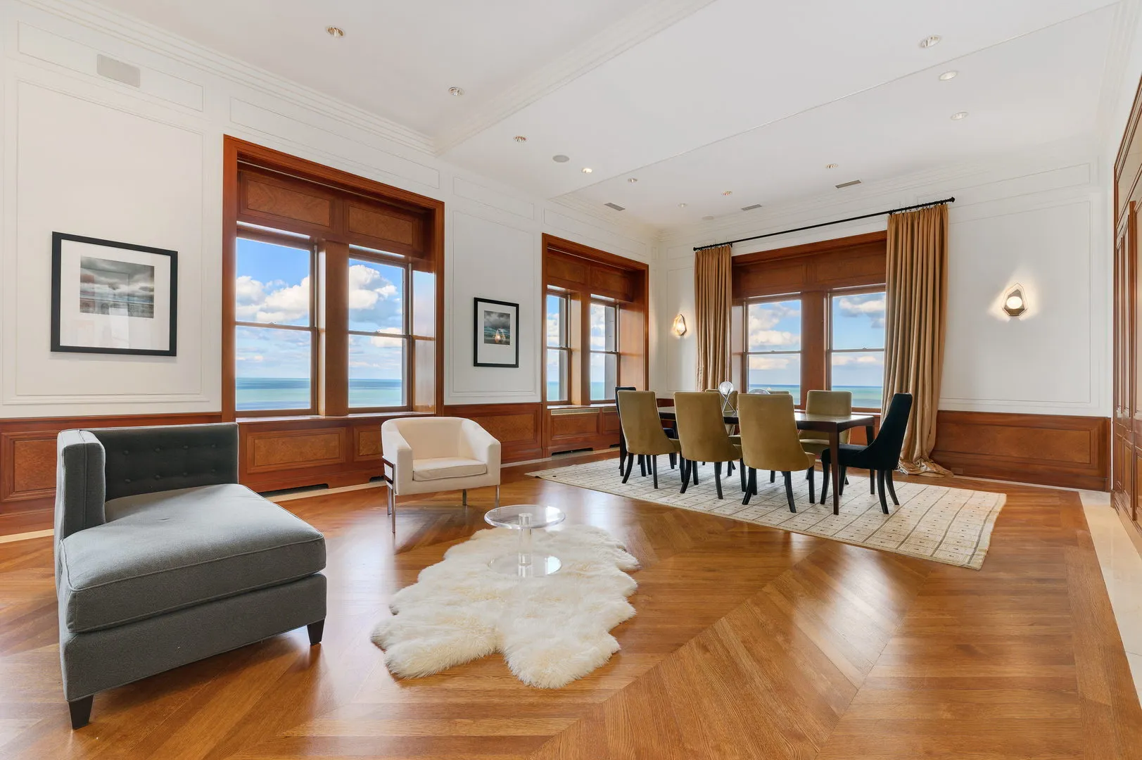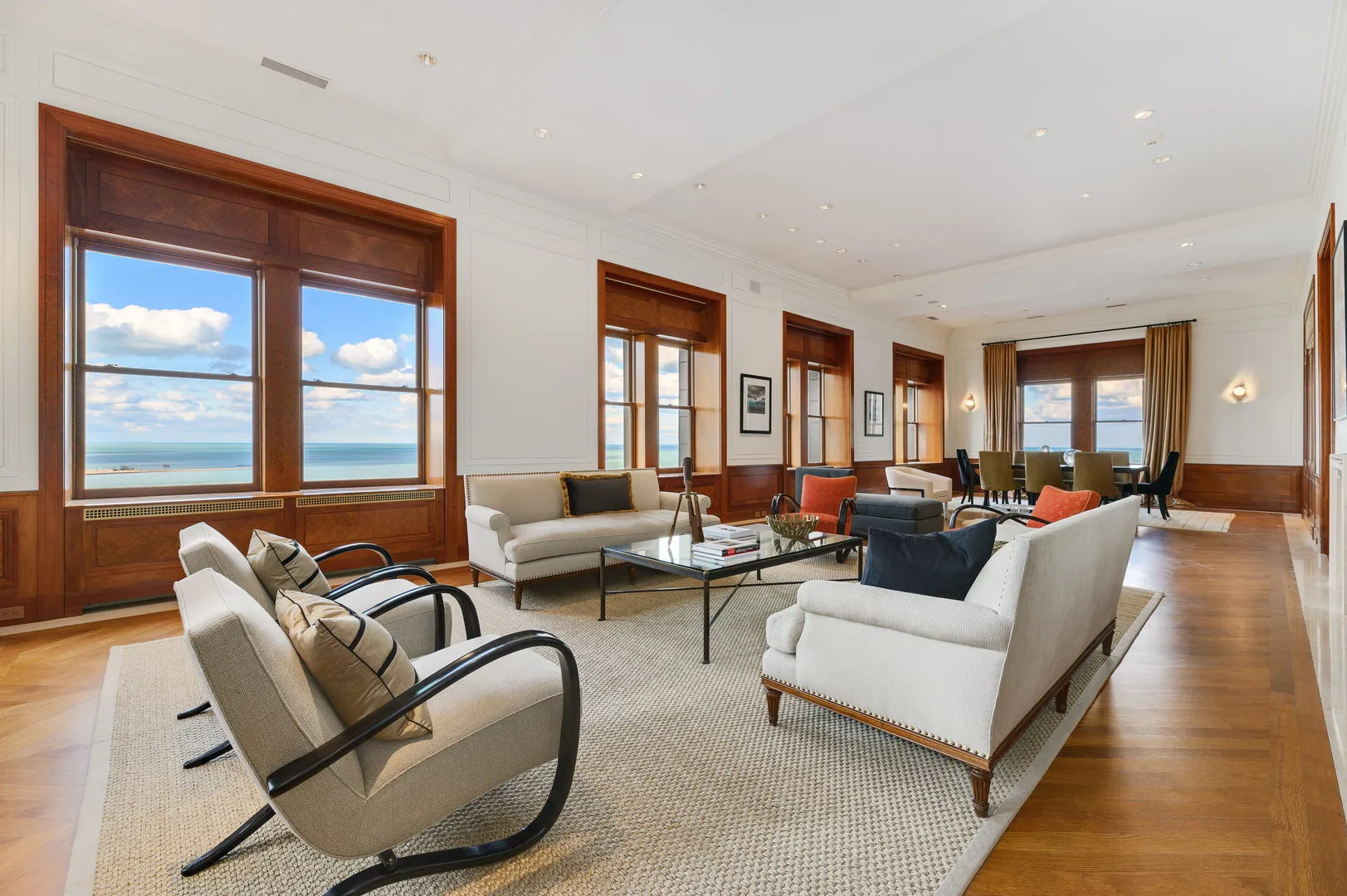 Amazing, dramatic penthouse in a classic vintage building on East Lake Shore Drive! This home has been completely renovated with over 7400 square feet of luxurious finishes and offers expansive lake & city views plus 2 terraces with 550 square feet of private outdoor space. Walk off the elevator into this full floor home featuring oversized windows and extraordinary ceiling height make this home truly one-of-a-kind. The grand living room extends the entire front of the apartment with beautiful paneling and sensational views over Lake Michigan and Lake Shore Drive. Entertaining formally or casually is done with ease by virtue of the thoughtfully appointed, all new chef’s kitchen with additional eat-in area. The grand dining room is fabulous for entertaining or used as a huge great room. The master suite offers a private office and an over-sized dressing room. There is also an additional closet space with a gracious bath and a private terrace. There are four additional bedrooms suites, which are sensibly arranged around a central family room with lovely built ins. The building offers a state-of-the-art exercise facility and has one of the more gracious lobbies the city has to offer. Three parking spaces included!