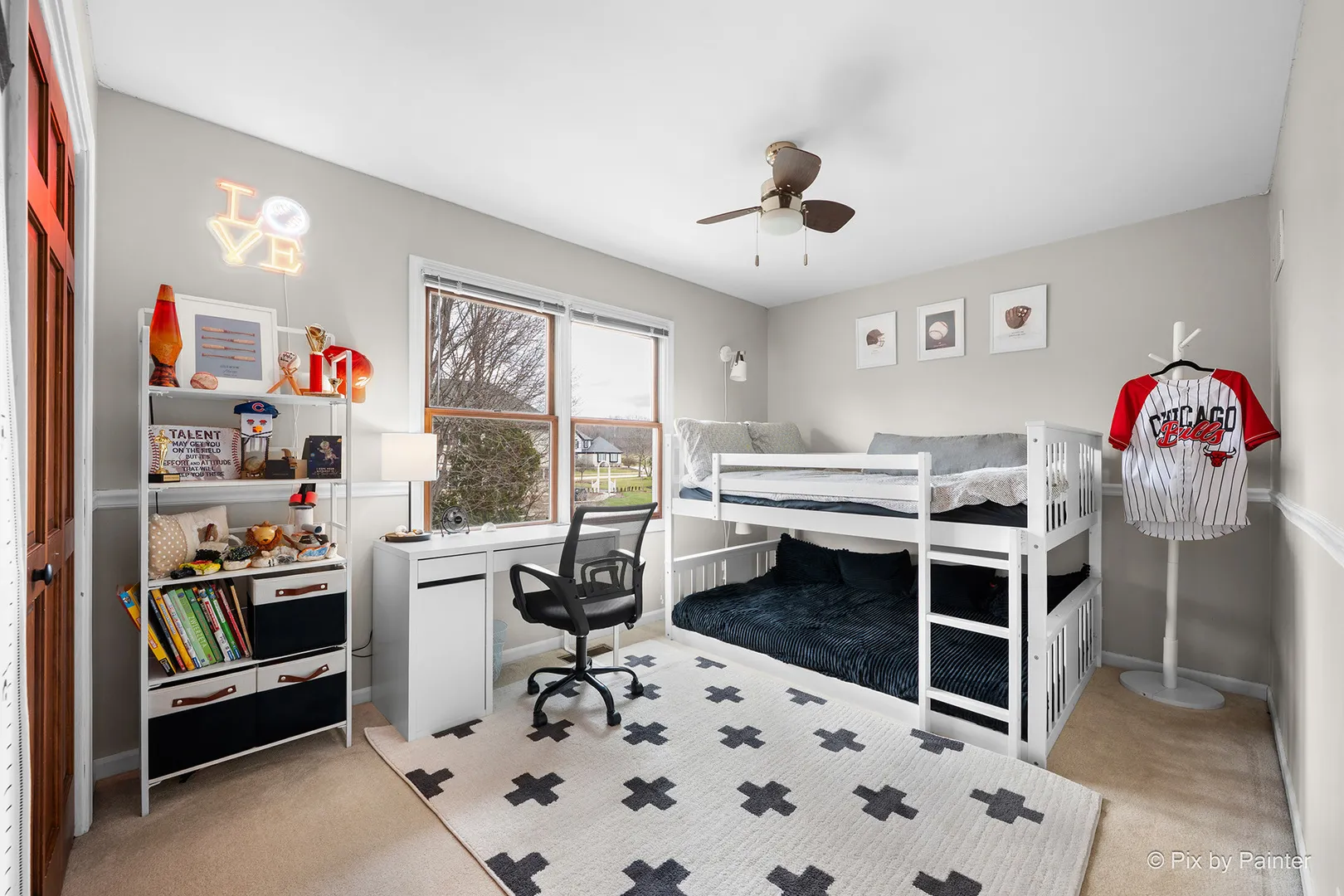 Beautifully updated 4-BEDROOM, 2.1-BATH home with 3-CAR ATTACHED GARAGE in FOX MILL – A wonderful St. Charles neighborhood with top rated schools. This home sits on an extra-large lot within walking distance to Bell Graham Elementary. Walk up to the covered front porch into the FOYER where the HARDWOOD FLOORS begin and continue throughout most of the main level. The Foyer is flanked by the Sunny LIVING ROOM and Formal DINING ROOM. You enjoy the hours spent in the cozy FAMILY ROOM with Brick FIREPLACE, and a Bump Out Window overlooking the Back Yard. The Family Room is connected to the EAT-IN KITCHEN that features Corian Counters, Stainless Appliances, ample cabinetry, Closet Pantry, Center Island w/seating and a Breakfast Table area with Slider to Back Deck and Yard. Step down the hall and you’ll find a spacious FIRST FLOOR LAUNDRY with Newer Washer & Dryer. The First Floor also includes a SPACIOUS OFFICE/5th BEDROOM with Closet and Views of Back Yard. Step Upstairs and you’ll find the perfect PRIMARY SUITE featuring a HUGE WALK-IN CLOSET, a REMODELED BATH with Double Vanity, Whirlpool Tub, Separate Glass-Enclosed Walk-in Shower, and Skylight. The HALL BATH has also been beautifully updated with newer lighting, Granite Double Sink Vanity, Ceramic Tile Floor and Tiled Tub Surround. SPACIOUS BEDROOMS 2-3-4 All have Ceiling Fans and Ample Closet Space. The FINISHED BASEMENT adds exceptional living space with a L-Shaped Built-in WET BAR, 2nd FAMILY ROOM, EXERCISE ROOM, GAME ROOM and Several Storage Areas. Enjoy mature landscaping and a prime location within walking distance to the elementary school and neighborhood clubhouse with pool. FOX MILL Subdivision features neighborhood parks and trails and is also convenient to the OTTER COVE AQUATIC PARK, Shopping, and Dining. Recent Updates include: FURNACE & AC (2025), Ducts Cleaned (2025), Dishwasher (2025) Washer & Dryer (2025), Exterior Power Washed & Trim Painted (2026).